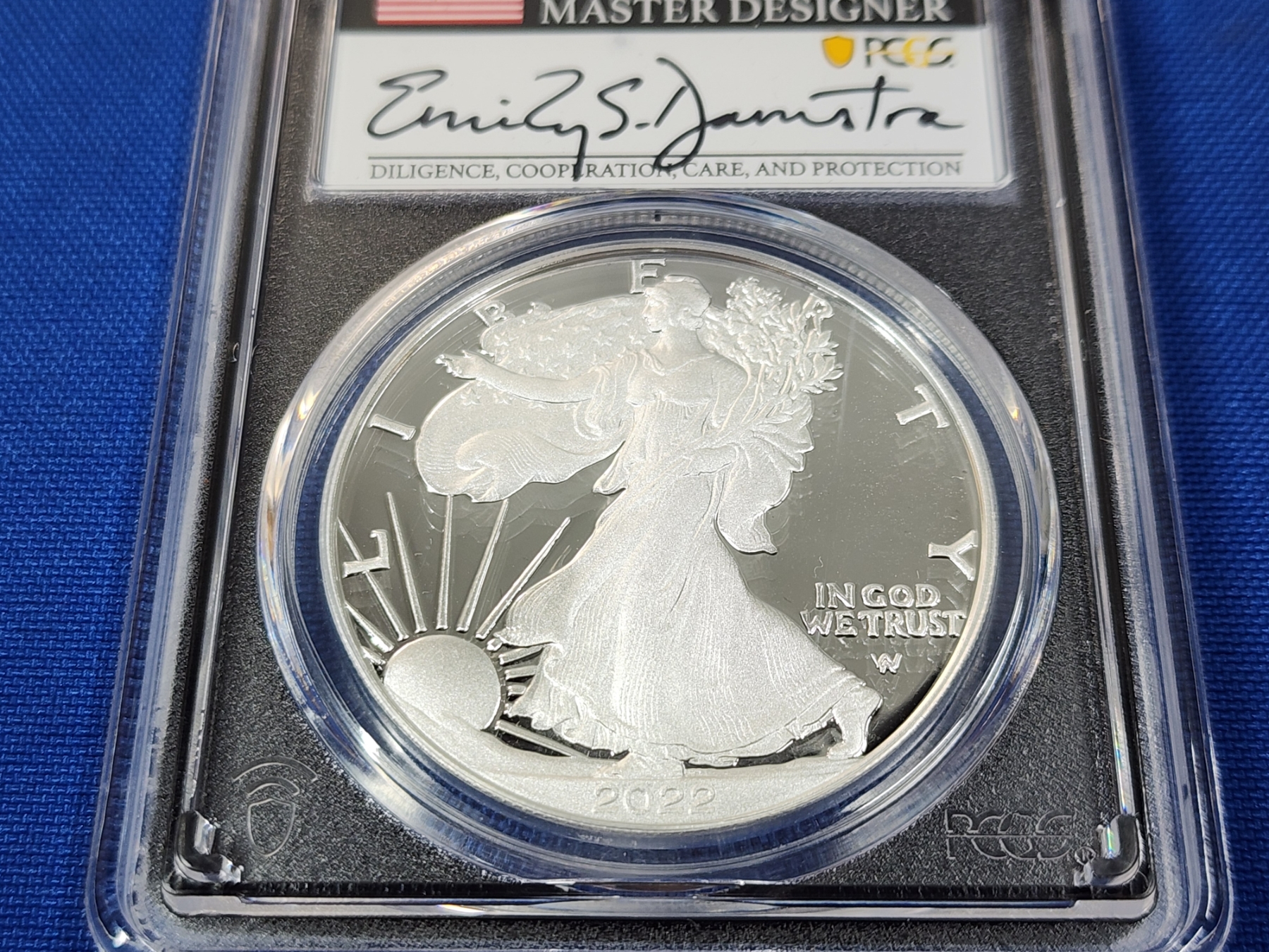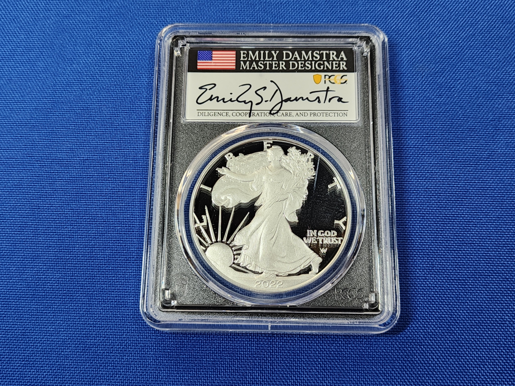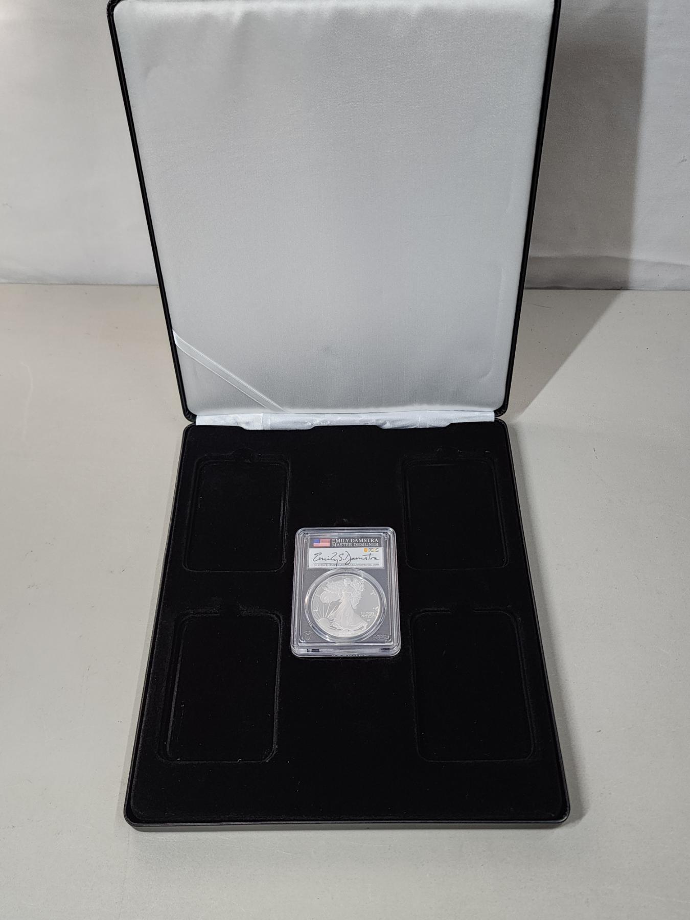 2022-W PCGS PR 70 DCAM Silver Eagle FDOI 1oz Fine Silver - Signed by Emily Damstra