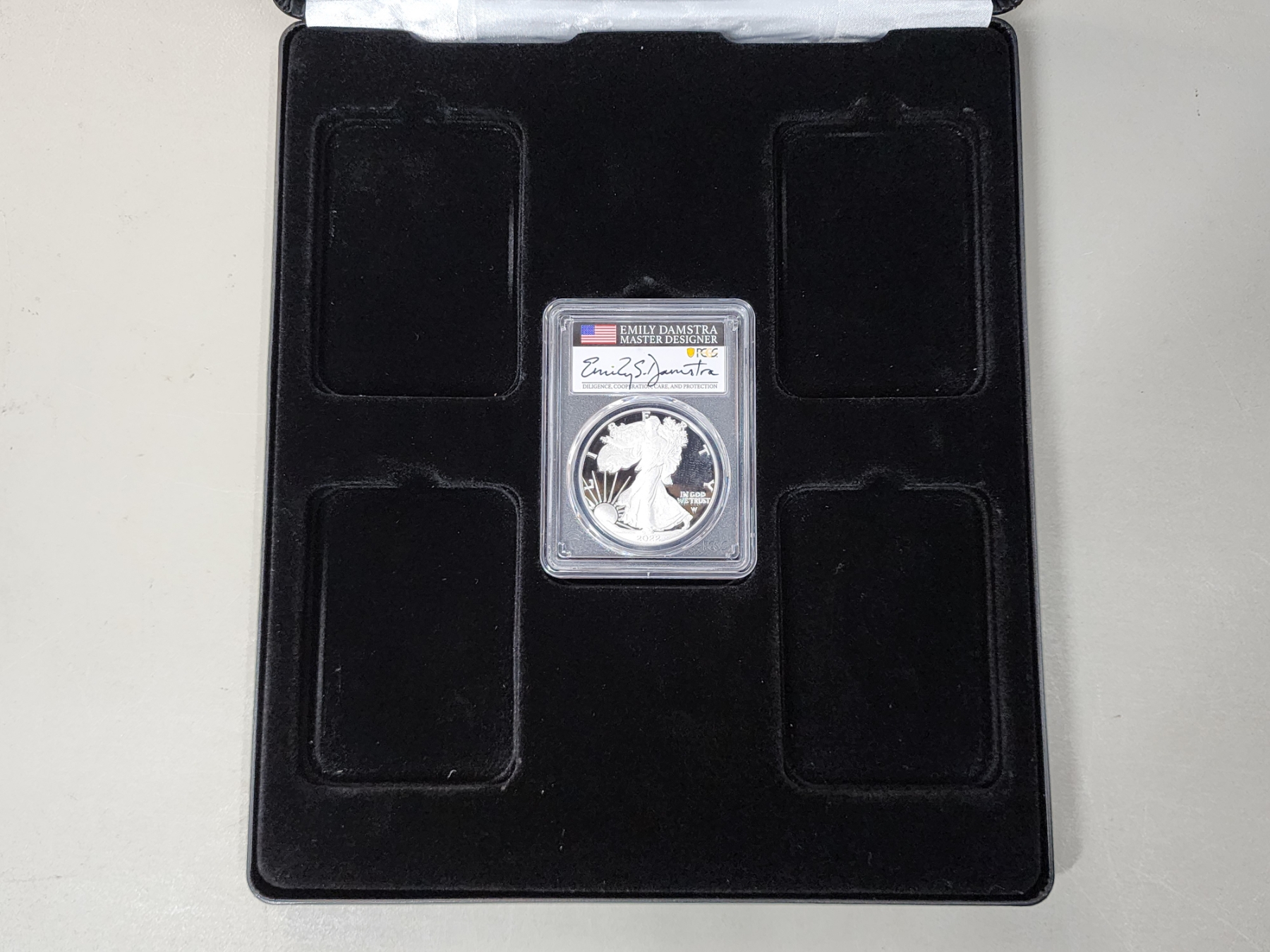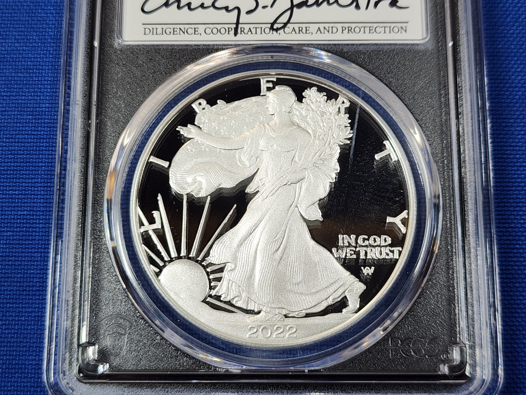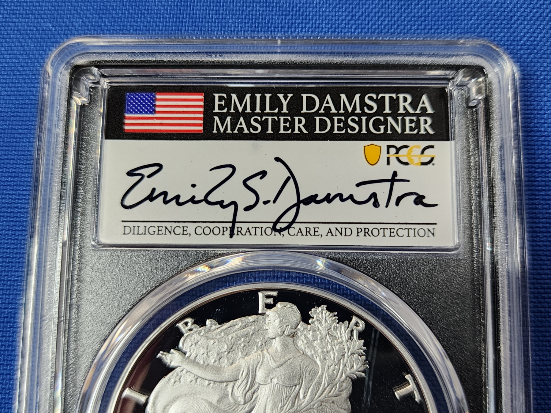 2022-W PCGS PR 70 DCAM Silver Eagle FDOI 1oz Fine Silver - Signed by Emily Damstra