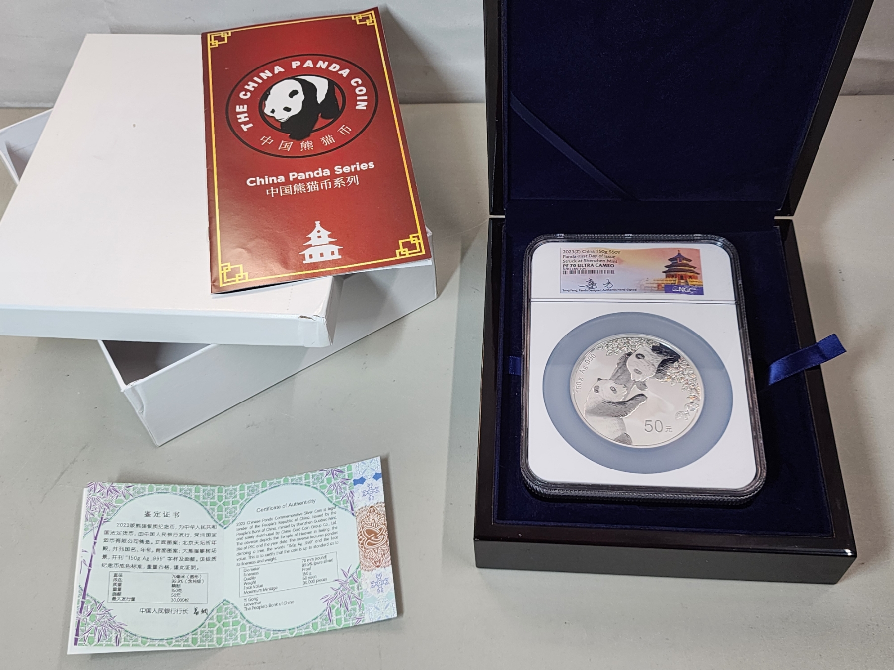 Stunning 2023 Z China Panda 150g .999 Fine Silver Round - First Day of Issue (DOI) Struck at Shenzhen Mint Graded by NGC PF 70 Ultra Cameo