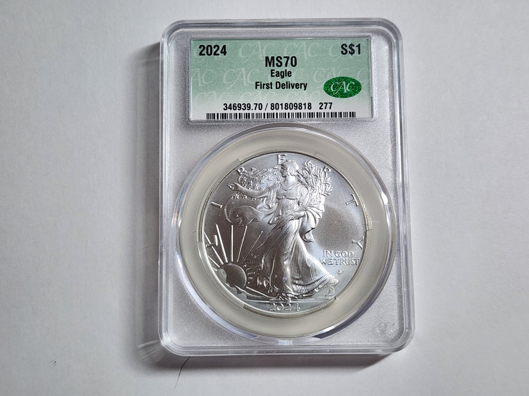 2024 American Silver Eagle 1 oz .999 Fine Silver First Delivery CAC MS 70