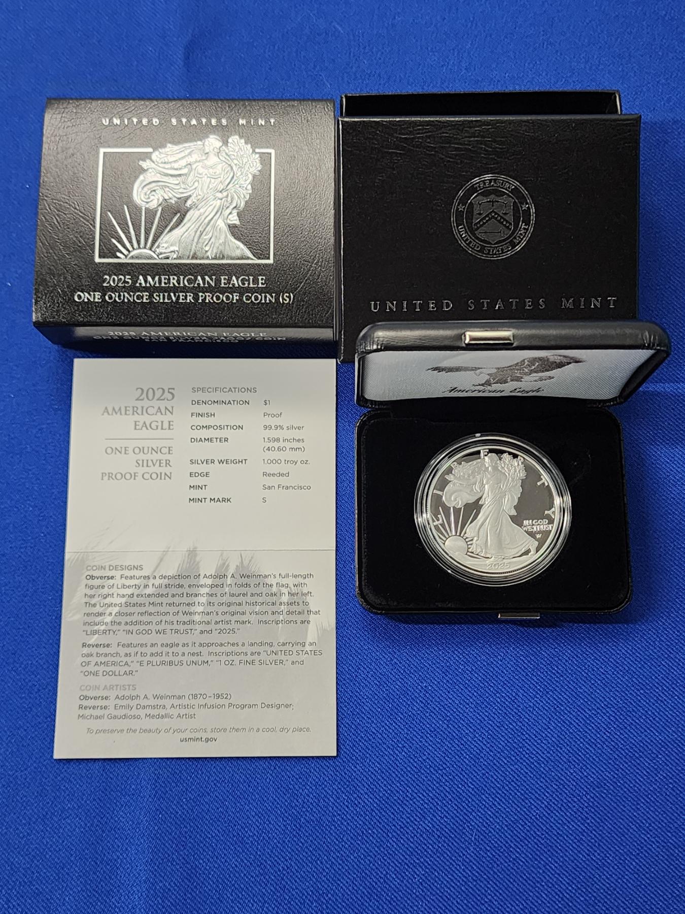 2025-S Silver American Eagle $1 Proof - 1 Troy Ounce 99.9% Silver w/ Original Box & COA