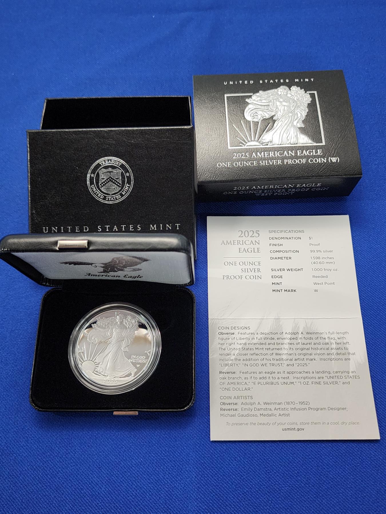2025-W American Eagle 1 oz Silver Proof Coin w/ Box & COA