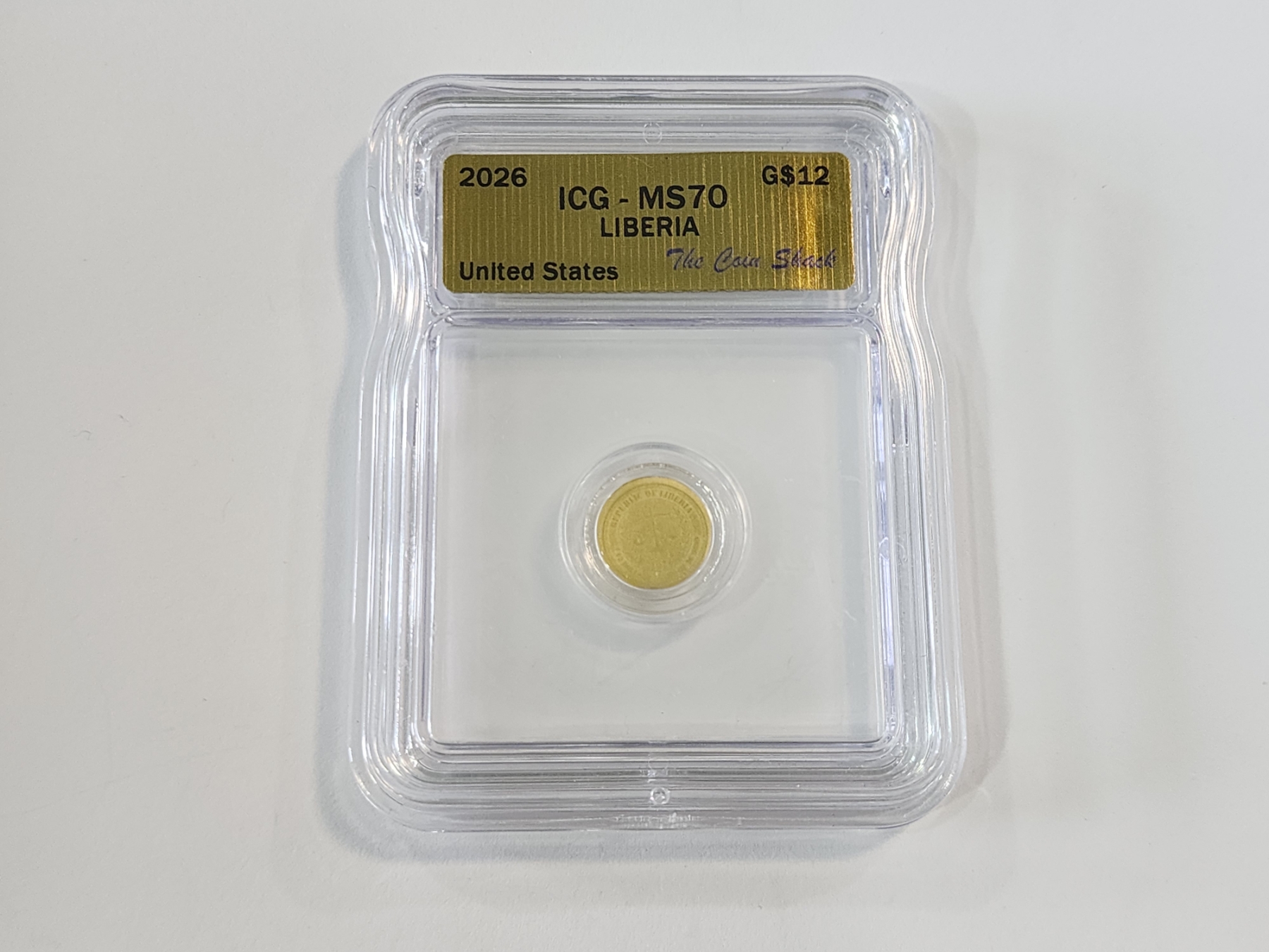 2026 ICG MS 70 Liberia United States $12 1/1000th oz .9999 Fine Gold Round