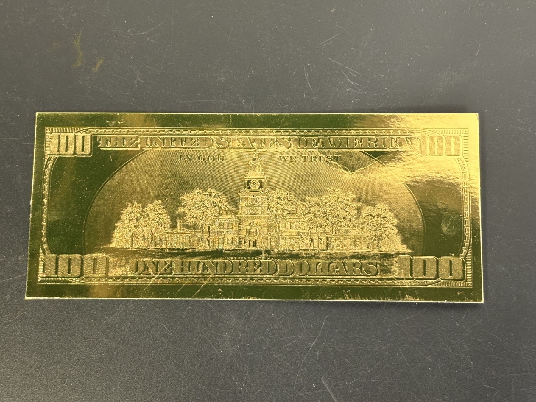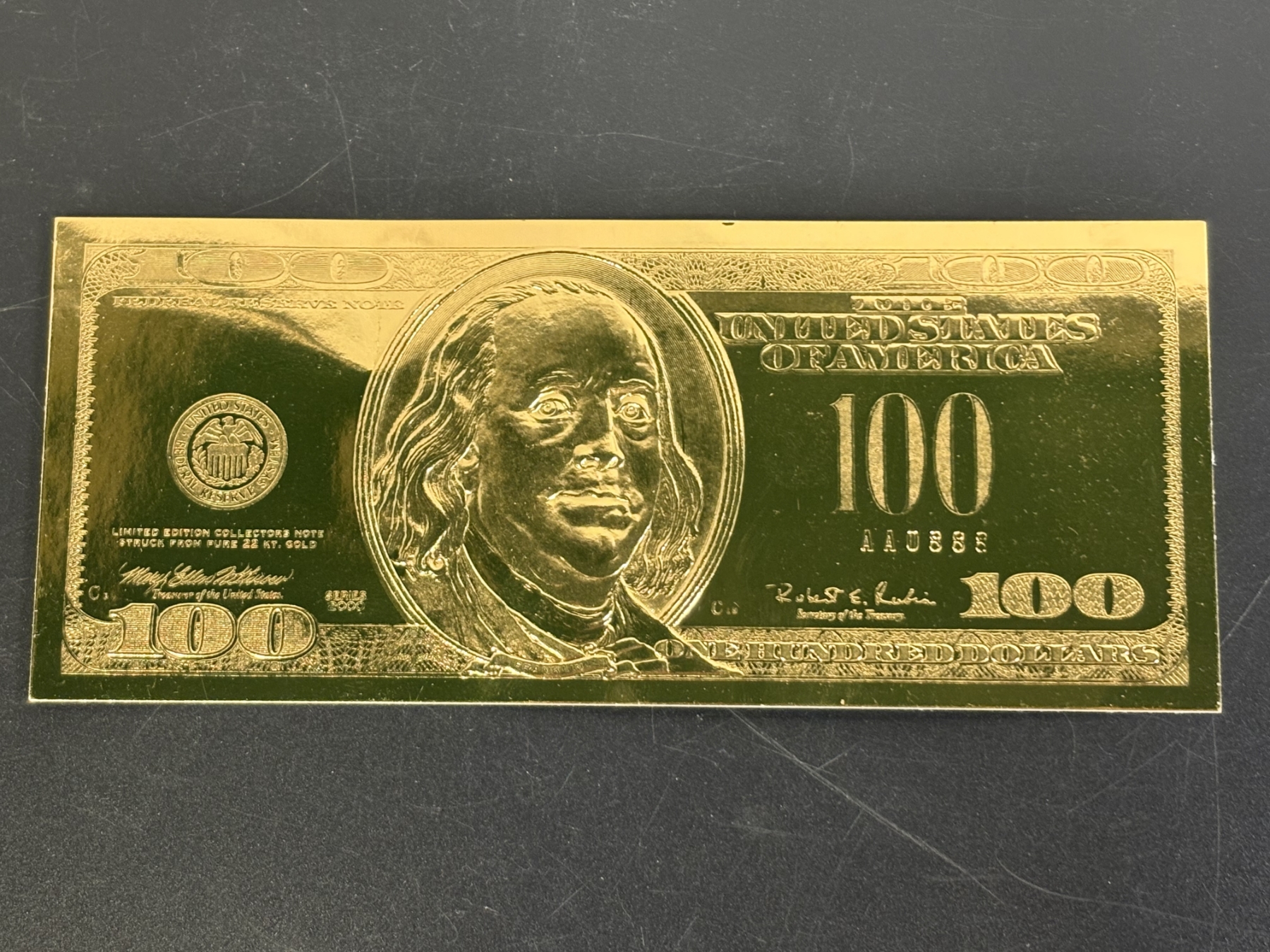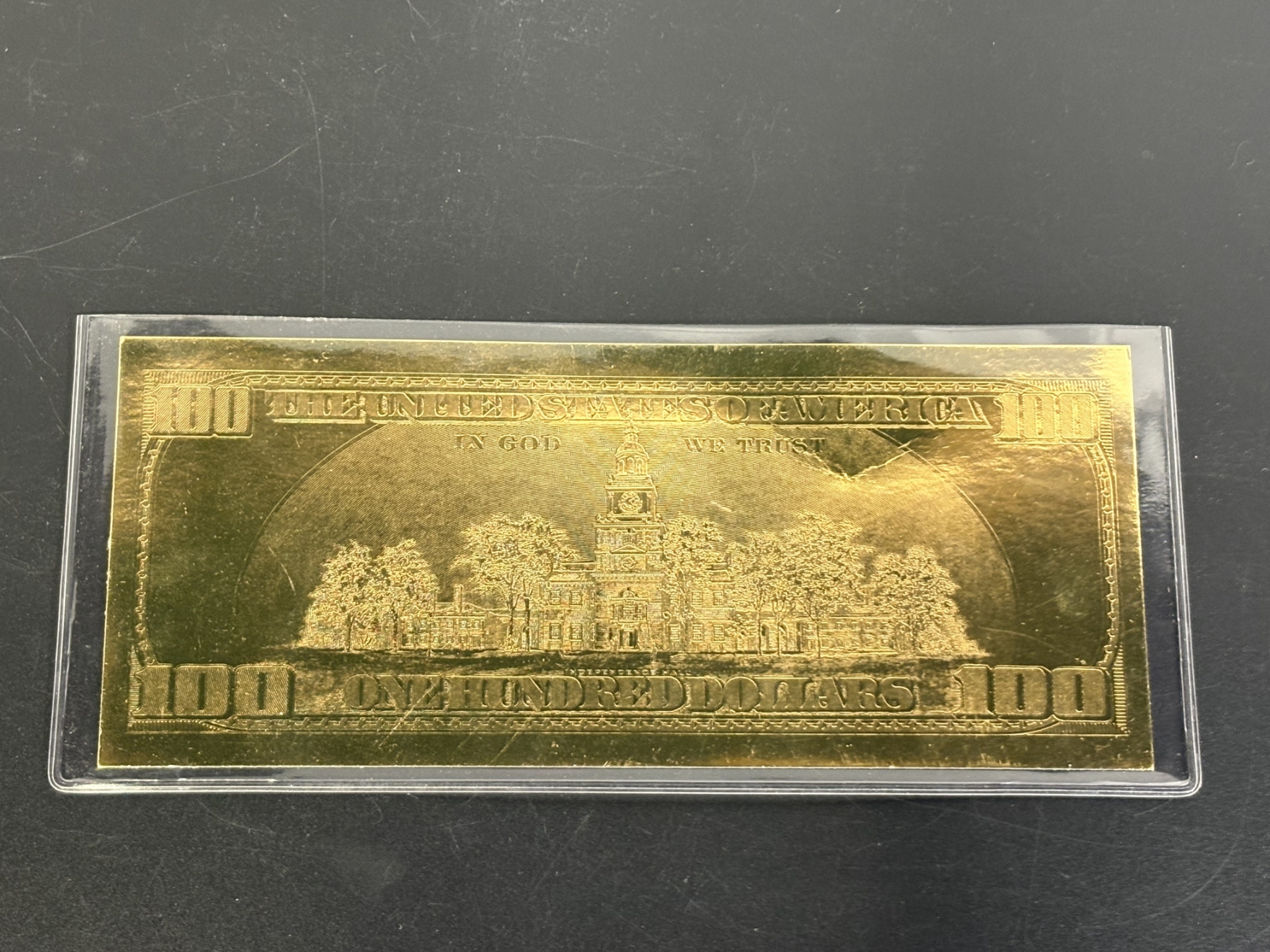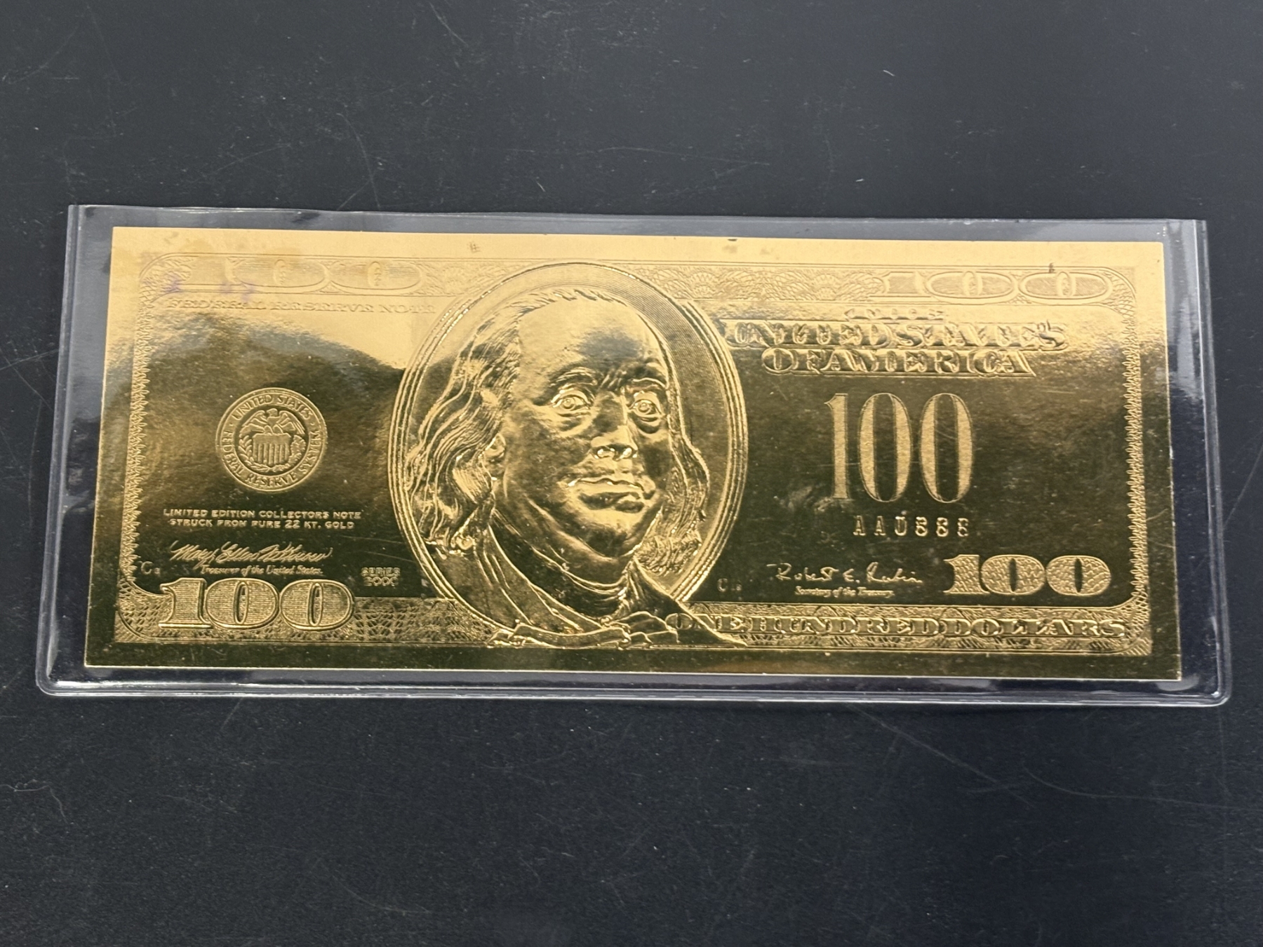 22 kt Gold $100 bill - in Plastic Cover