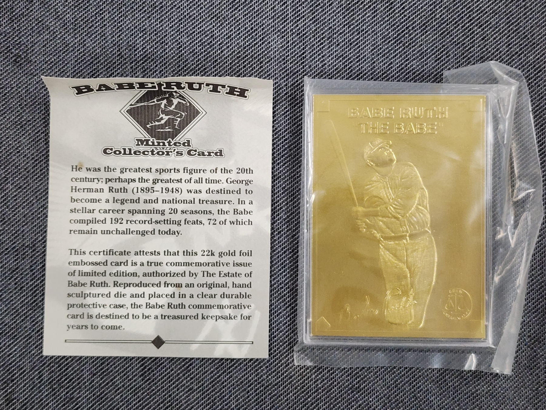 22K Gold Foil Babe Ruth Trading Card In Original Box & With Certificate