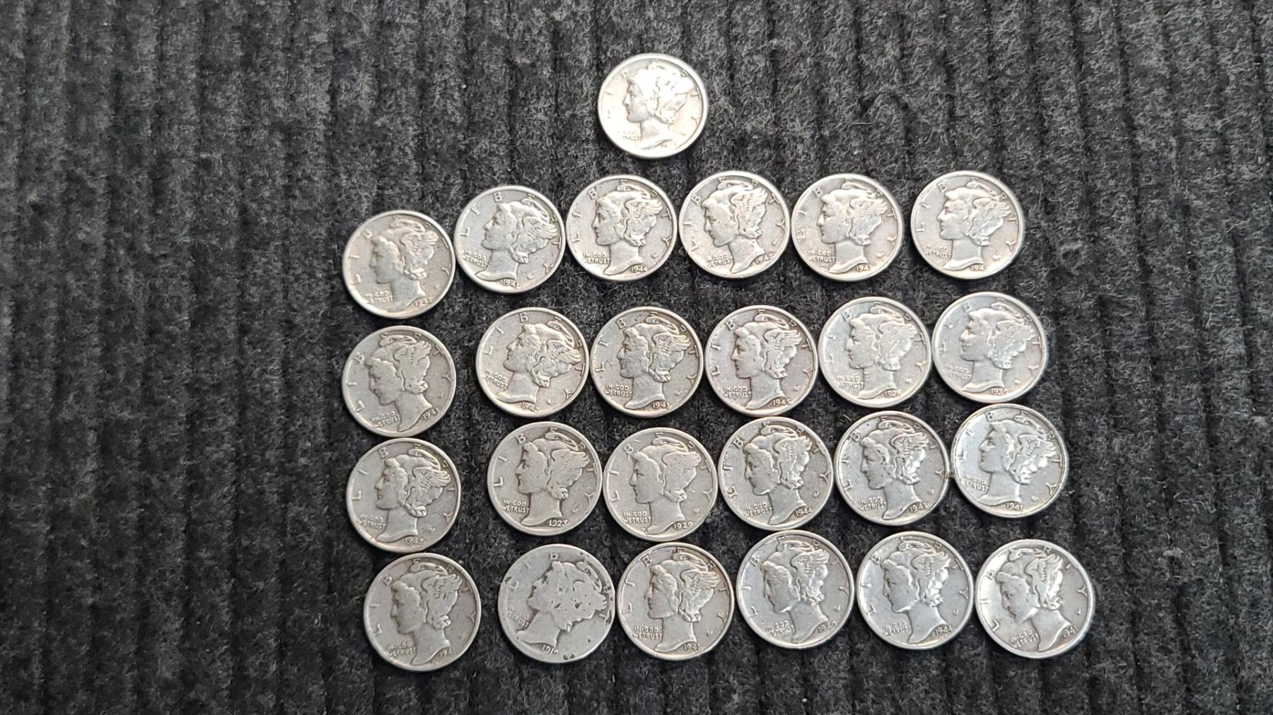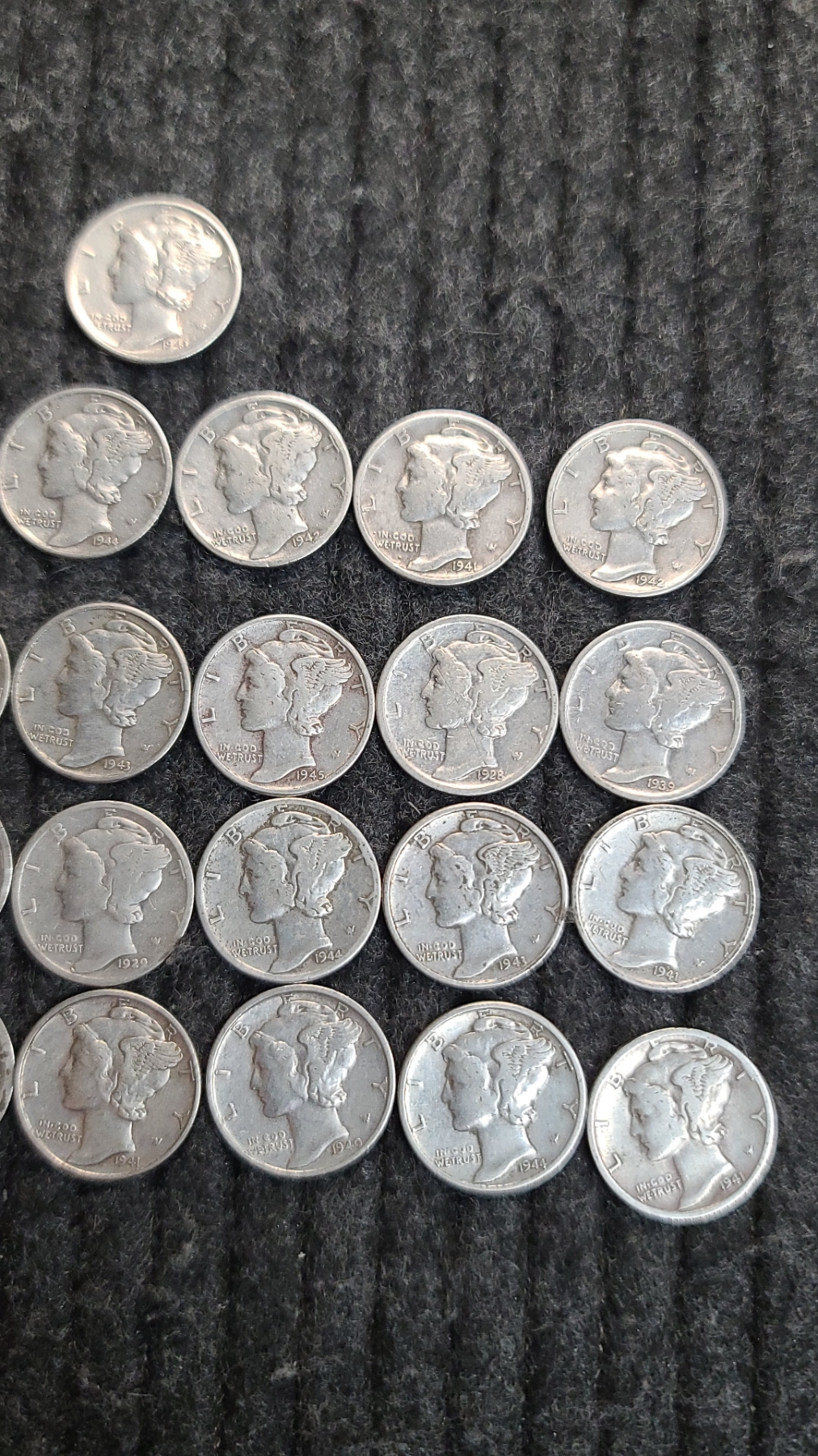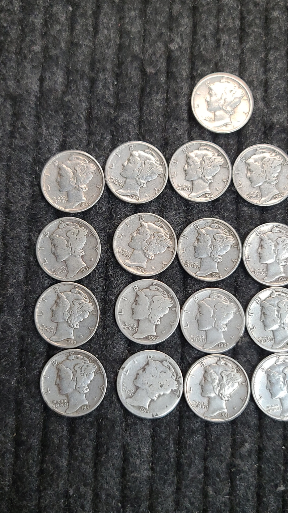 (25) Assorted Years 90% Silver Mercury Dimes Face Value: $2.50