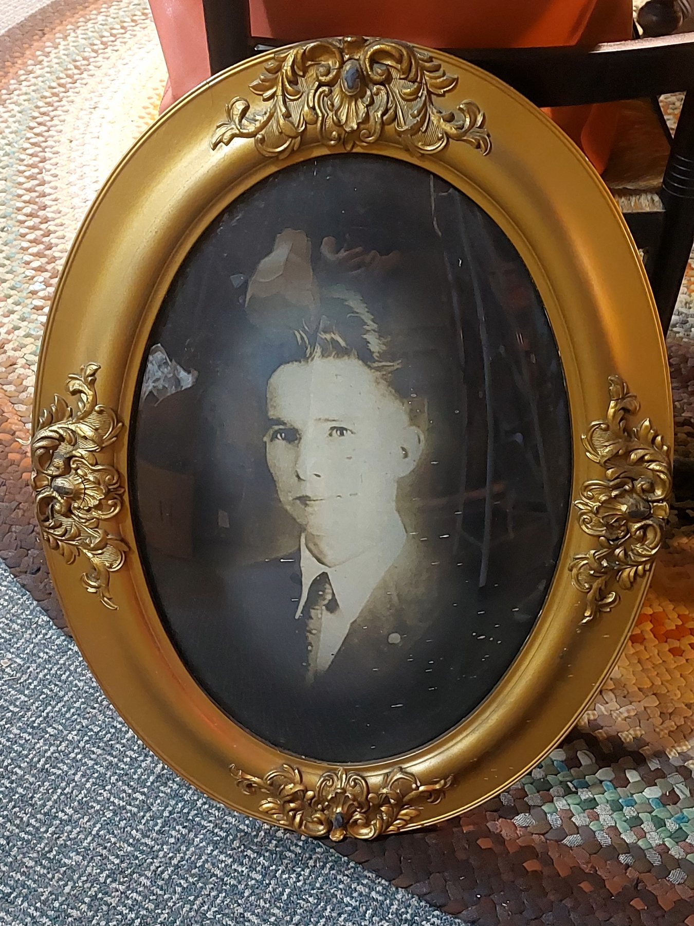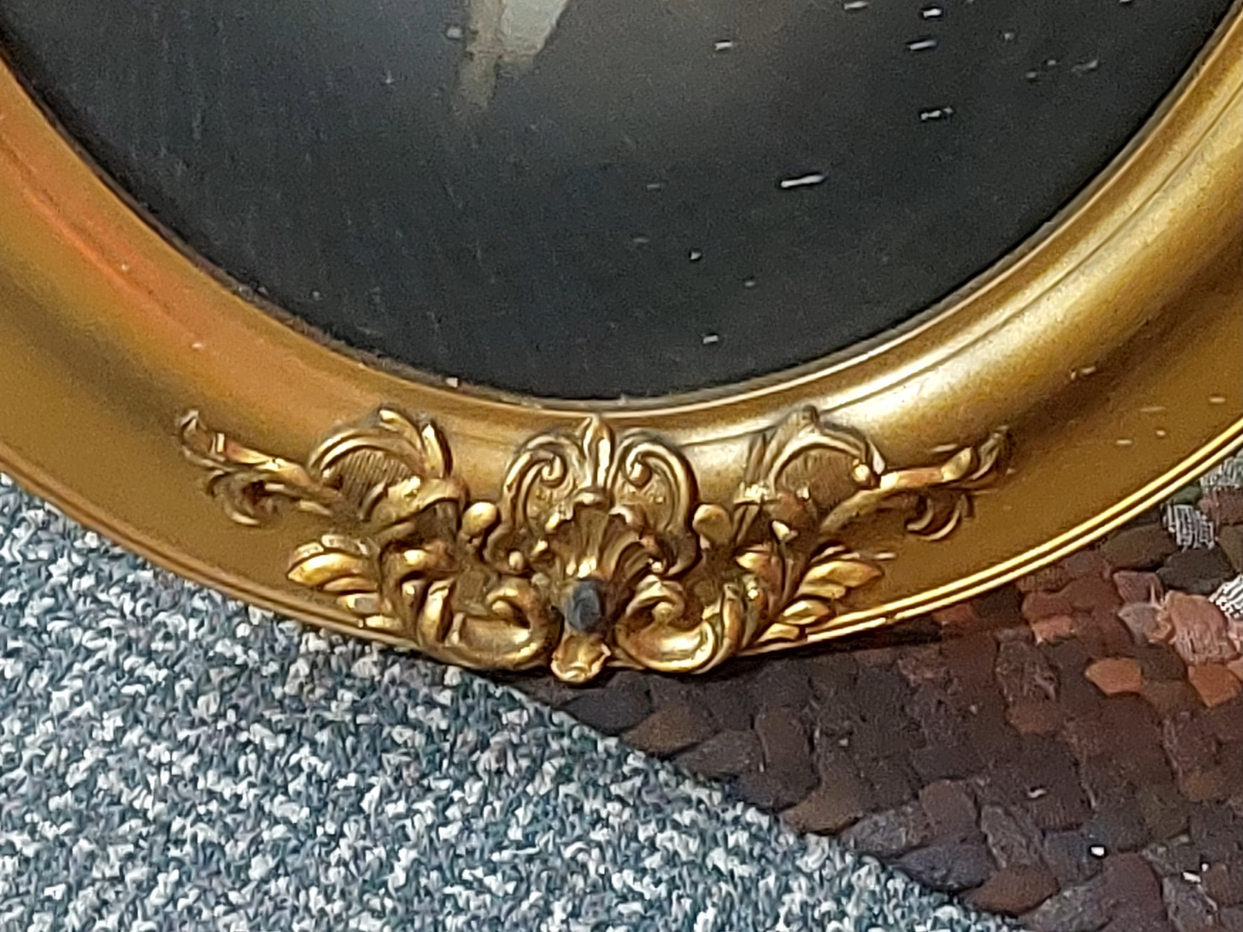 25" x 19" Antique Oval Bent Glass Ornate Picture Frame With Original Portrait In Place - See PIcs