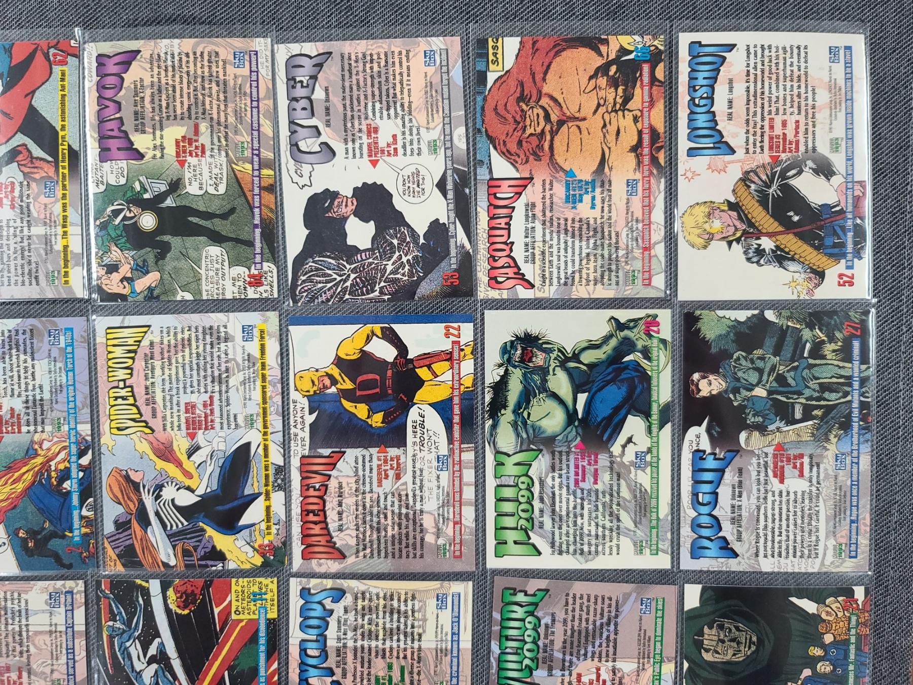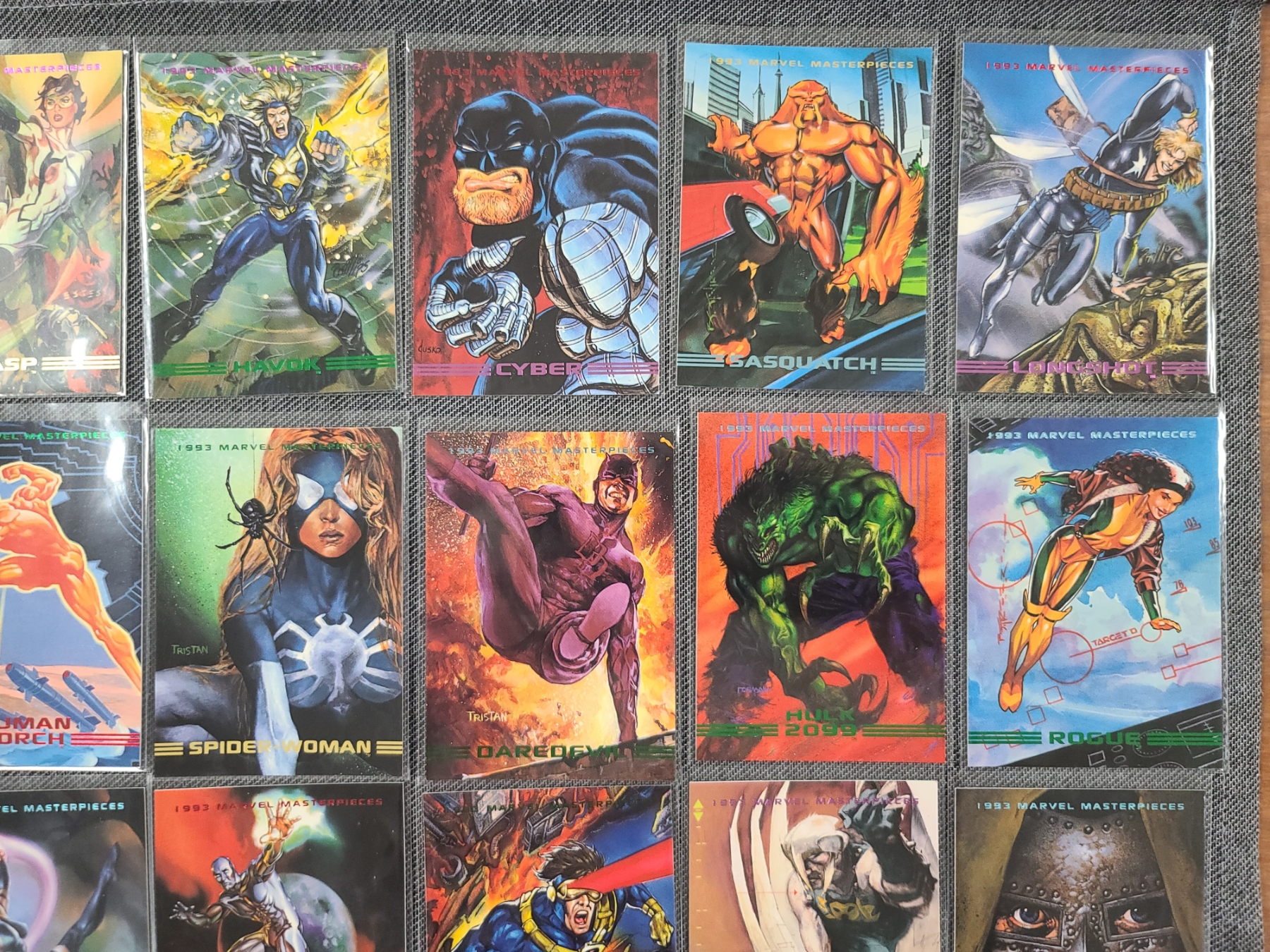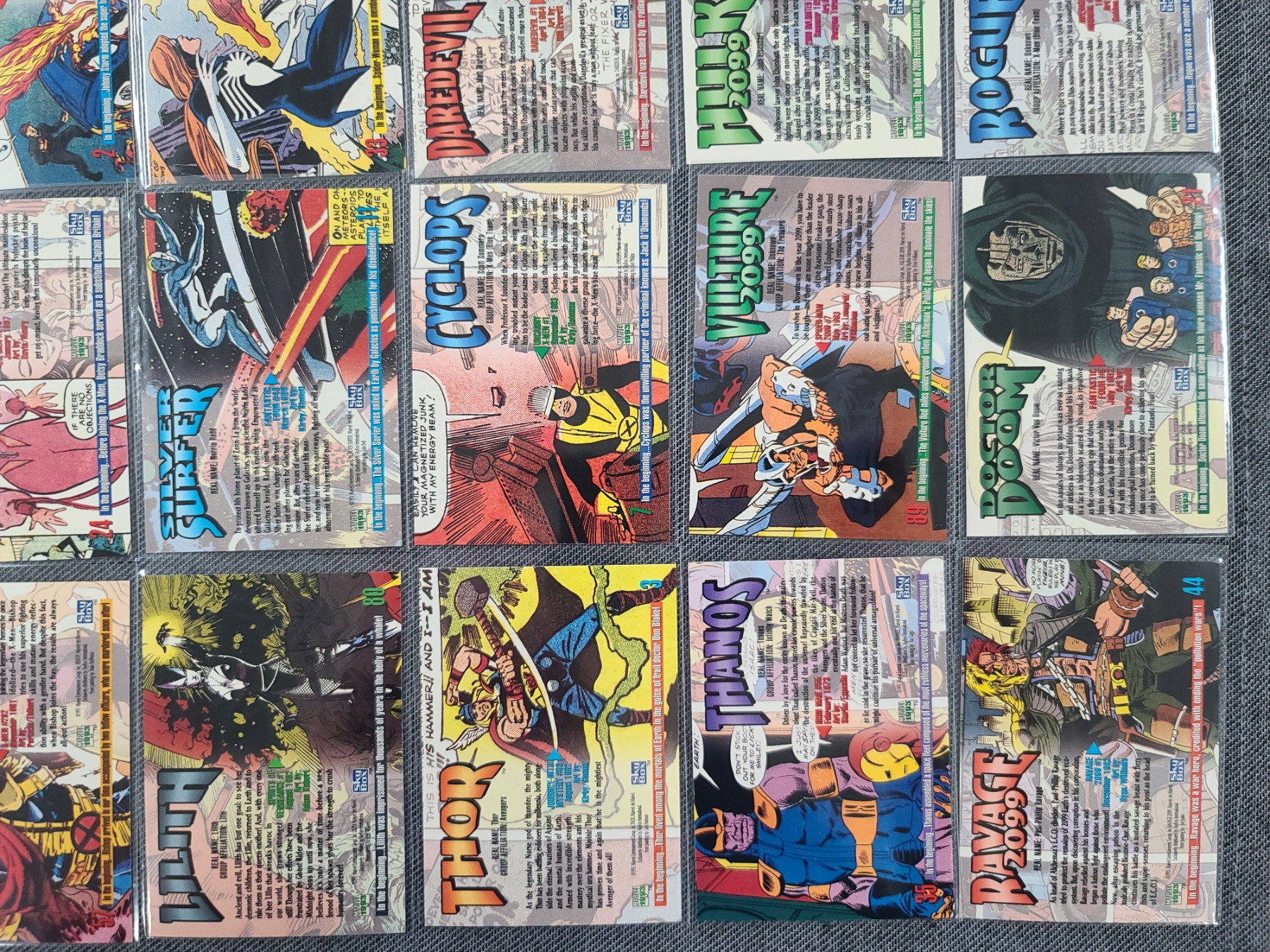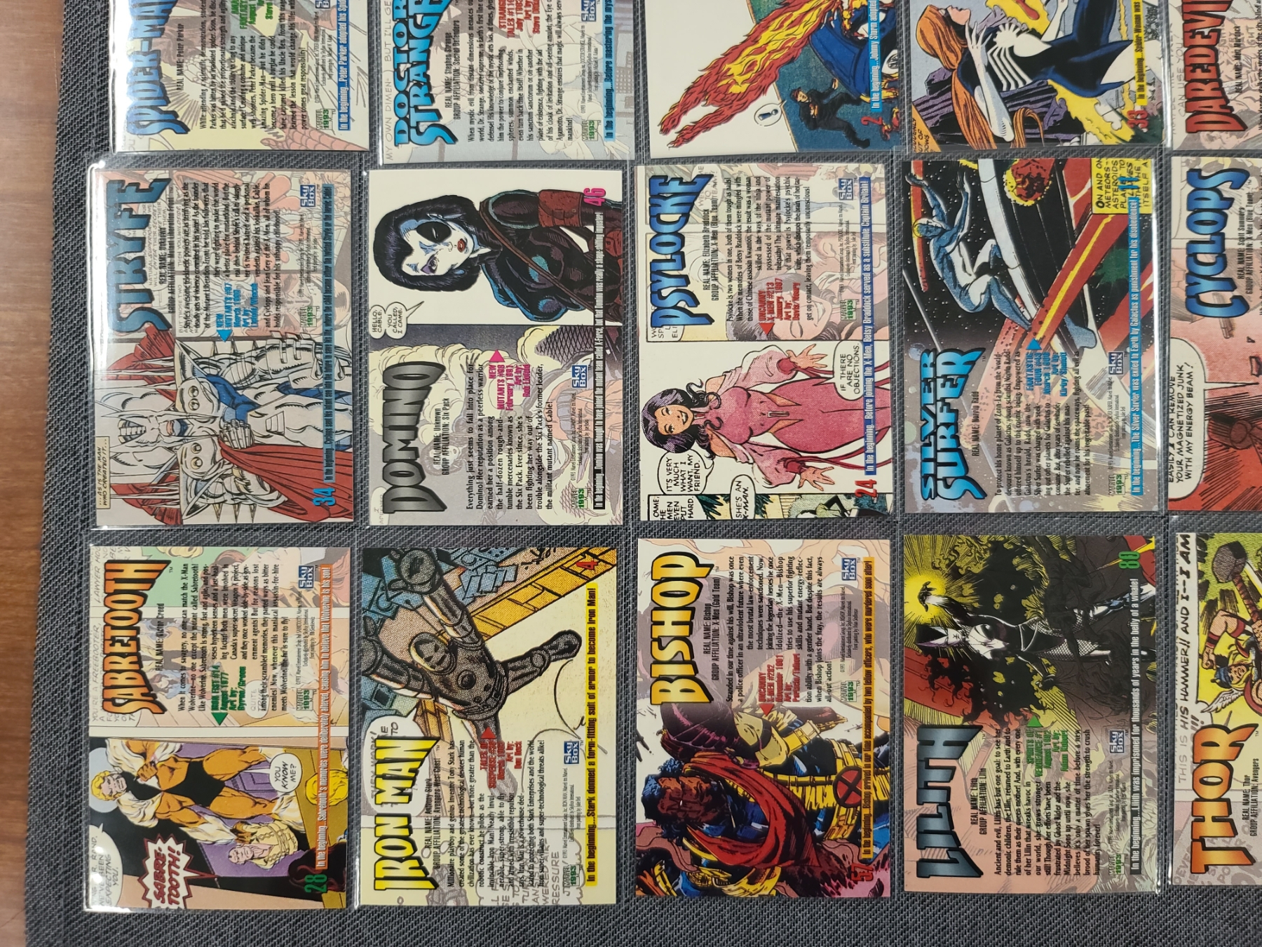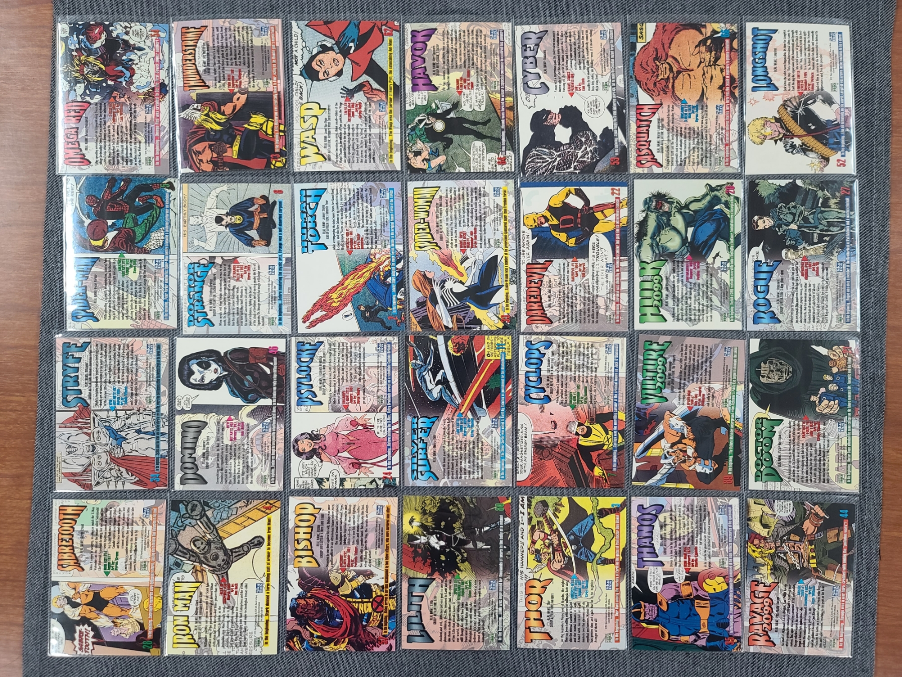 28 Assorted 1993 Marvel Trading Cards - Near Mint - Including Spider-Man, Doctor Strange, Thanos & More