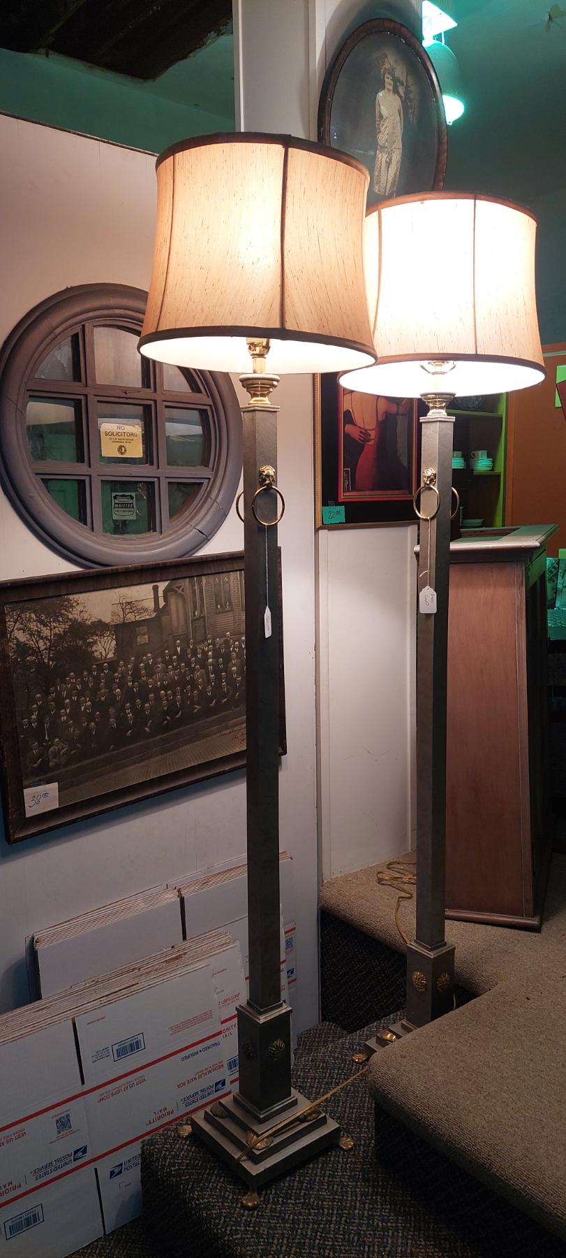 2nd Of Two (2) Offered - 60" Tall Brushed Steel Floor Lamp With 12 x 14 x 10 Inch Shade - Exc Condition