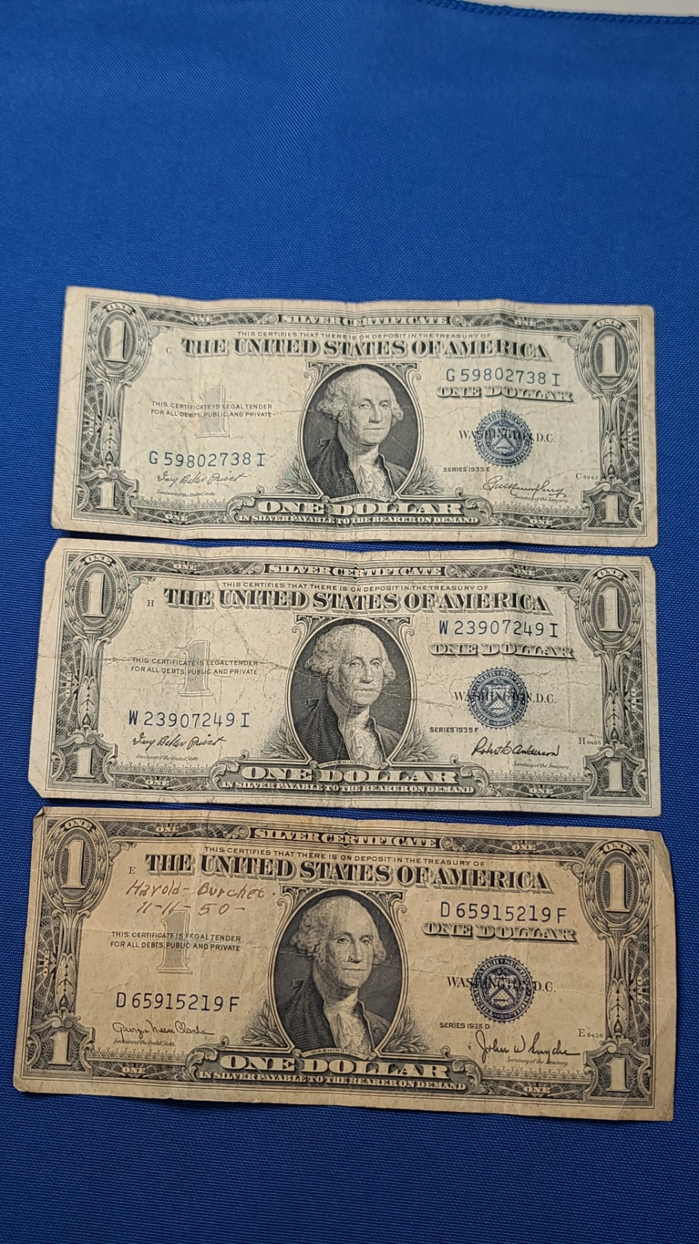 (3) $1 Silver Certificates - Series 1935 D, 1935 E, 1935 F