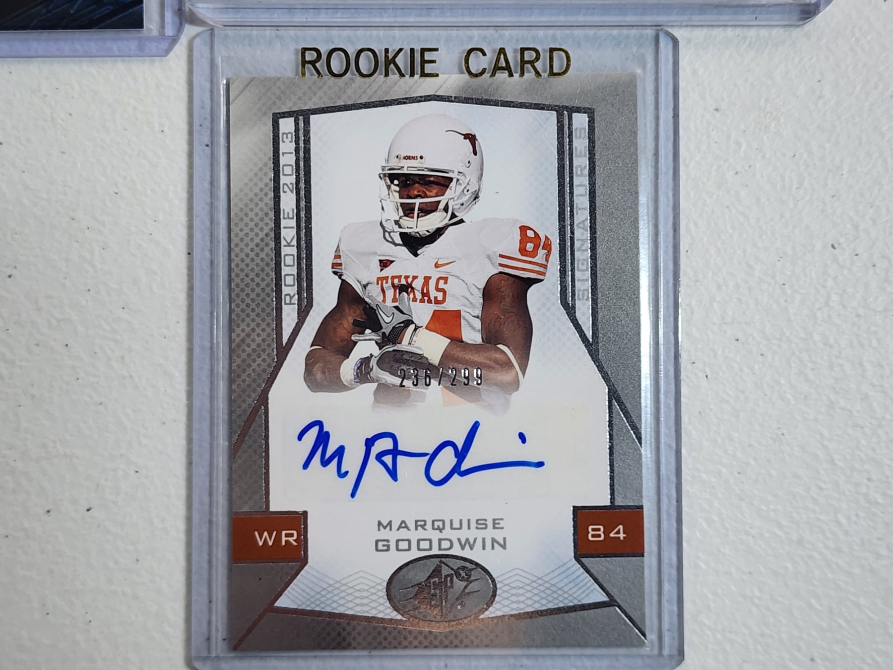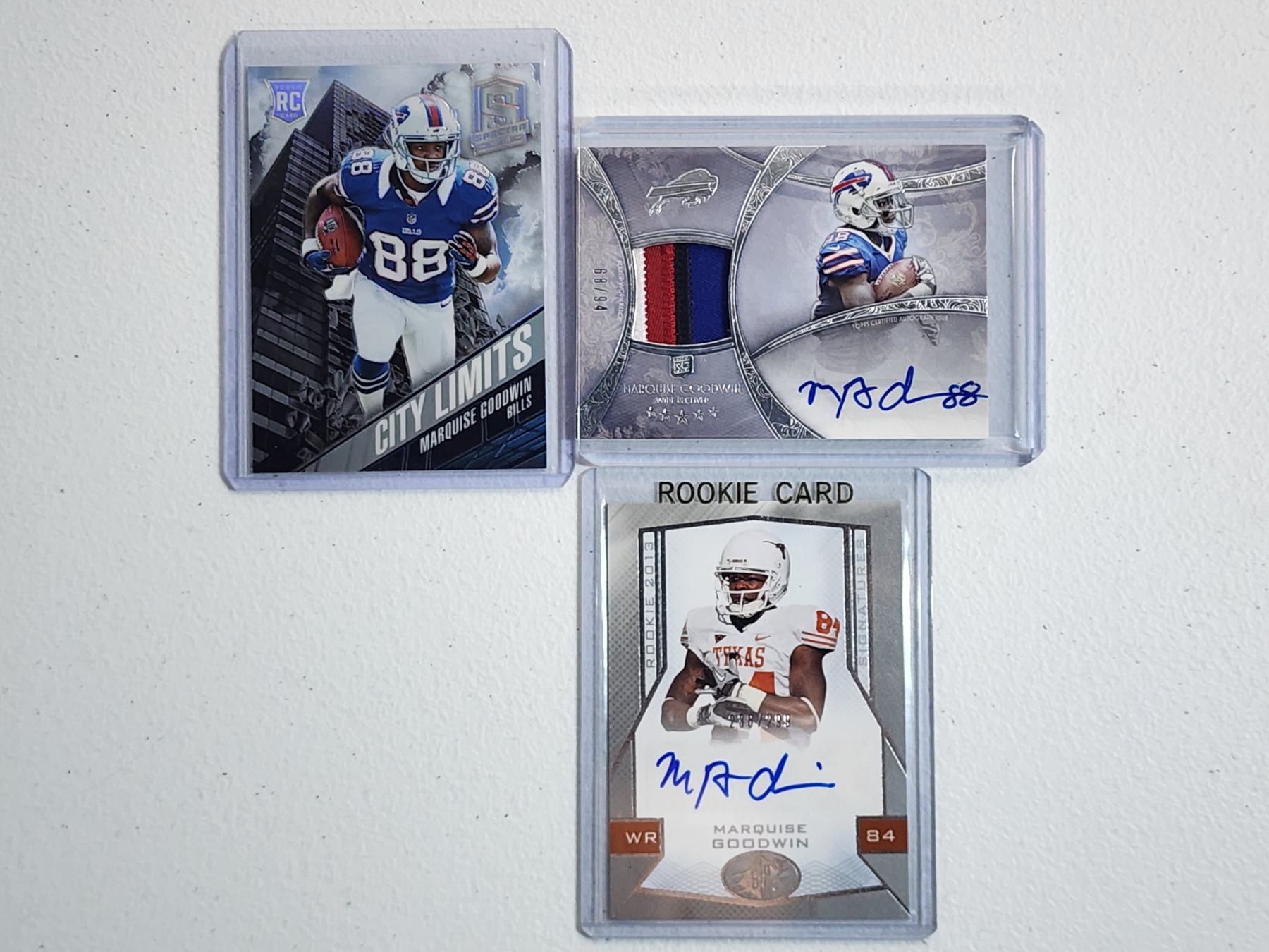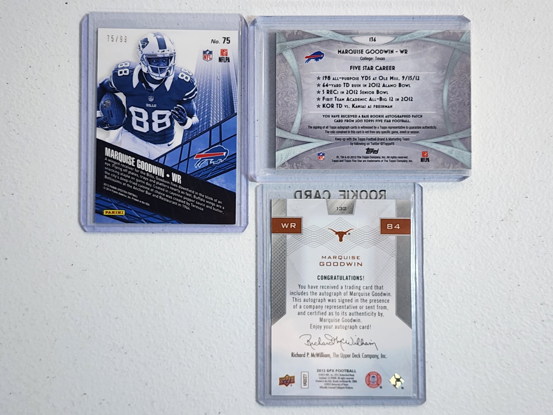 (3) 2013 Marquise Goodwin Football Cards Including Player-Worn Patch & Autograph Card