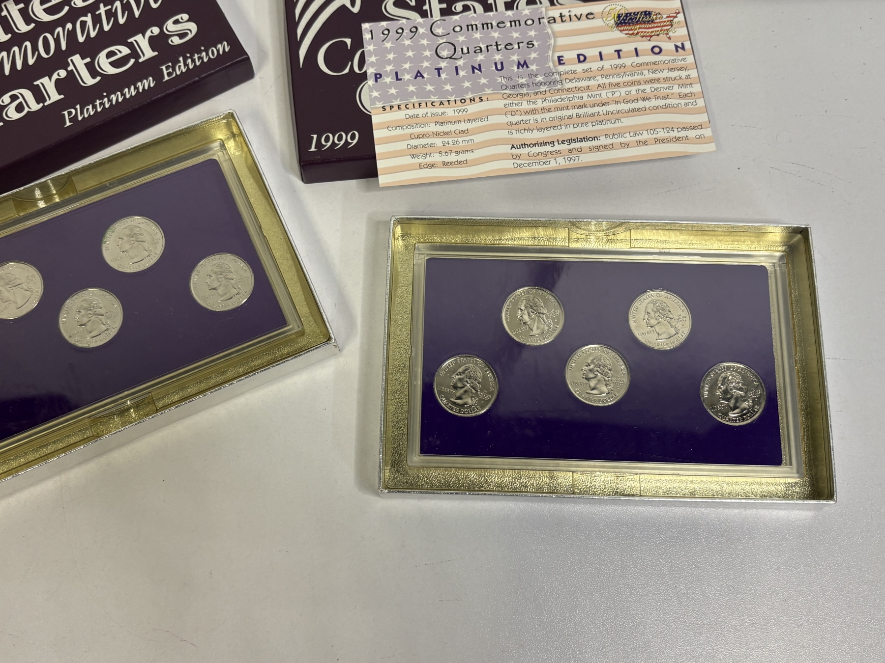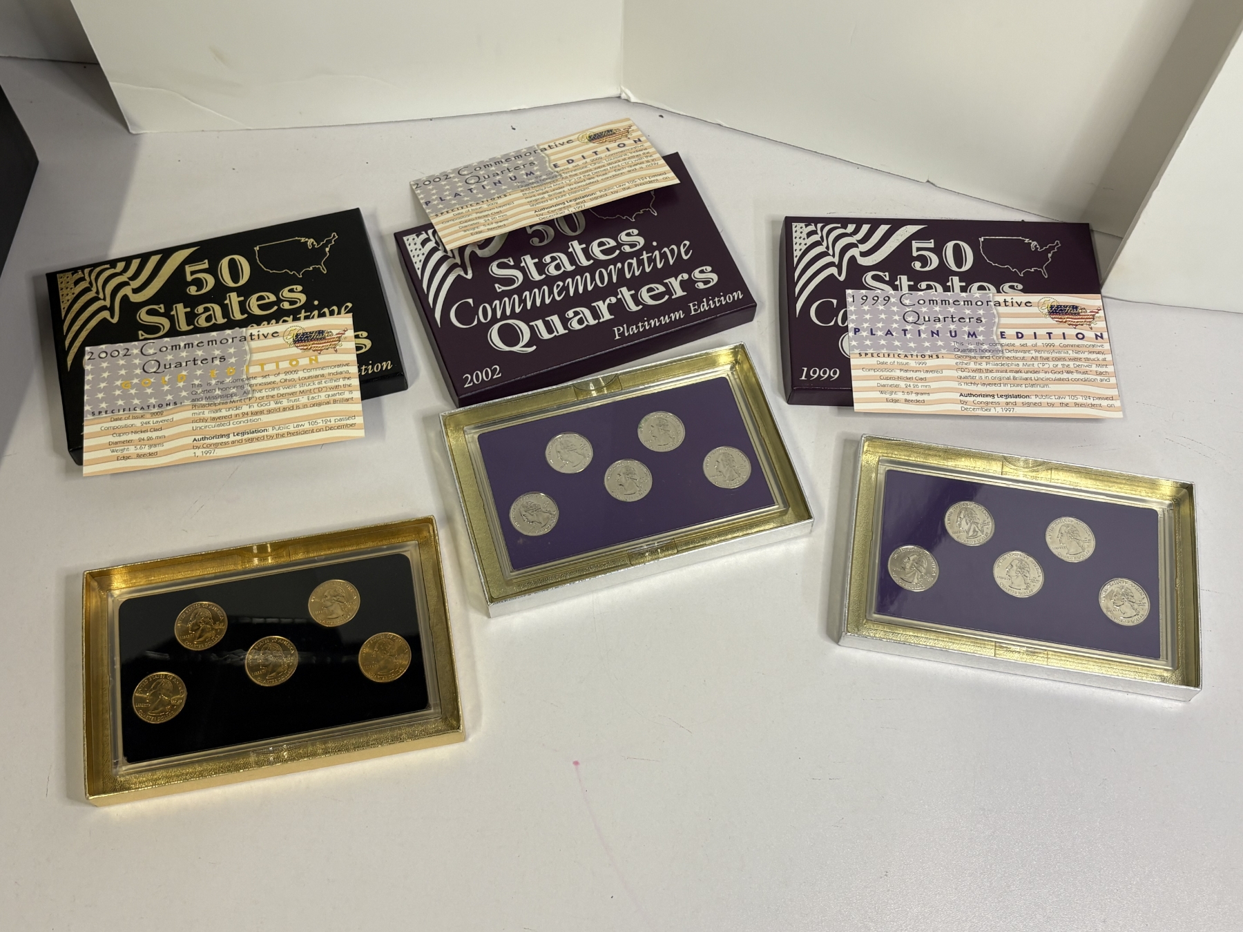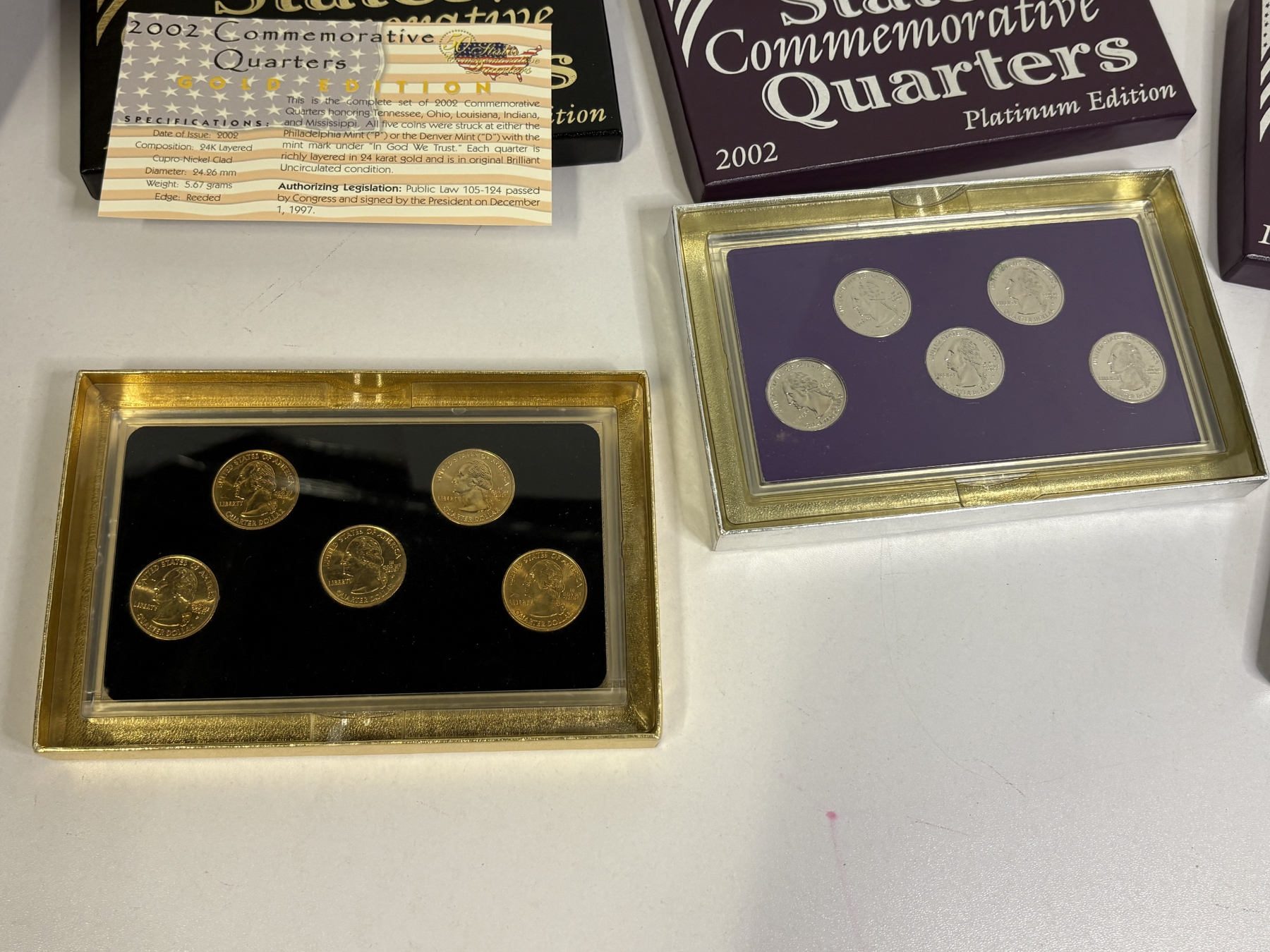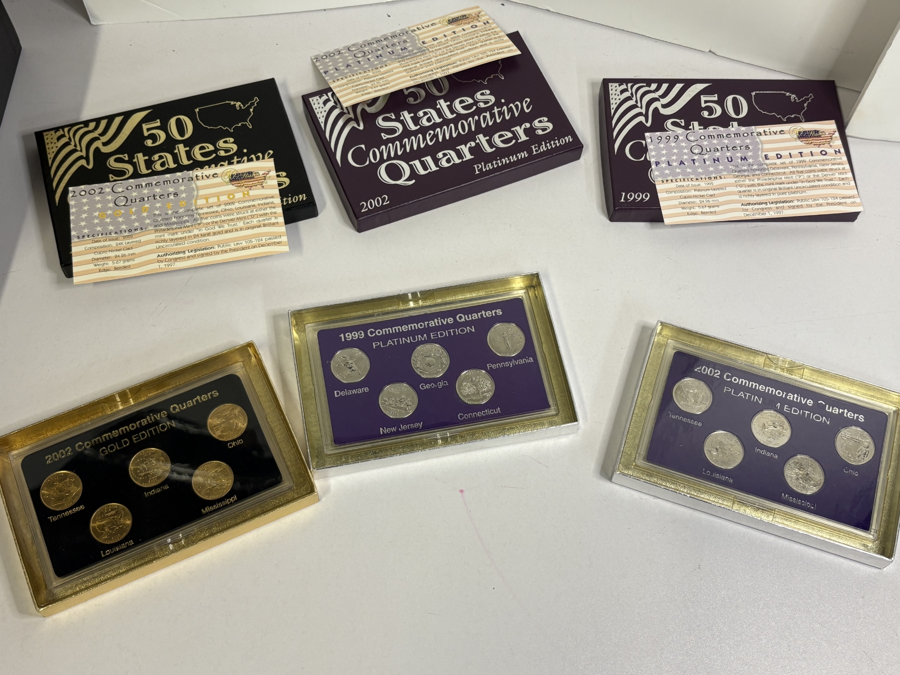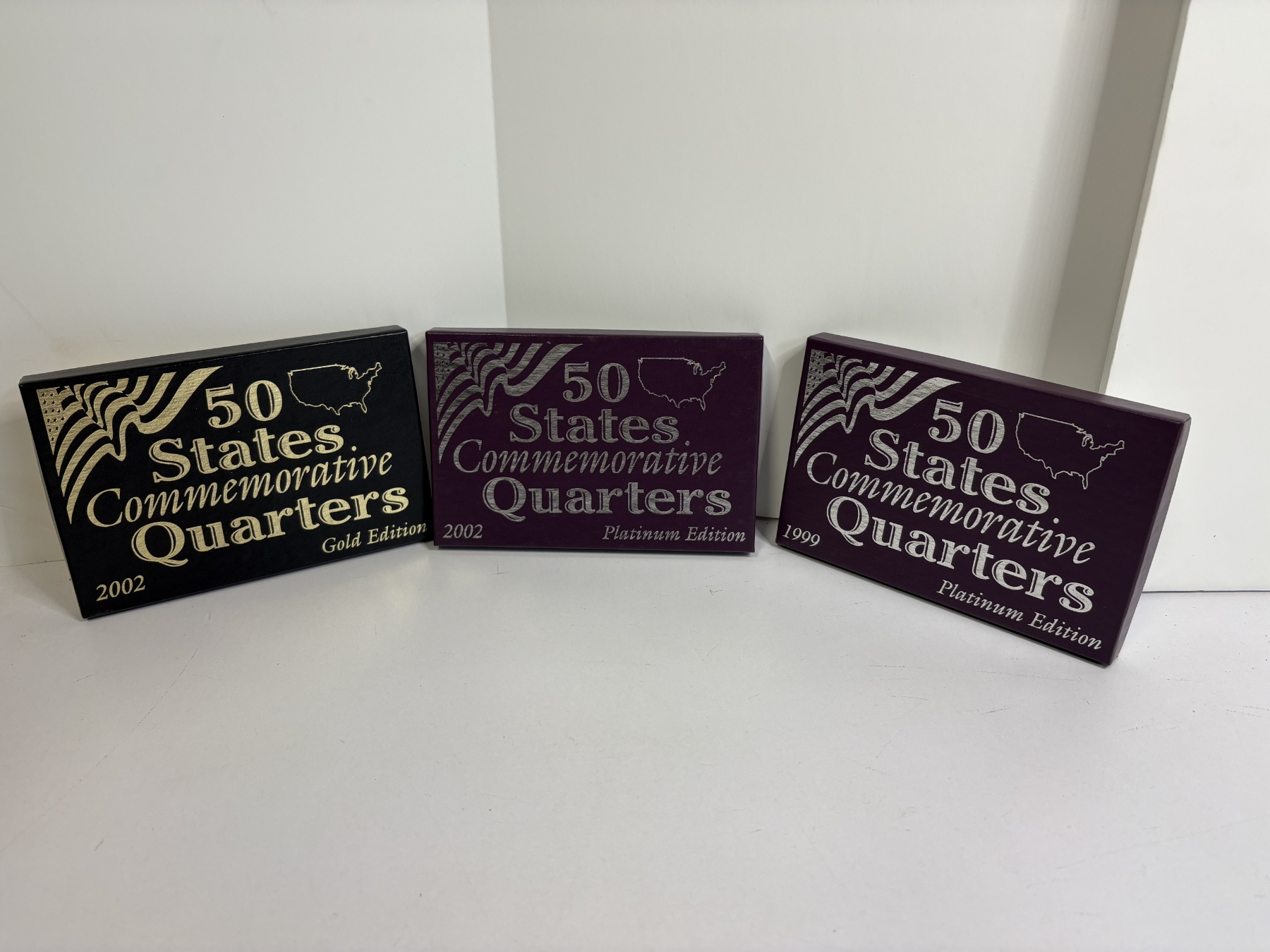 (3) 50 States Commemorative Quarters in Cases - FV $3.75 - 2002 Gold Edition - 2002 Platinum Edition - 1999 Platinum Edition