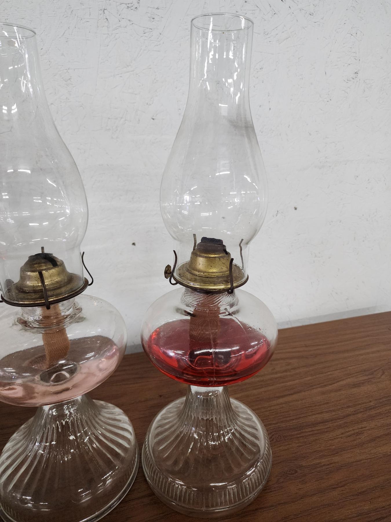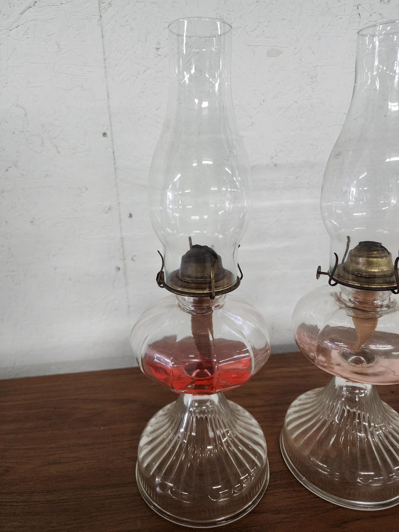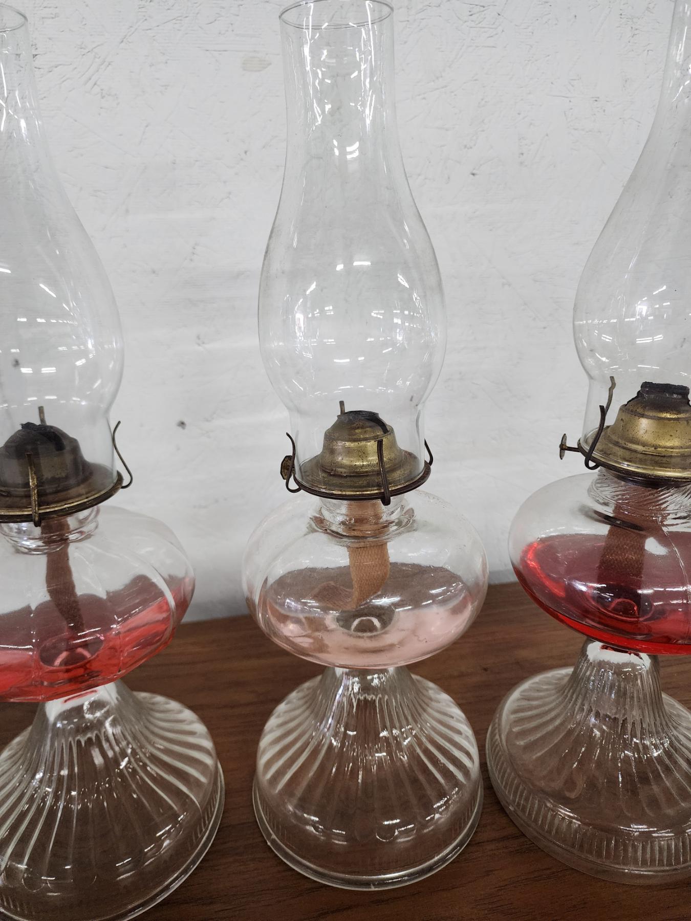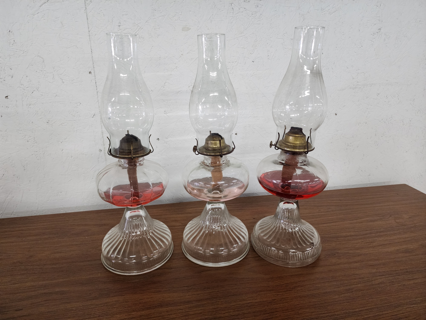 (3) Beautiful Vintage Clear Glass Oil Lamps - About 19in Tall