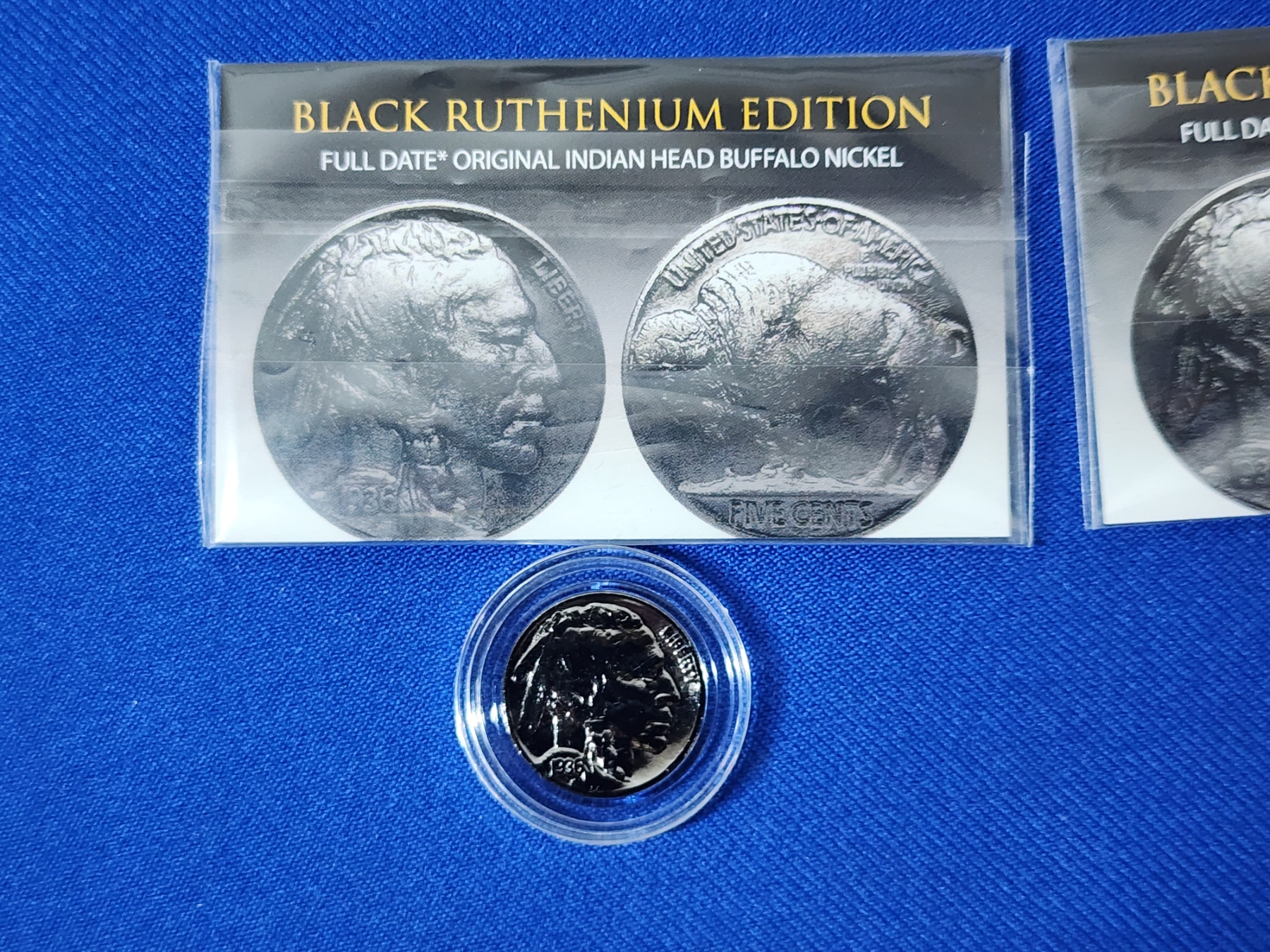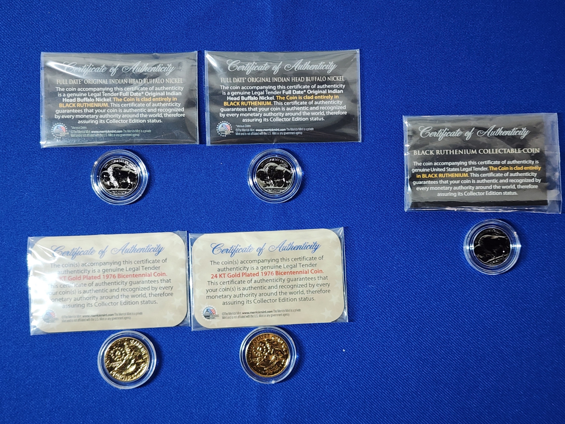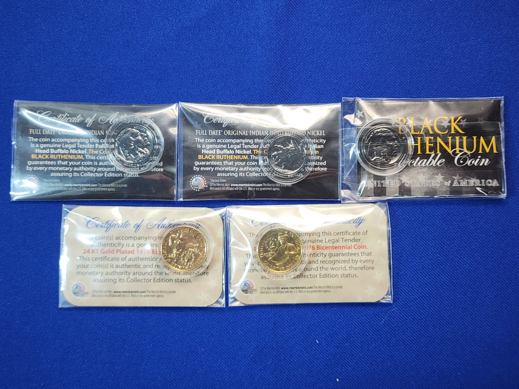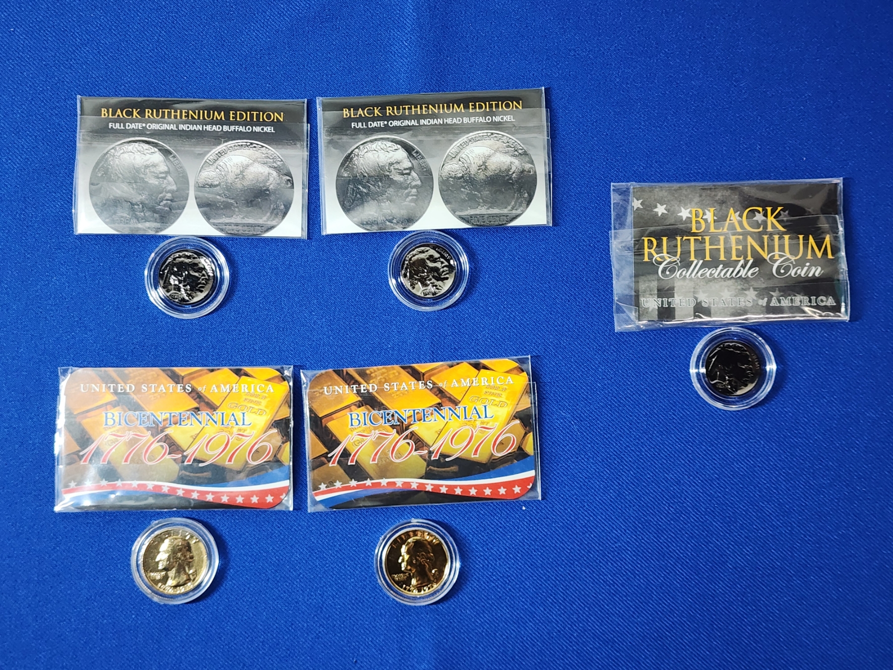 (3) Black Ruthenium Buffalo Nickels & (2) 24K Gold-Plated Bicentennial Quarters