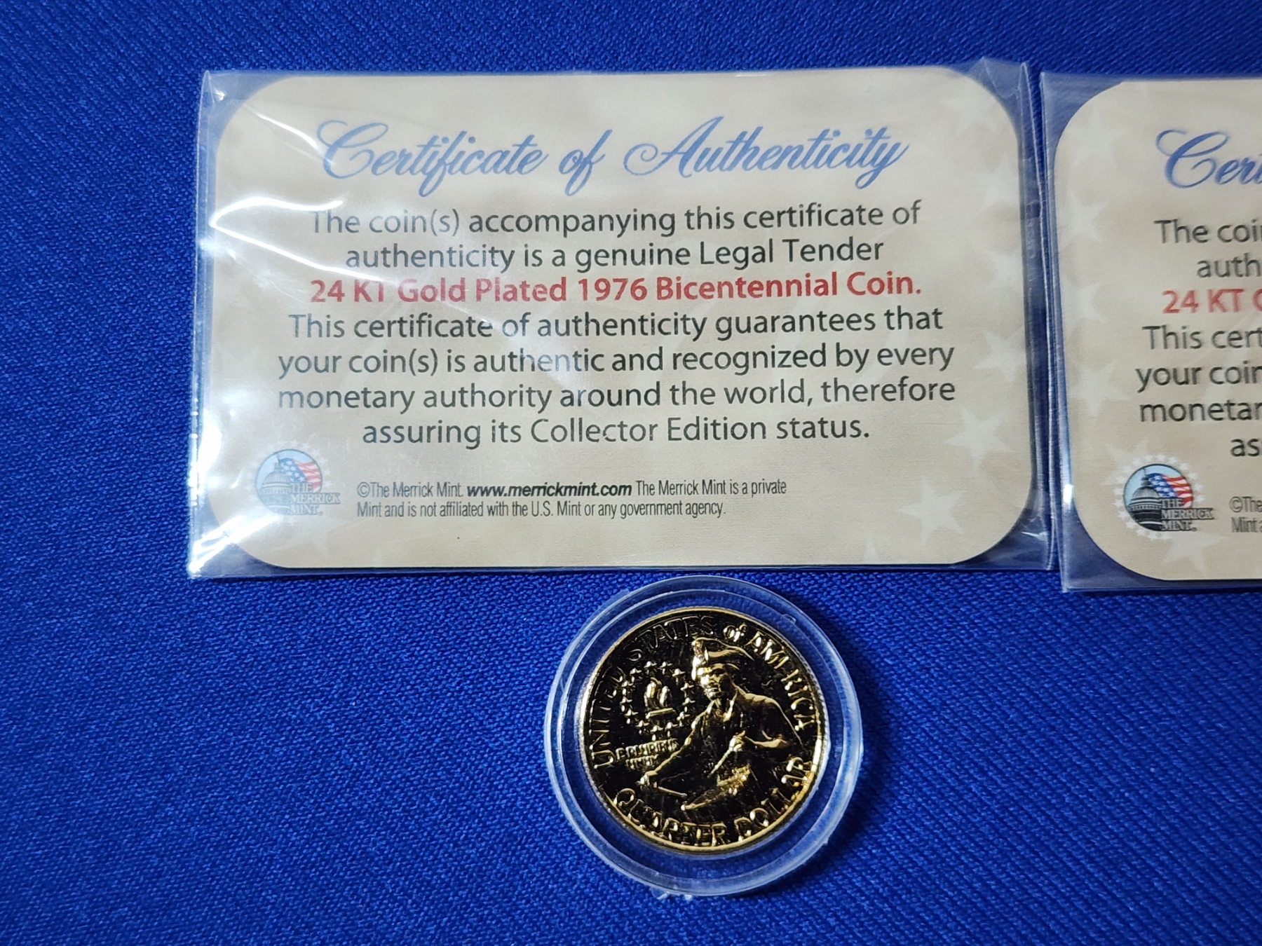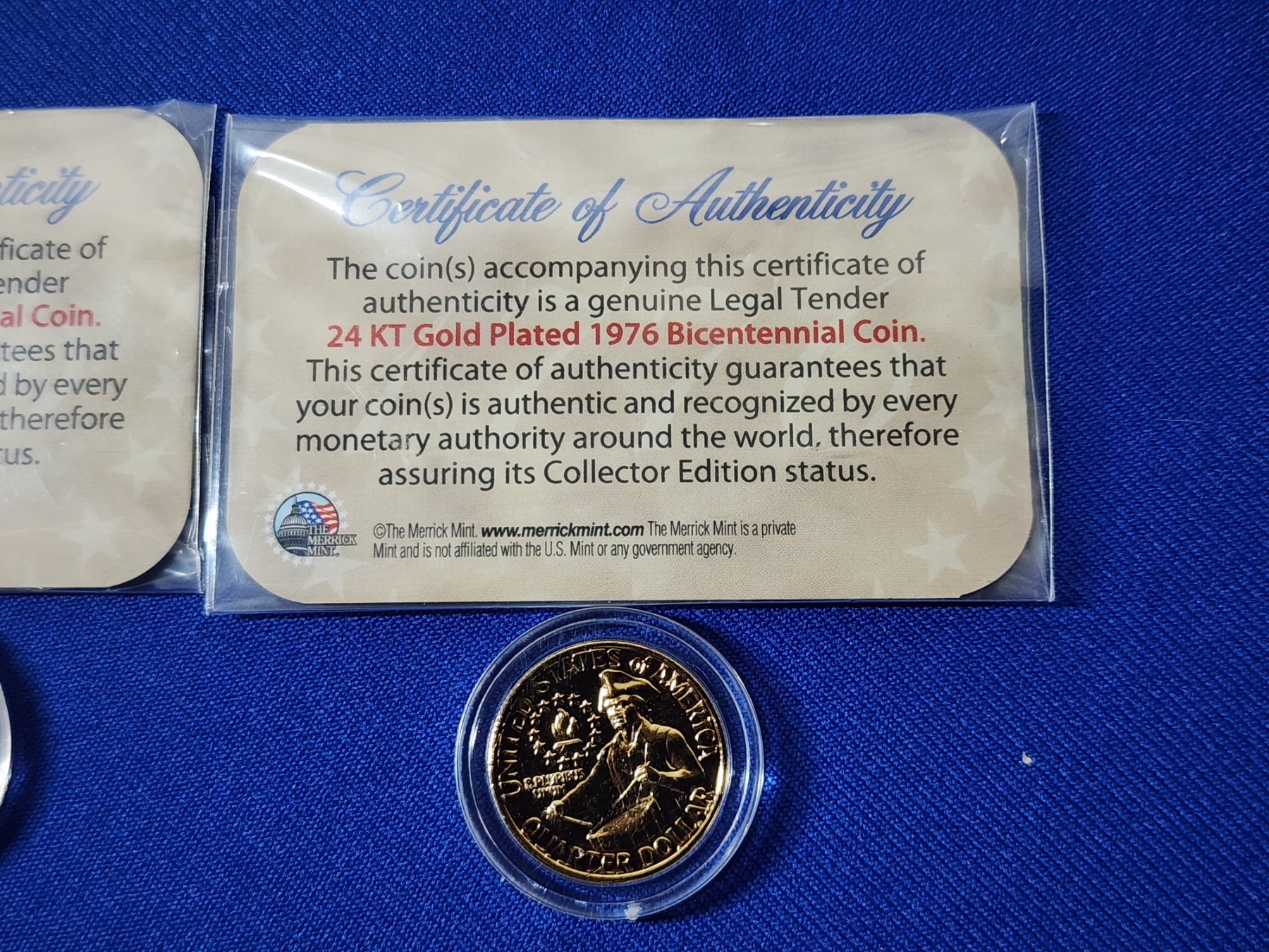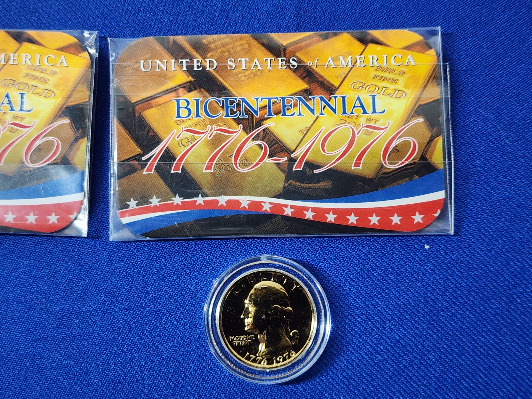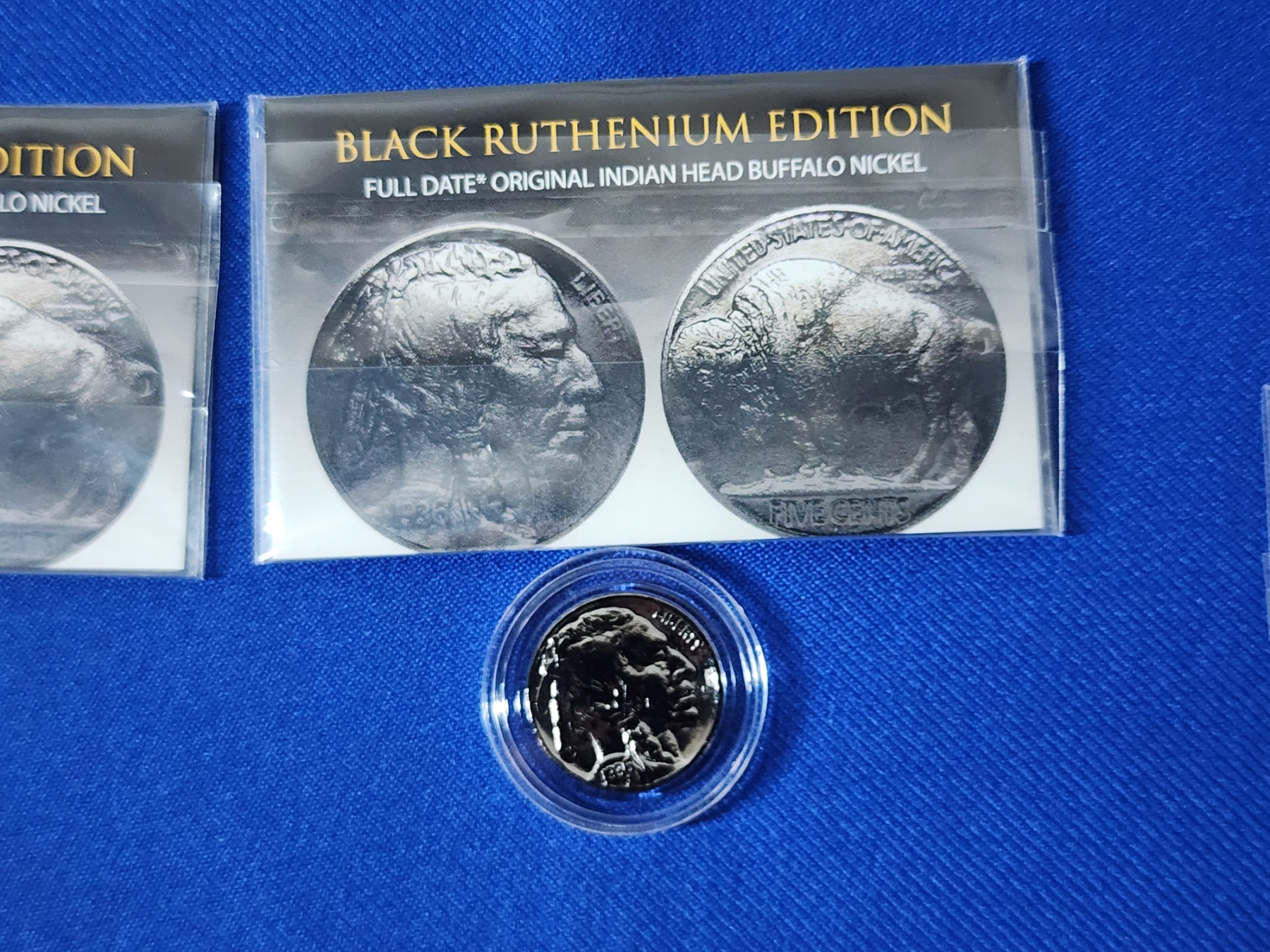 (3) Black Ruthenium Buffalo Nickels & (2) 24K Gold-Plated Bicentennial Quarters