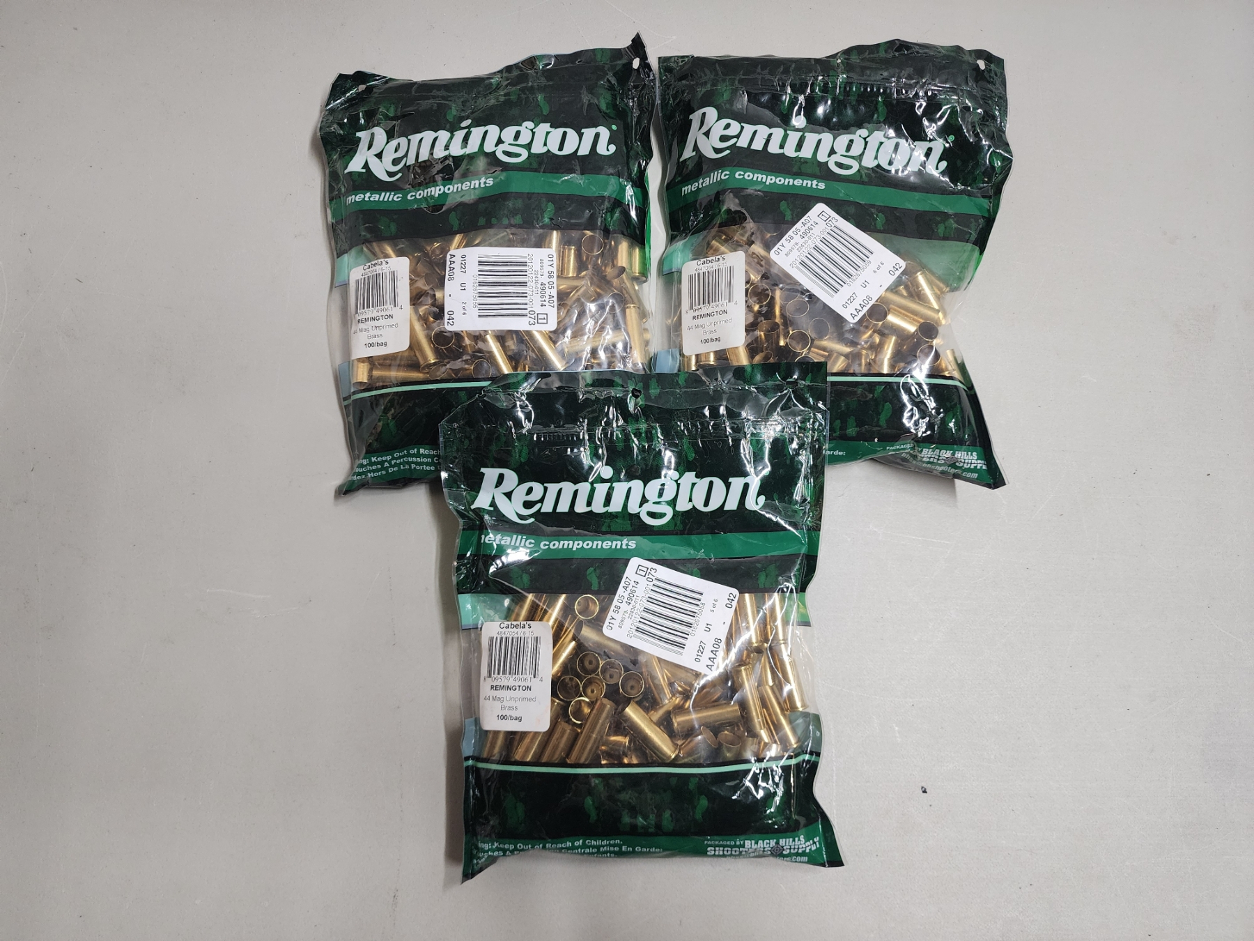 3 Brand New Sealed Bags of Remington 44 Mag Unprimed Brass Shellcases - 300 Total