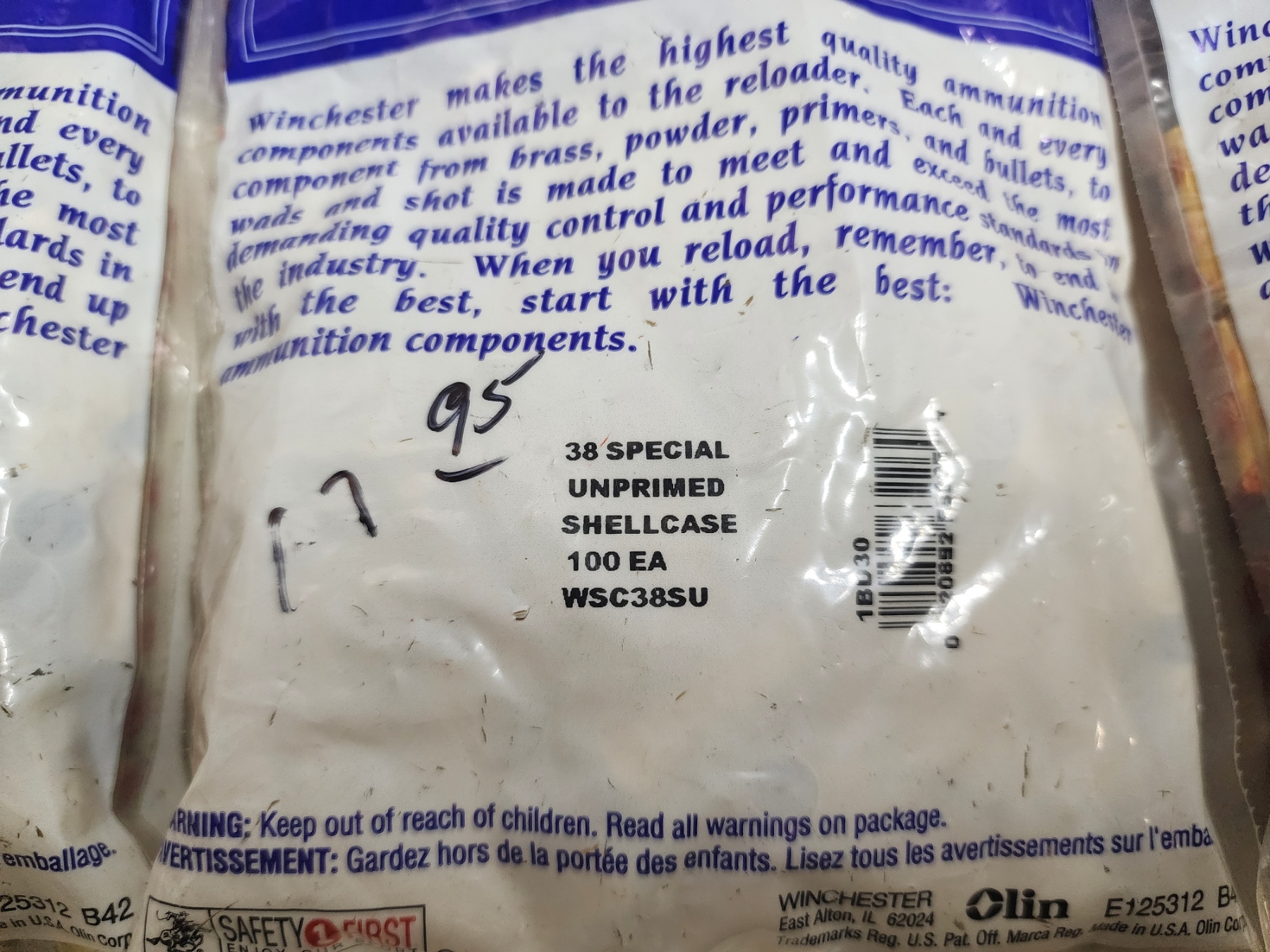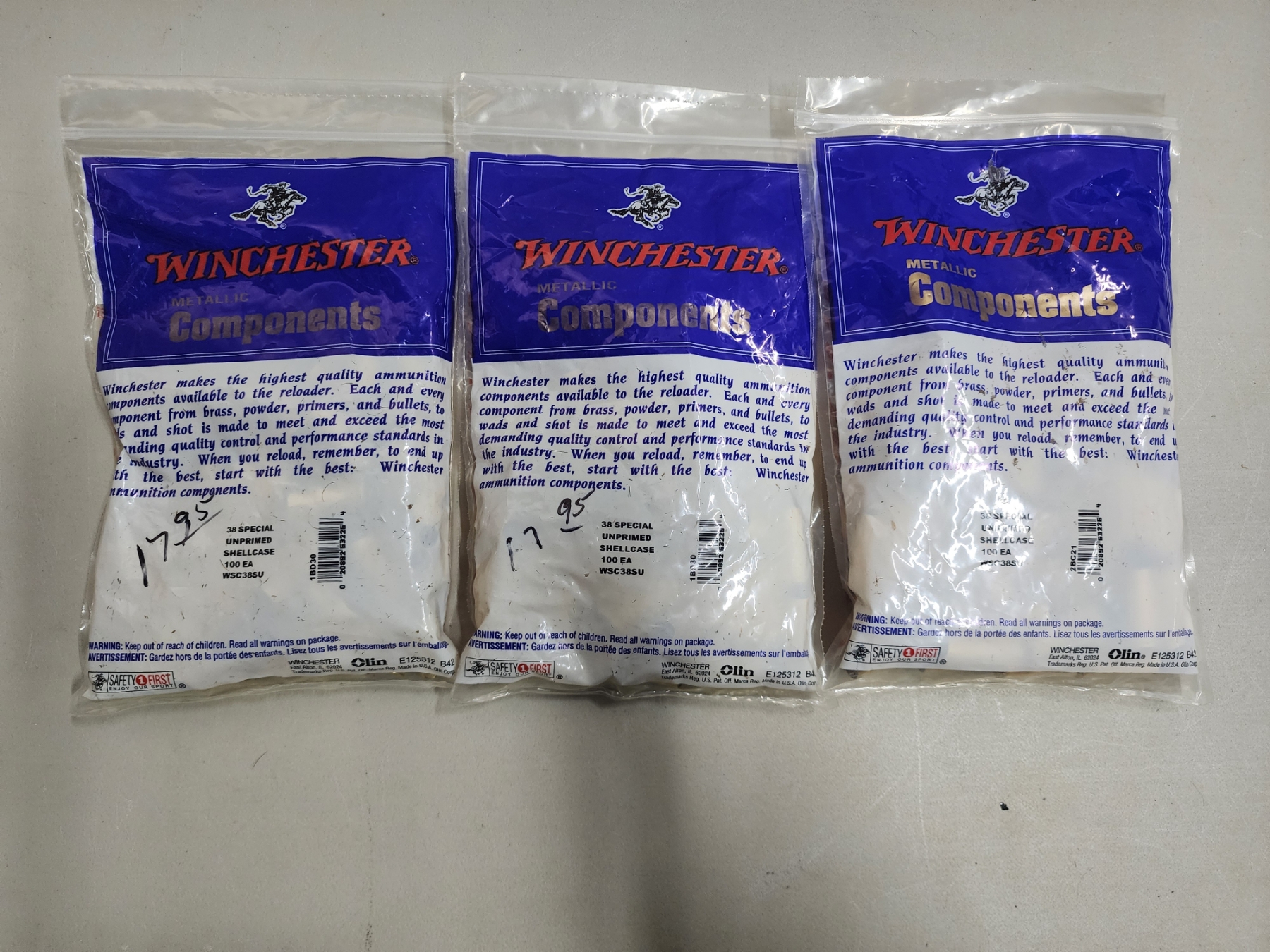 3 Brand New Sealed Bags of Winchester .38 Special Unprimed Shellcases - 300 Total