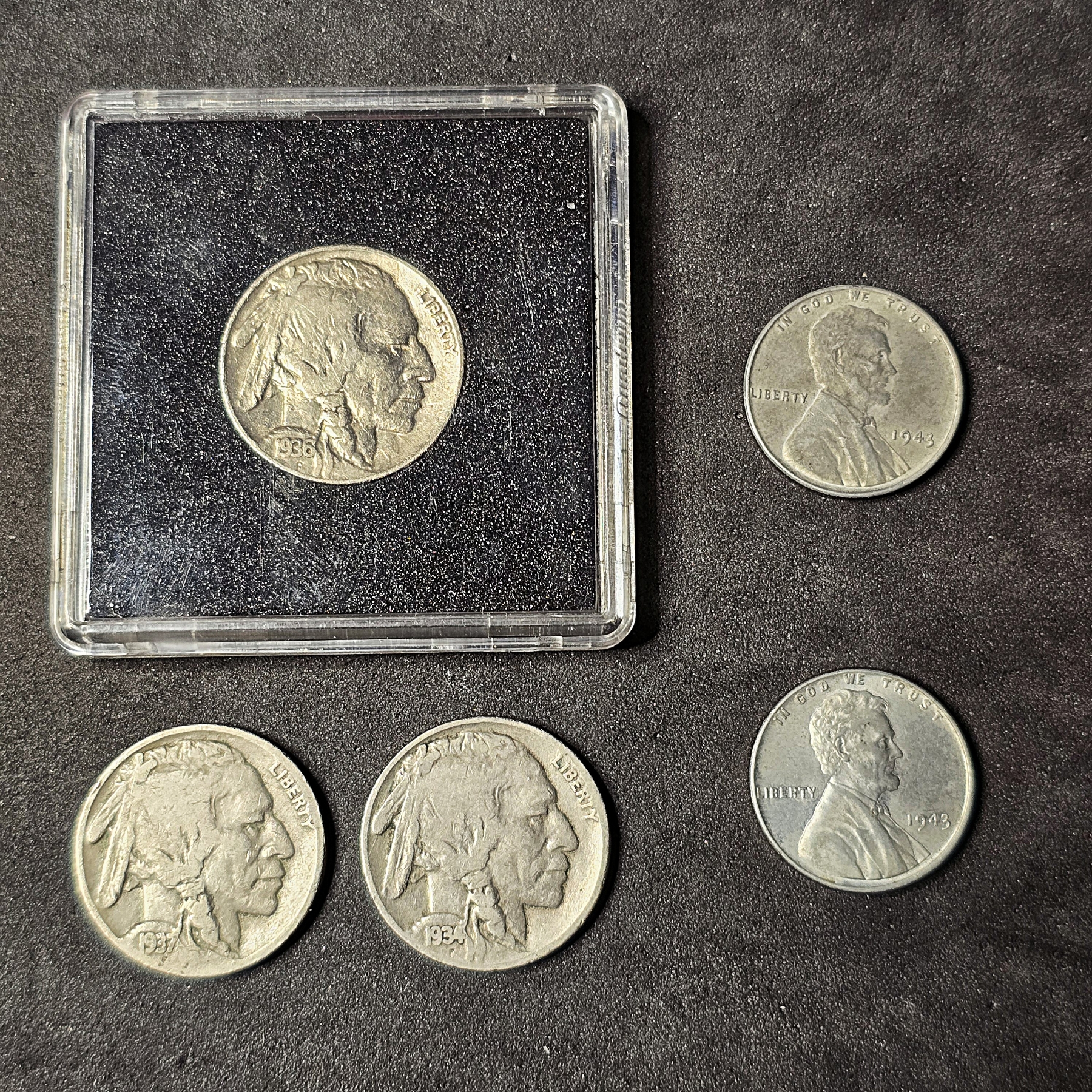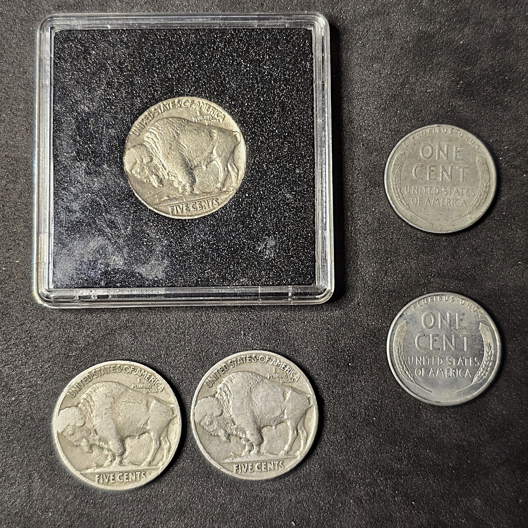 (3) Buffalo Head Nickels & (2) Steel Pennies