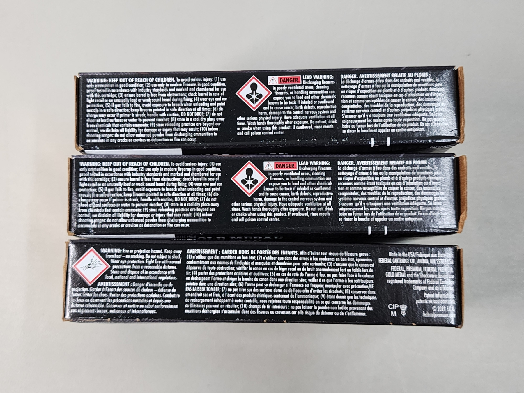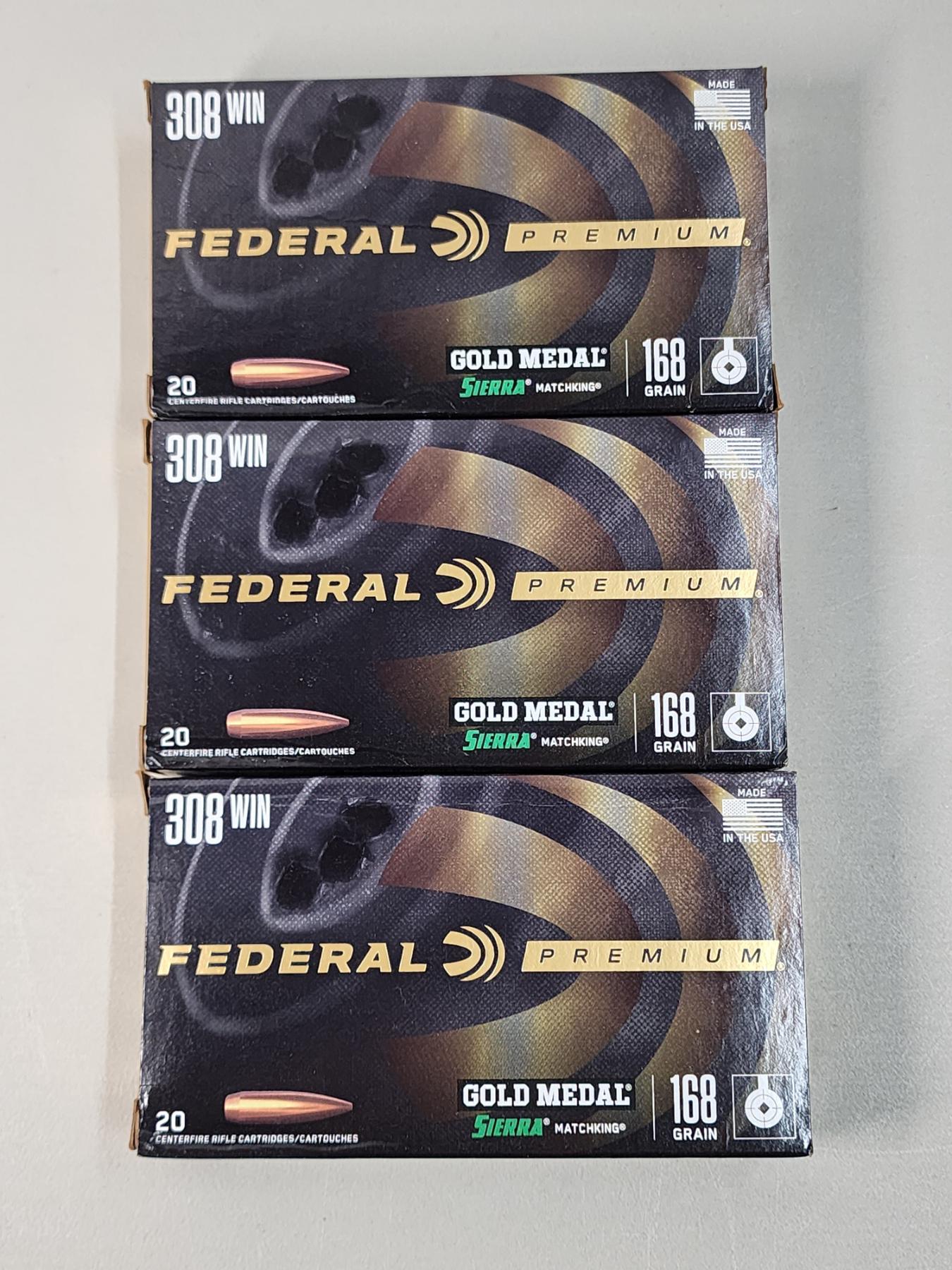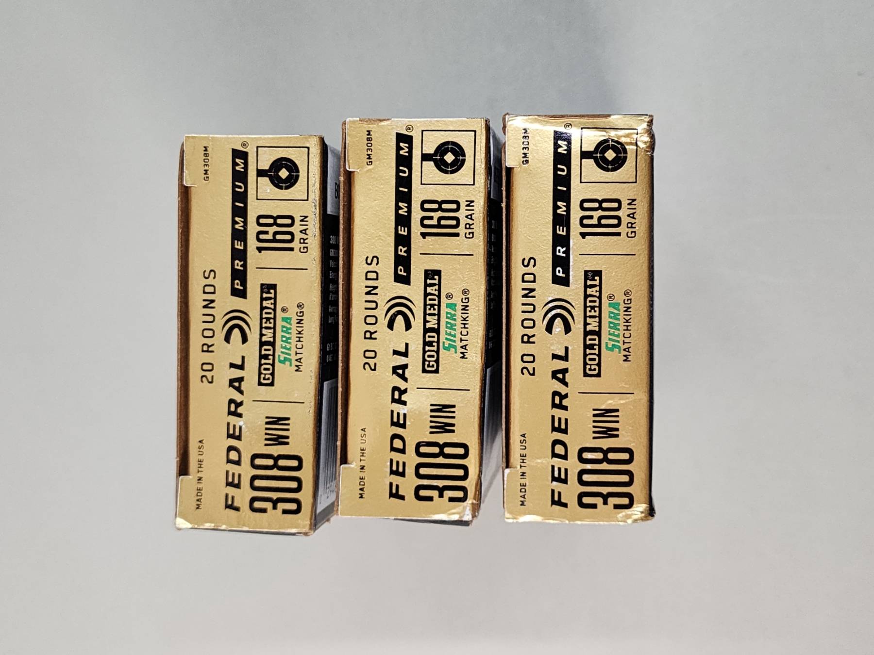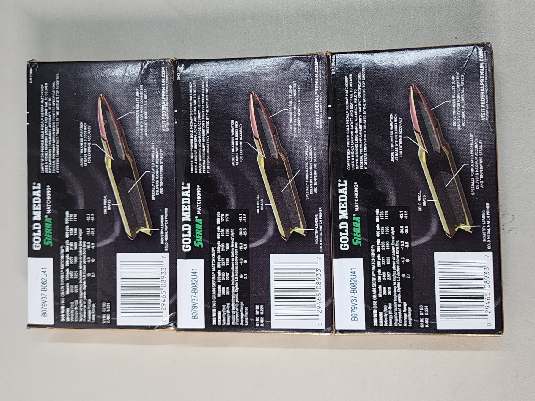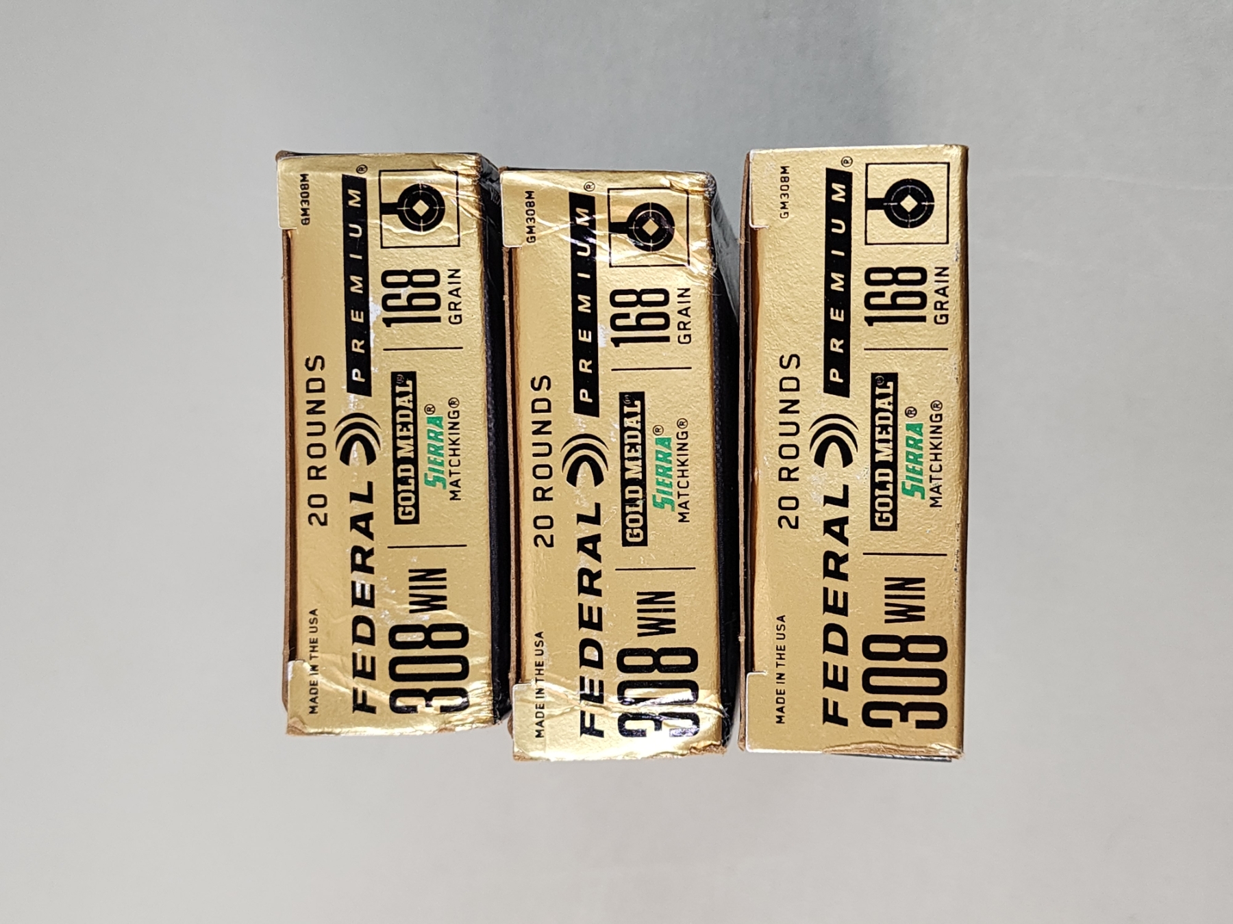 3 Full Boxes of Federal Premium Gold Medal 308 Winchester Ammunition - 60 Rounds Total