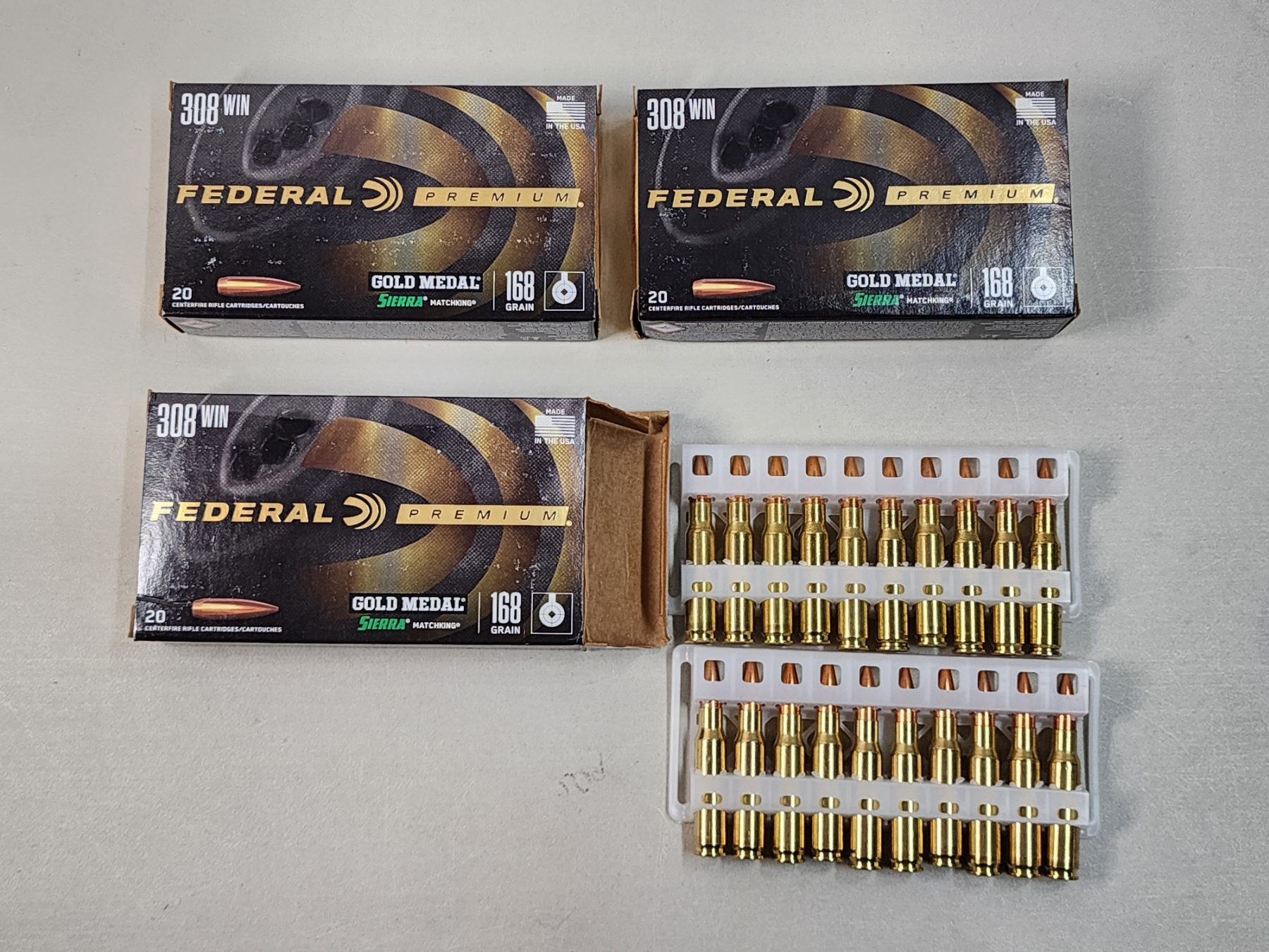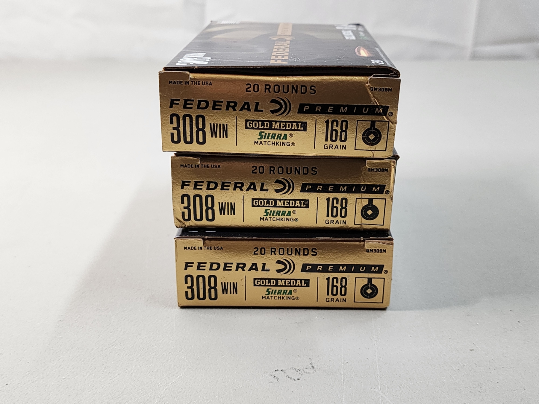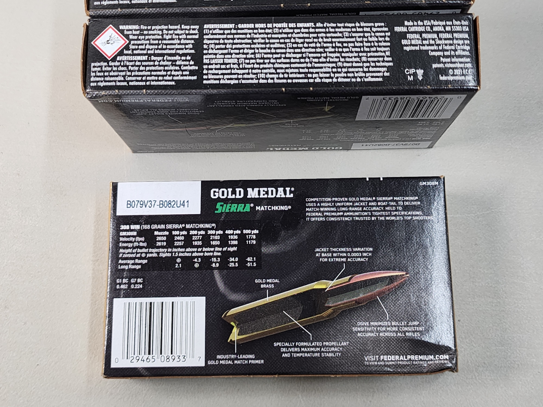 3 Full Boxes of Federal Premium Gold Medal 308 Winchester Ammunition - 60 Rounds Total