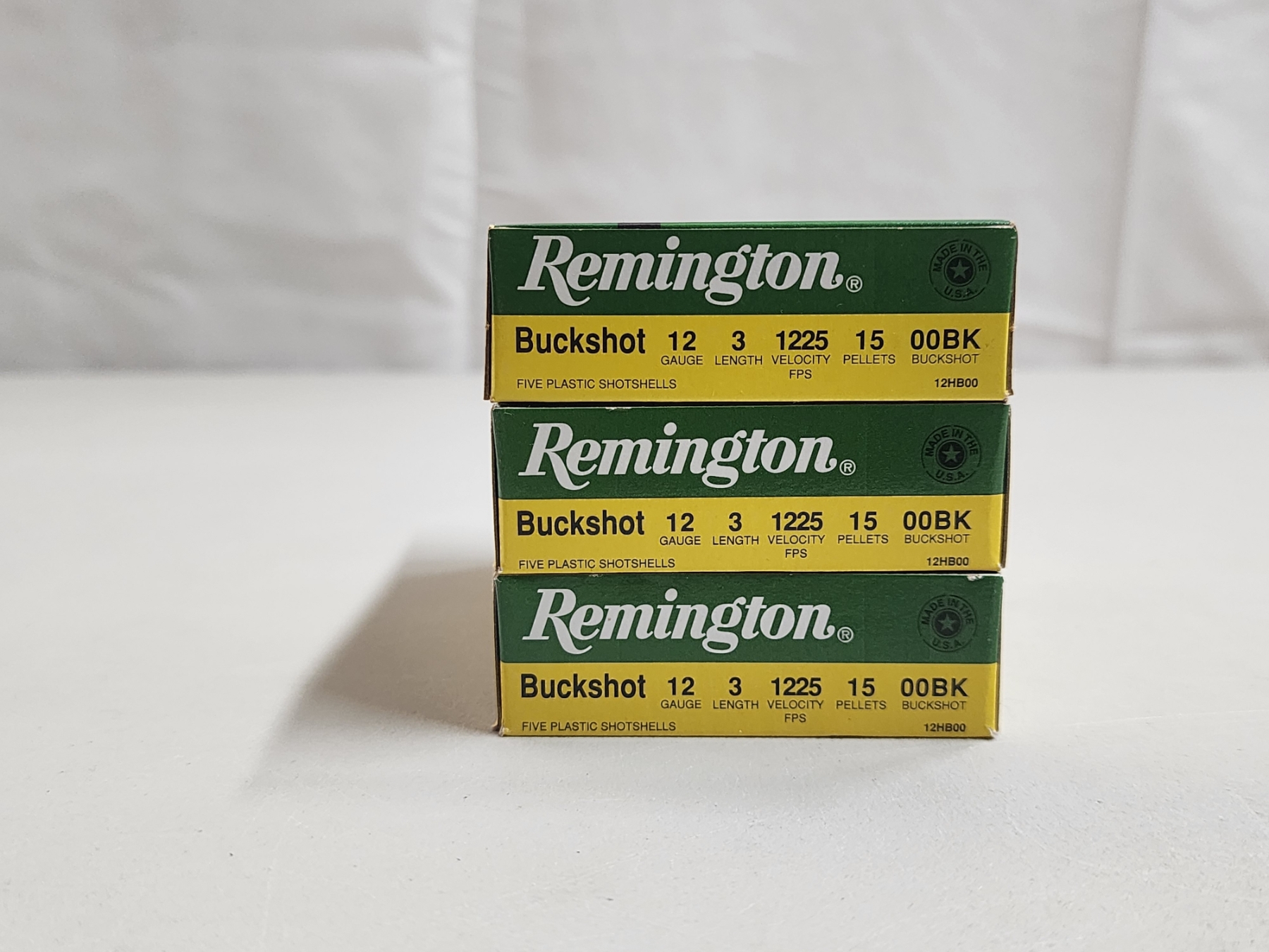 3 Full Boxes of Remington Buckshot 12 Gauge 3in 00BK - 15 Total