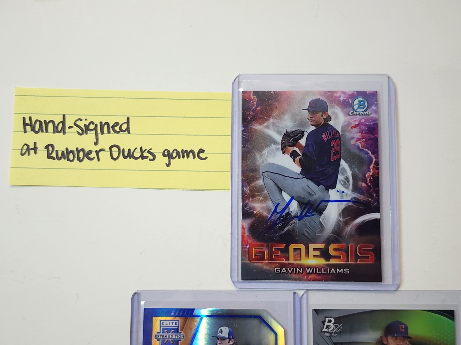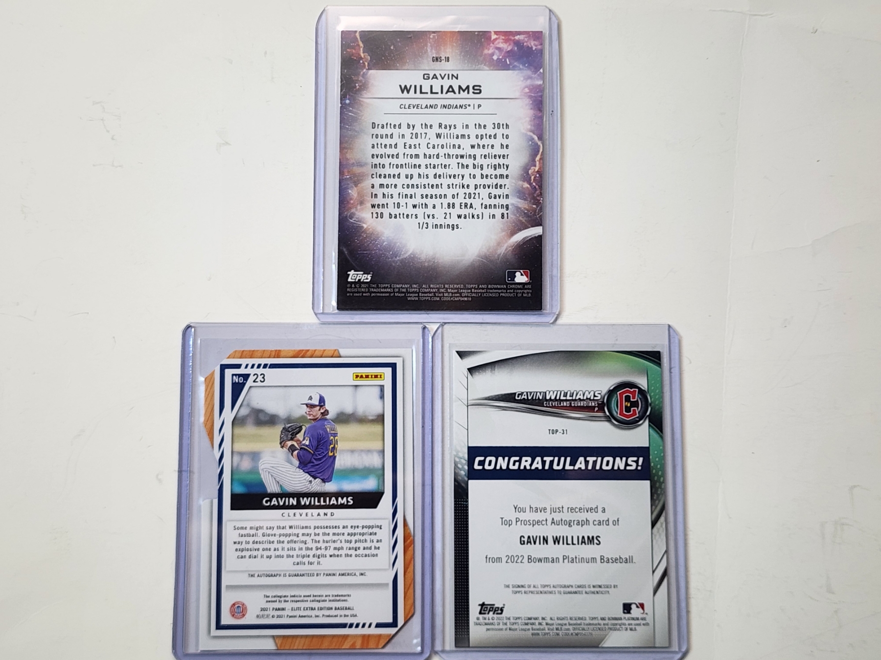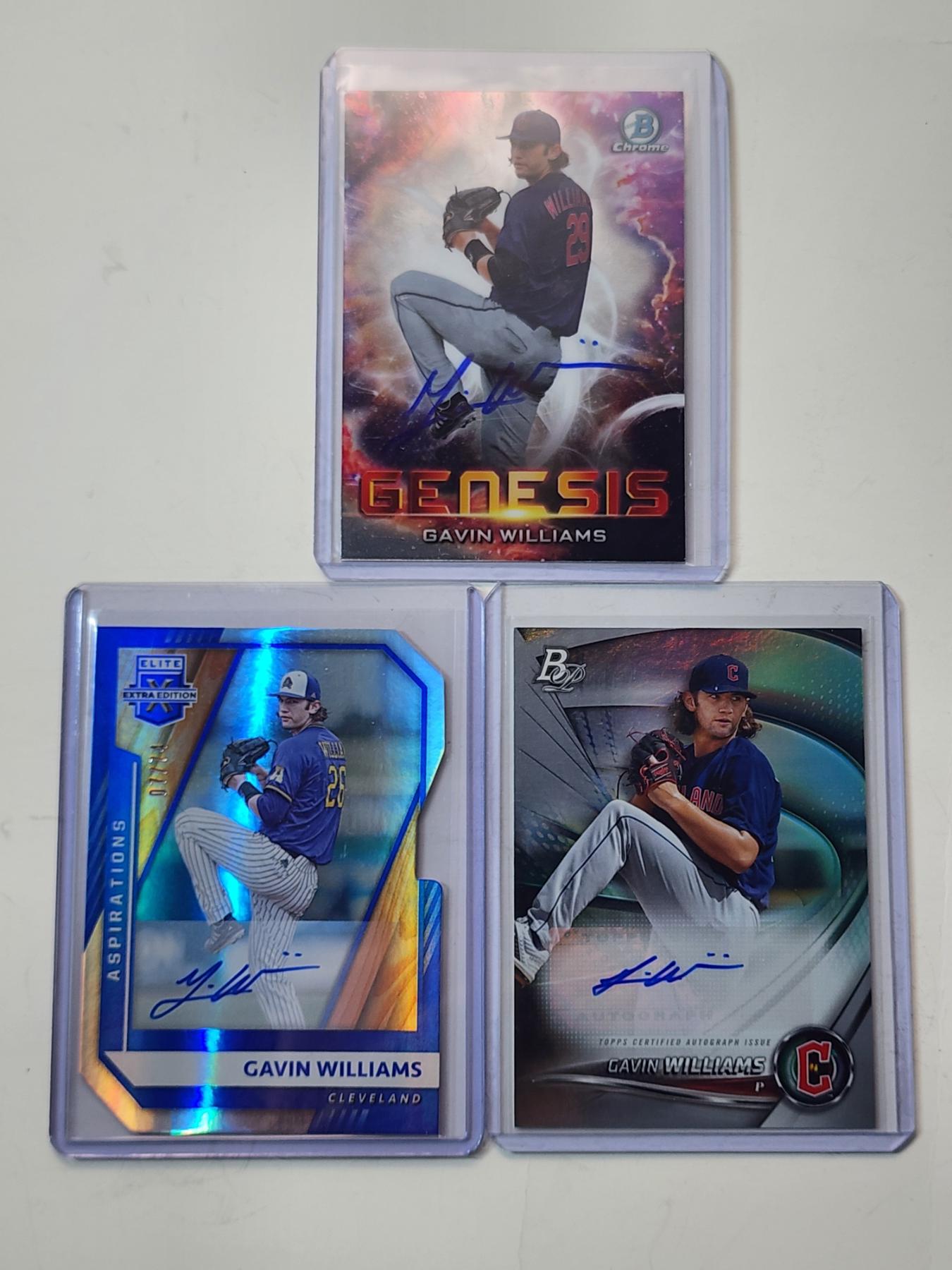 3 Gavin Williams Baseball Cards Including HAND-SIGNED 2021 Topps Bowman Chrome Genesis Card Mint Condition