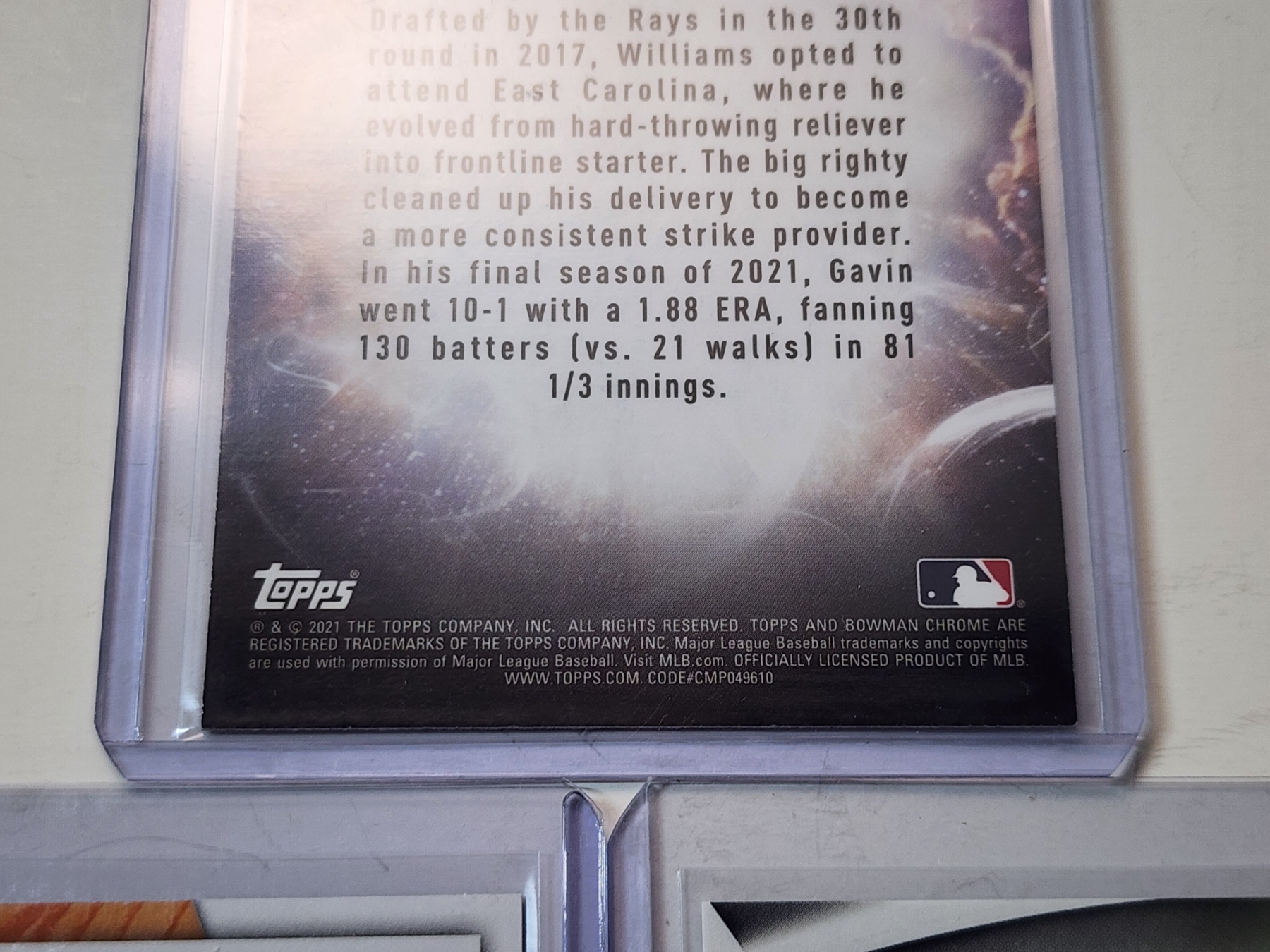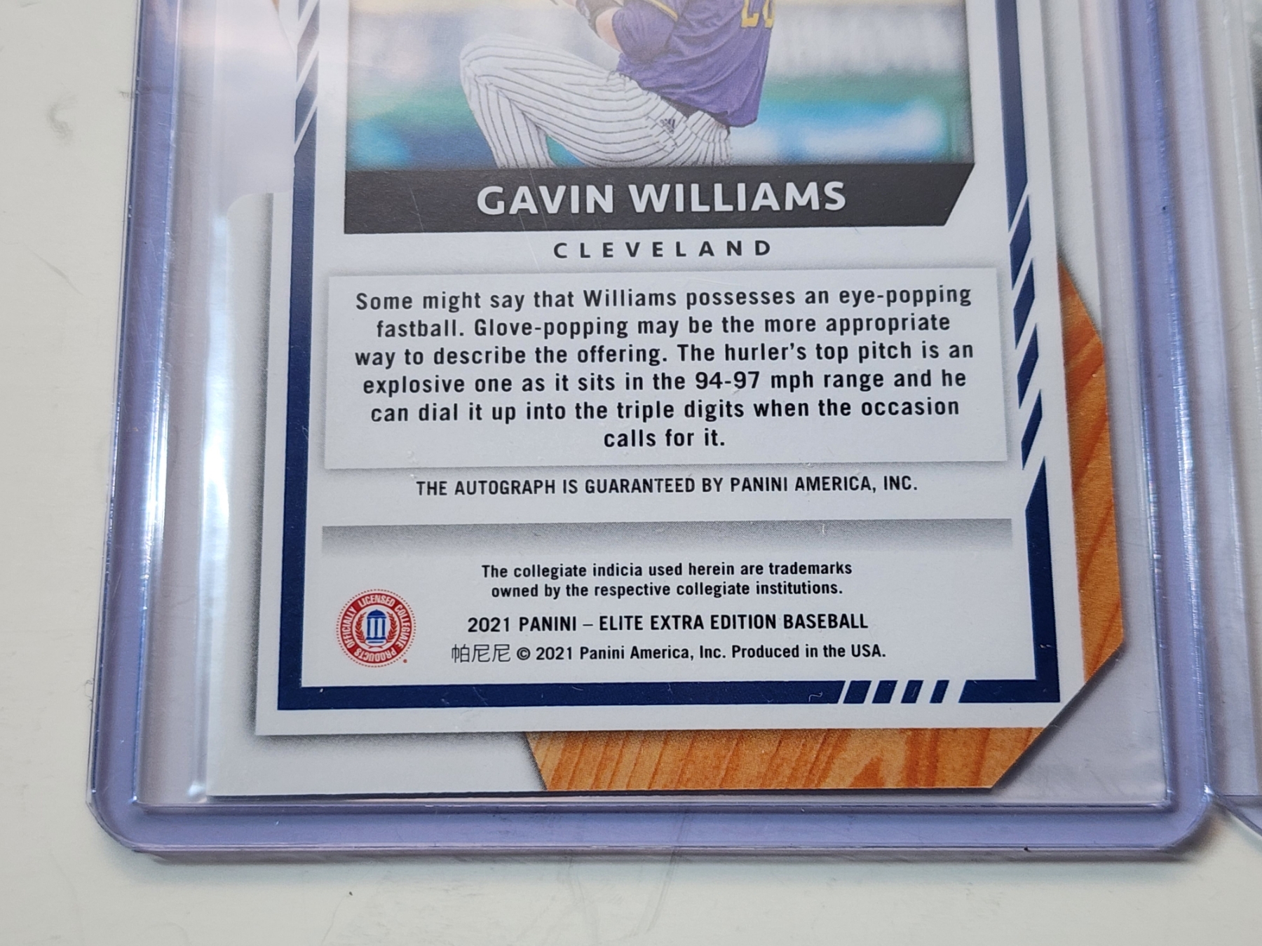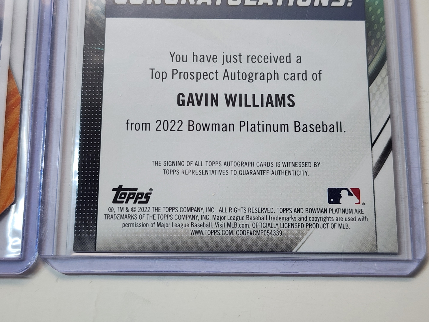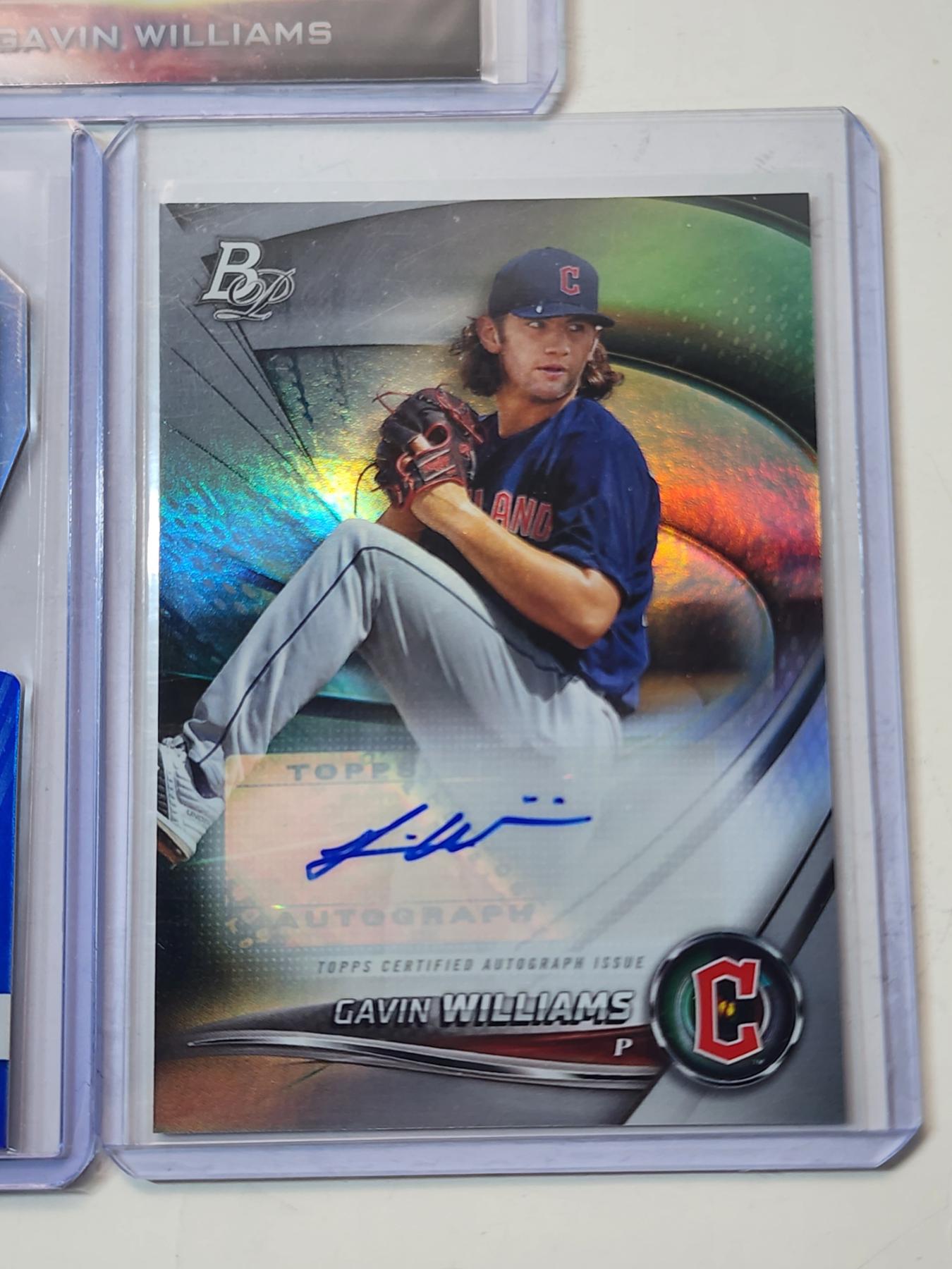 3 Gavin Williams Baseball Cards Including HAND-SIGNED 2021 Topps Bowman Chrome Genesis Card Mint Condition
