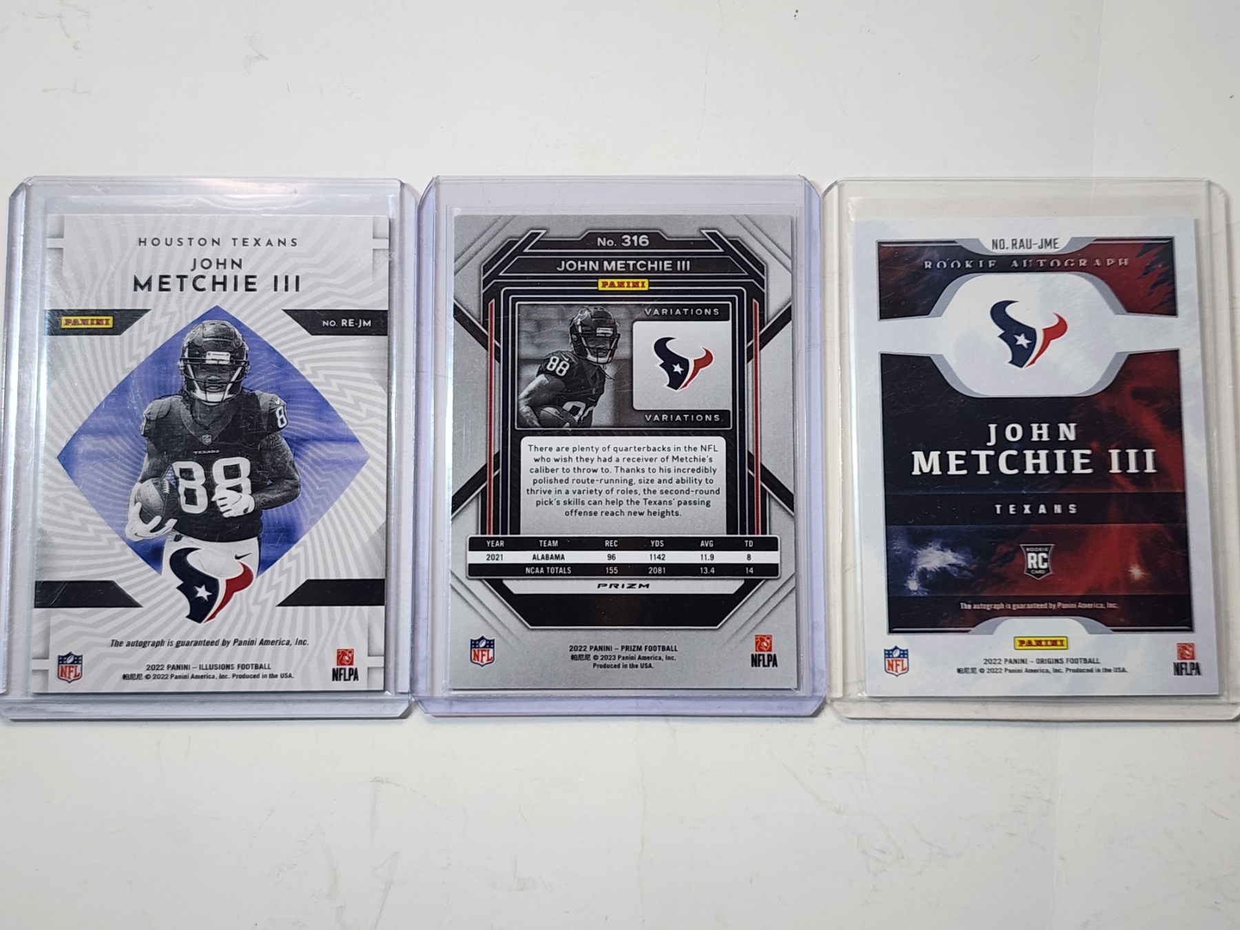 3 John Metchie III Football Trading Cards Including Autographed 2022 Panini