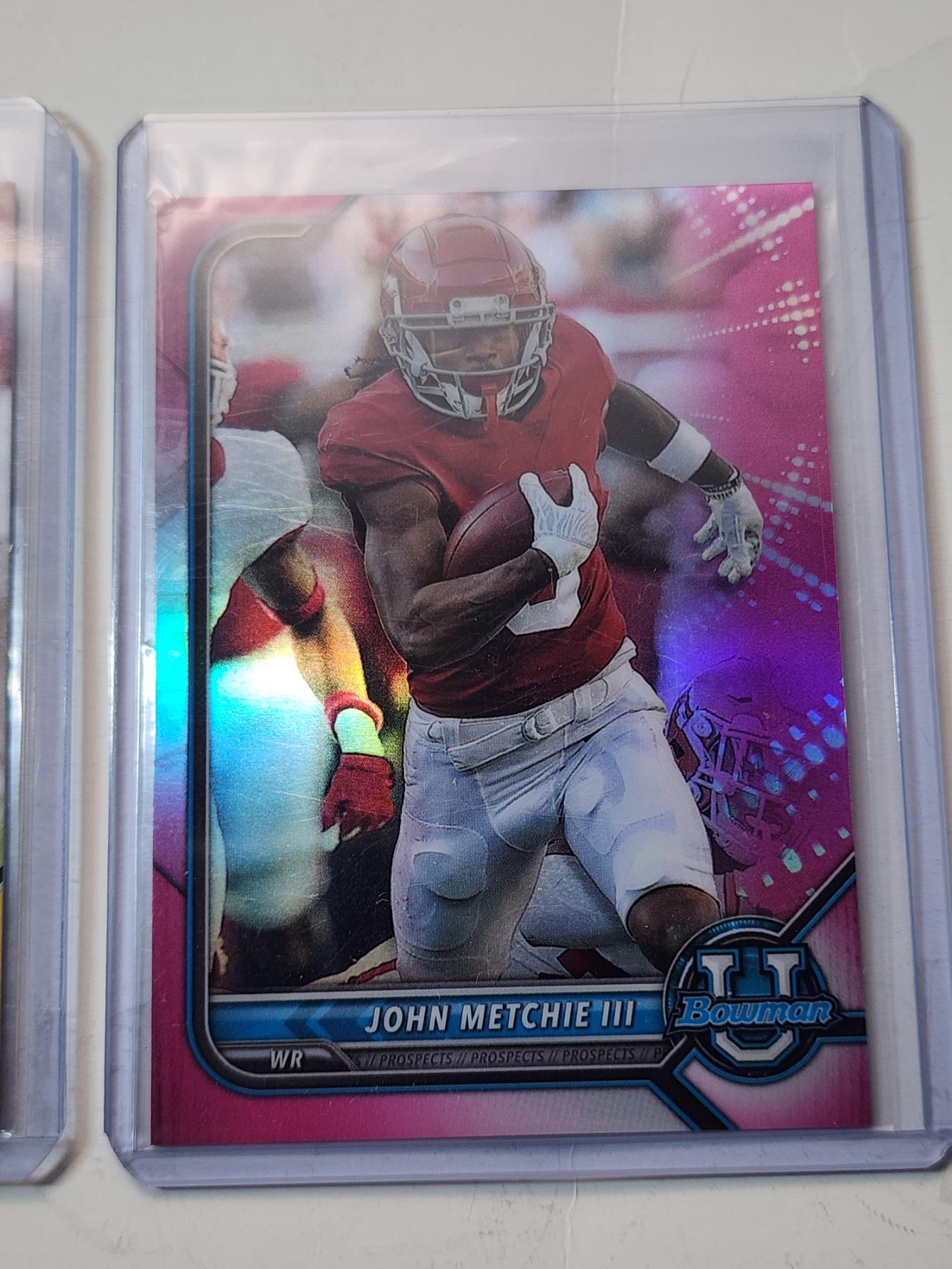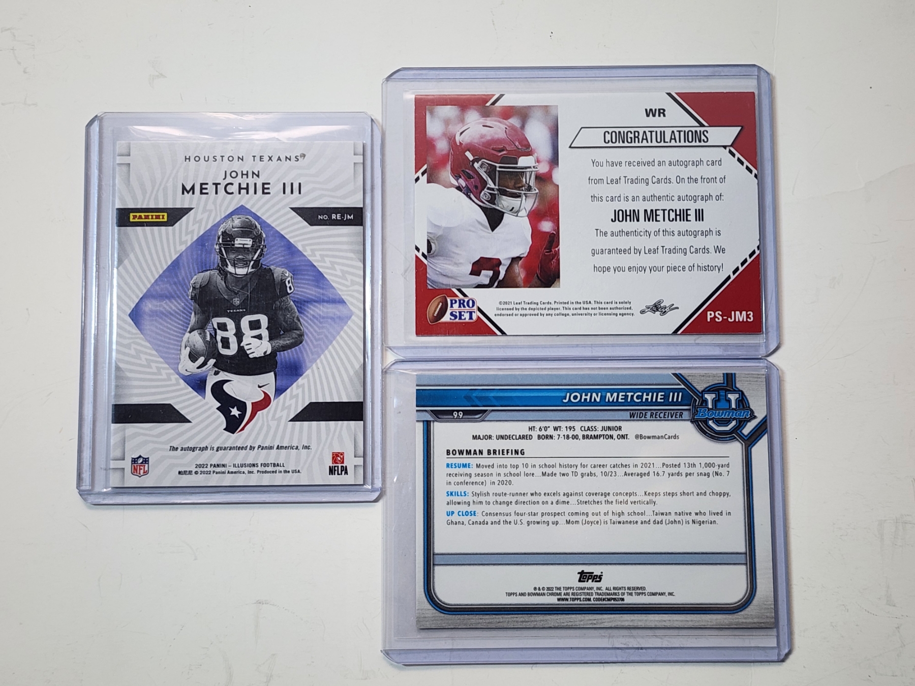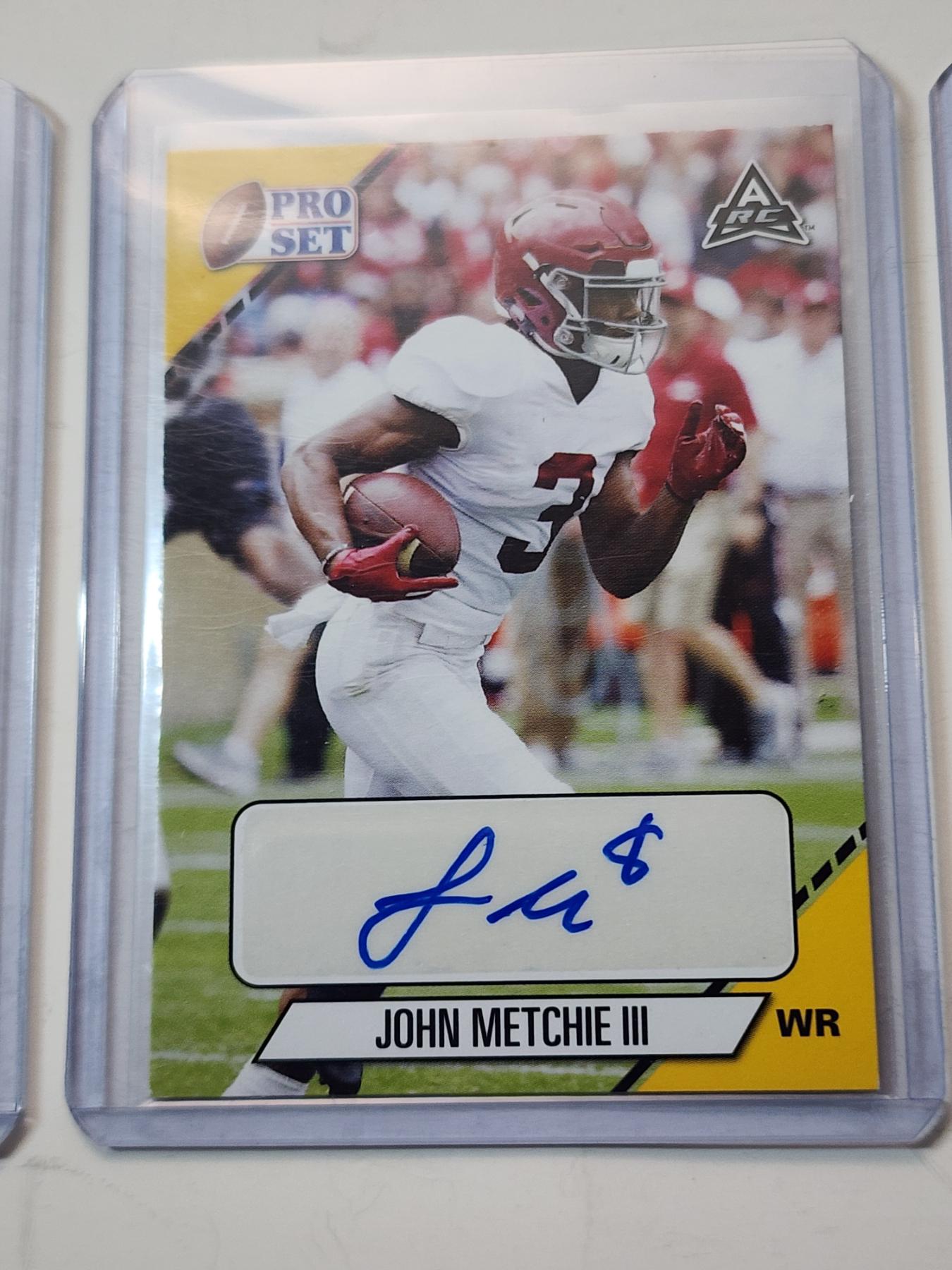 3 John Metchie III Trading Cards Including Autographed 2021Leaf Pro Set, 2022 Panini, & 2022 Topps