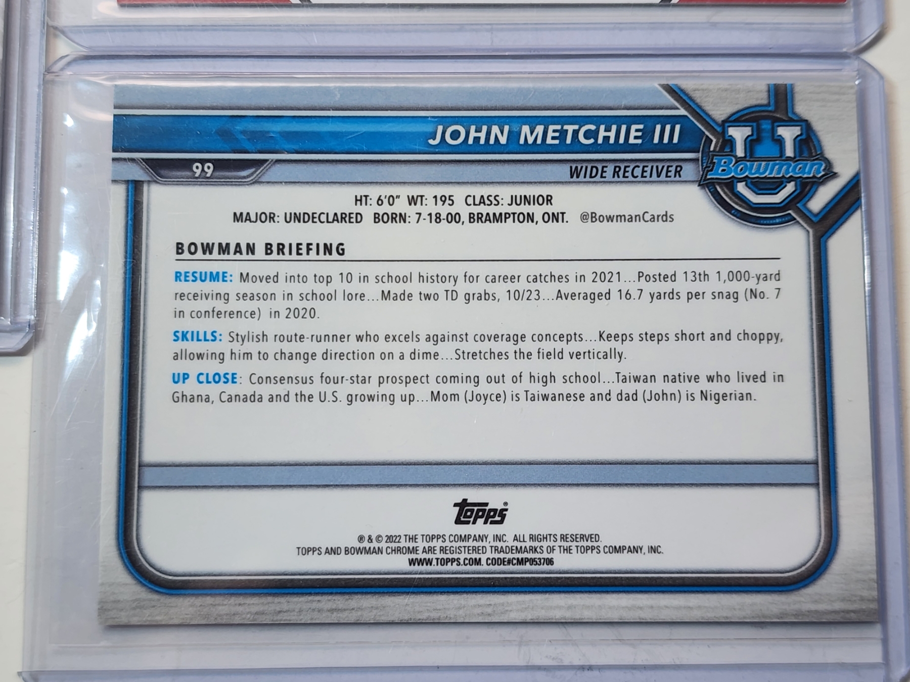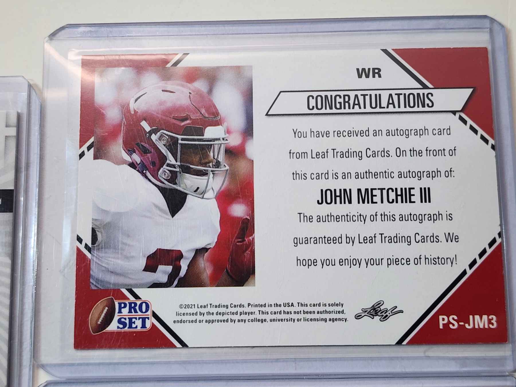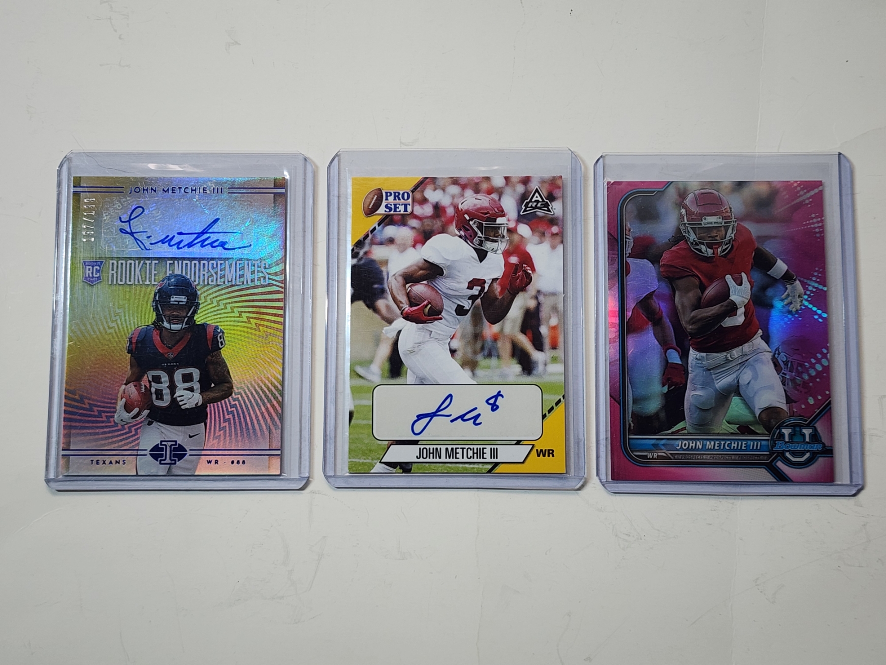 3 John Metchie III Trading Cards Including Autographed 2021Leaf Pro Set, 2022 Panini, & 2022 Topps