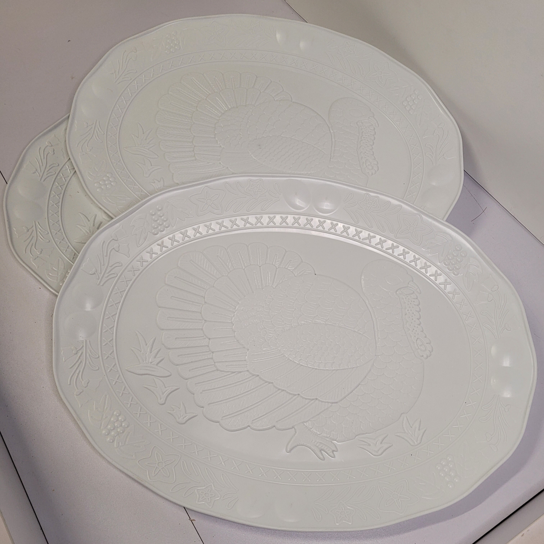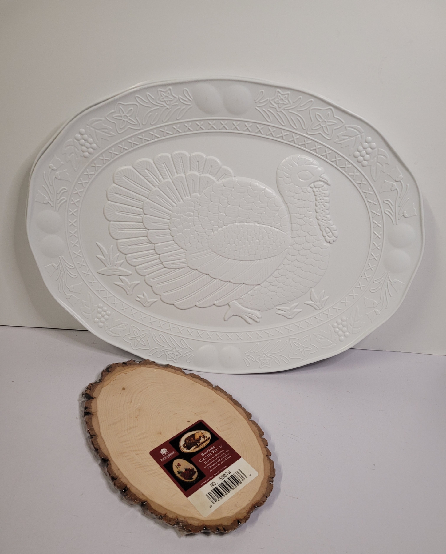 3 Large Turkey Platters And A Basswood Country Round
