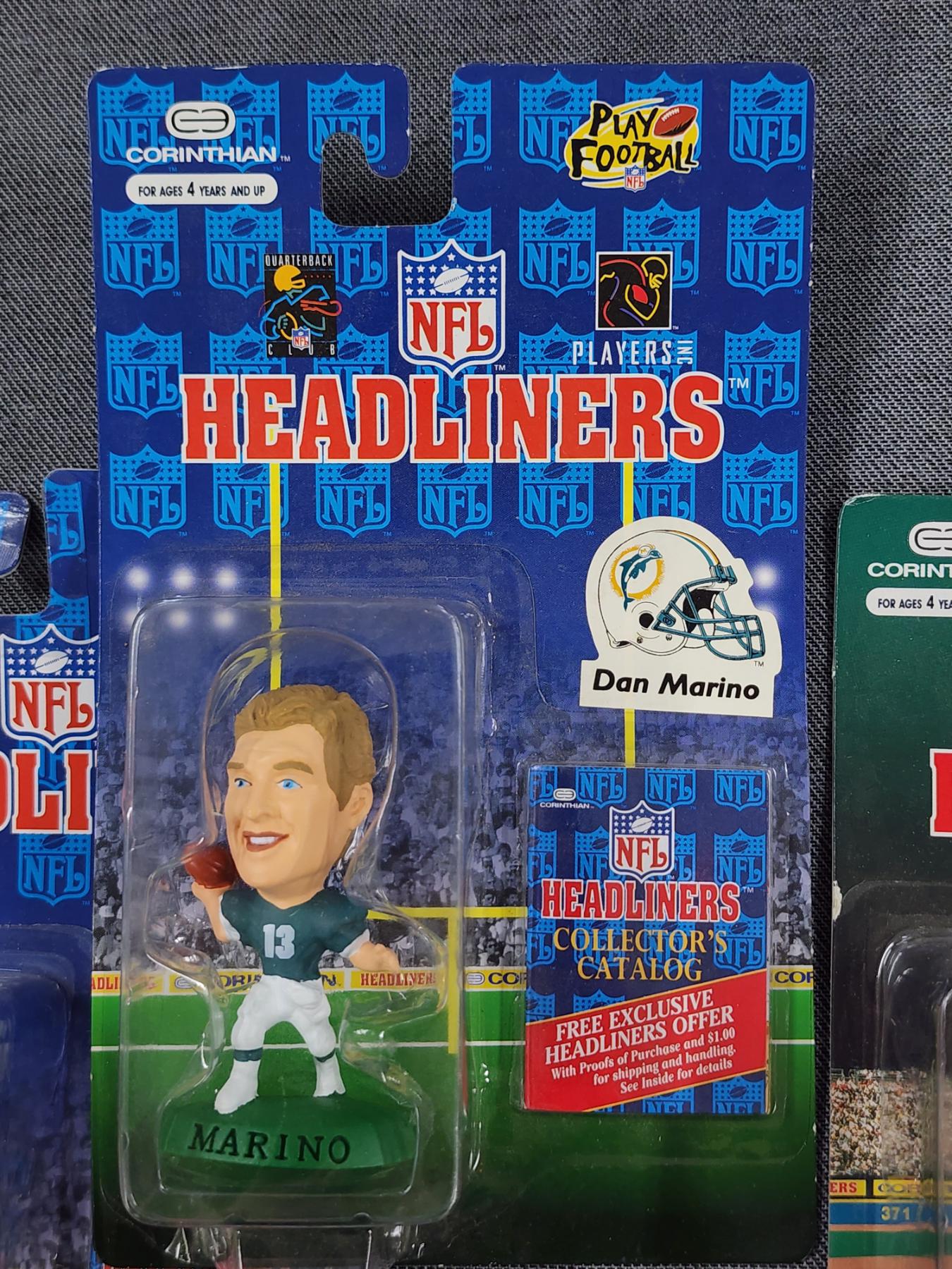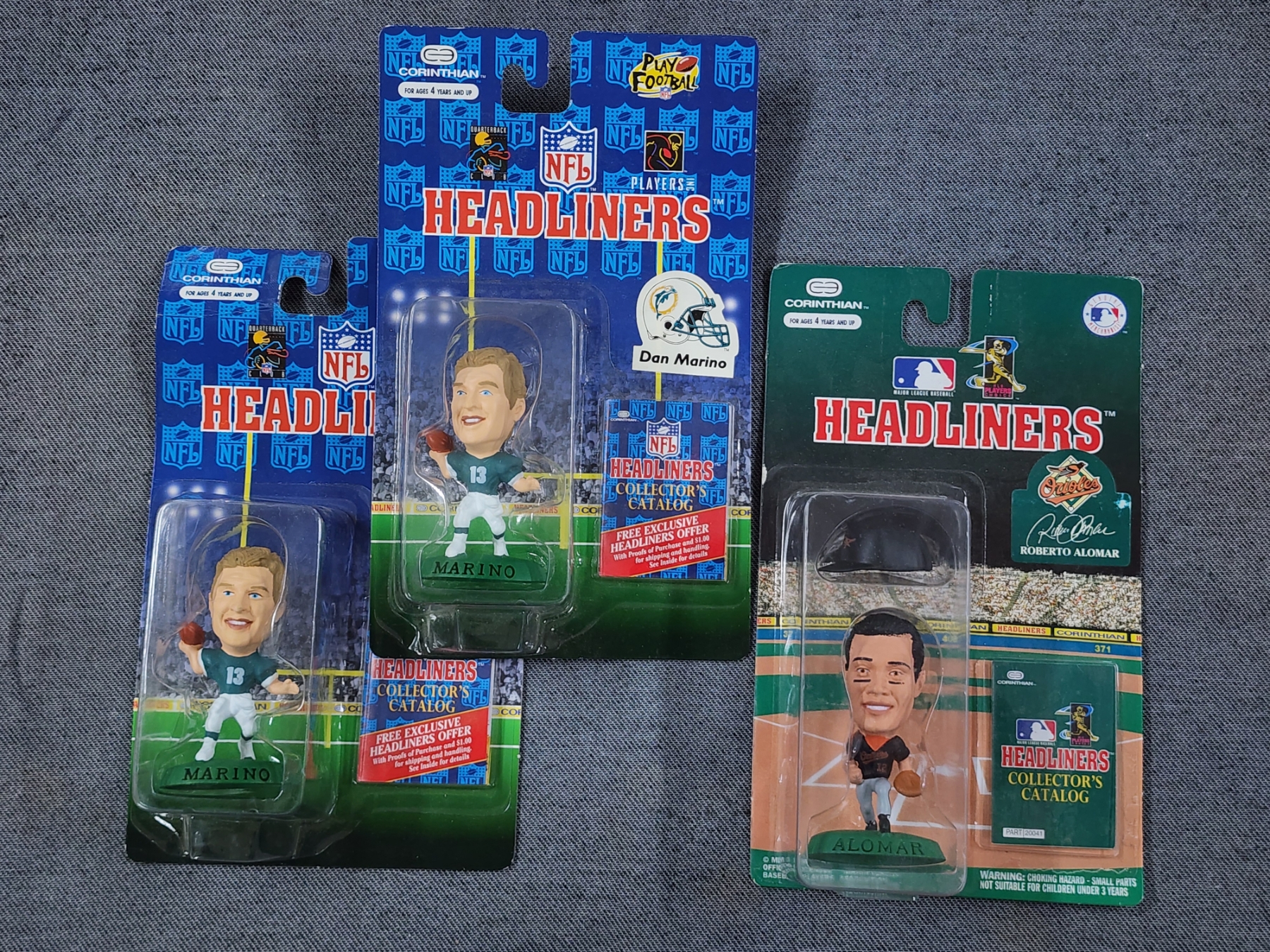 3 Officially Licensed NFL/MLB Corinthian Headliners Bobbleheads ~ 2 Dan Marino & 1 Roberto Alomar!