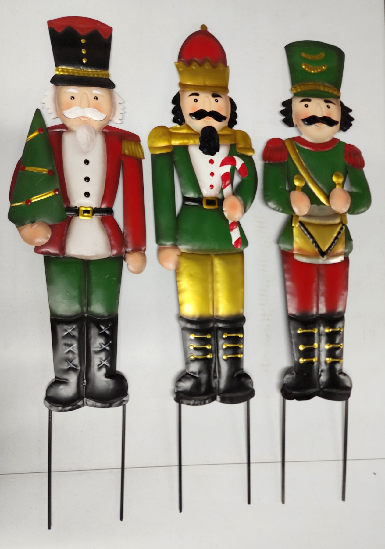 3 Outdoor Metal Christmas/Holiday Nutcracker Yard Stakes - Approx. 30in Tall