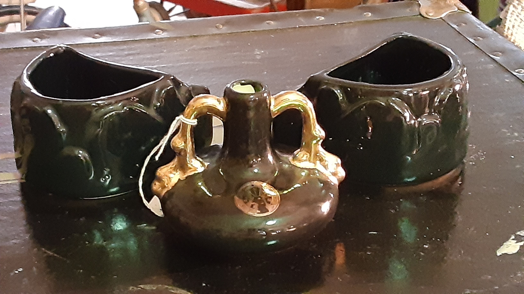 3 Pc Accessory Pieces - Gold & Black Enameled 1950s - See Pics
