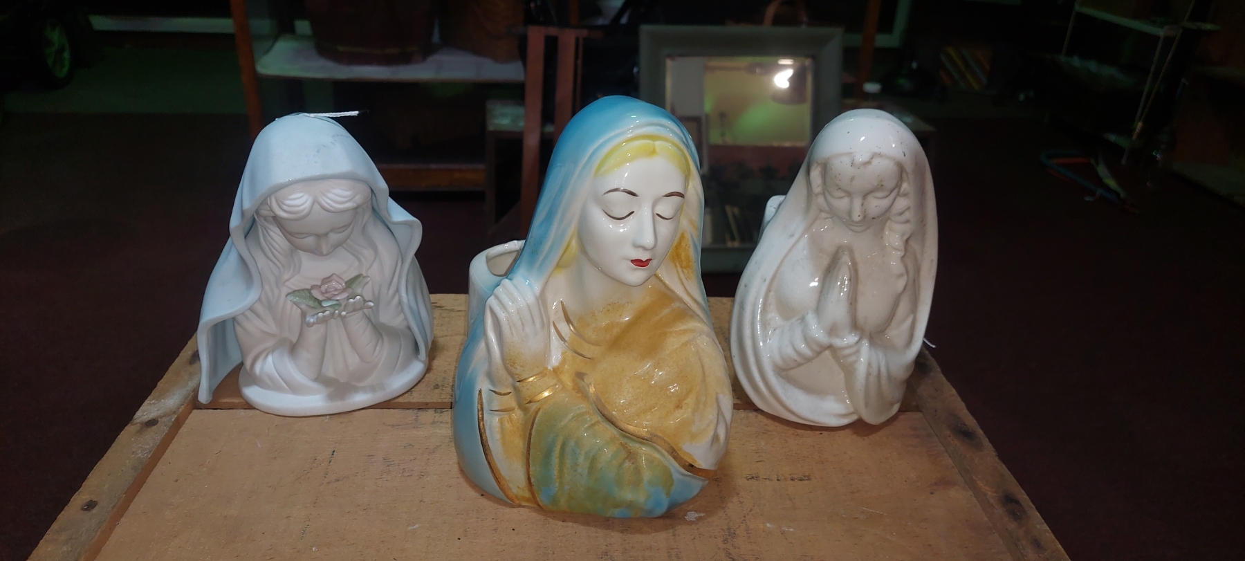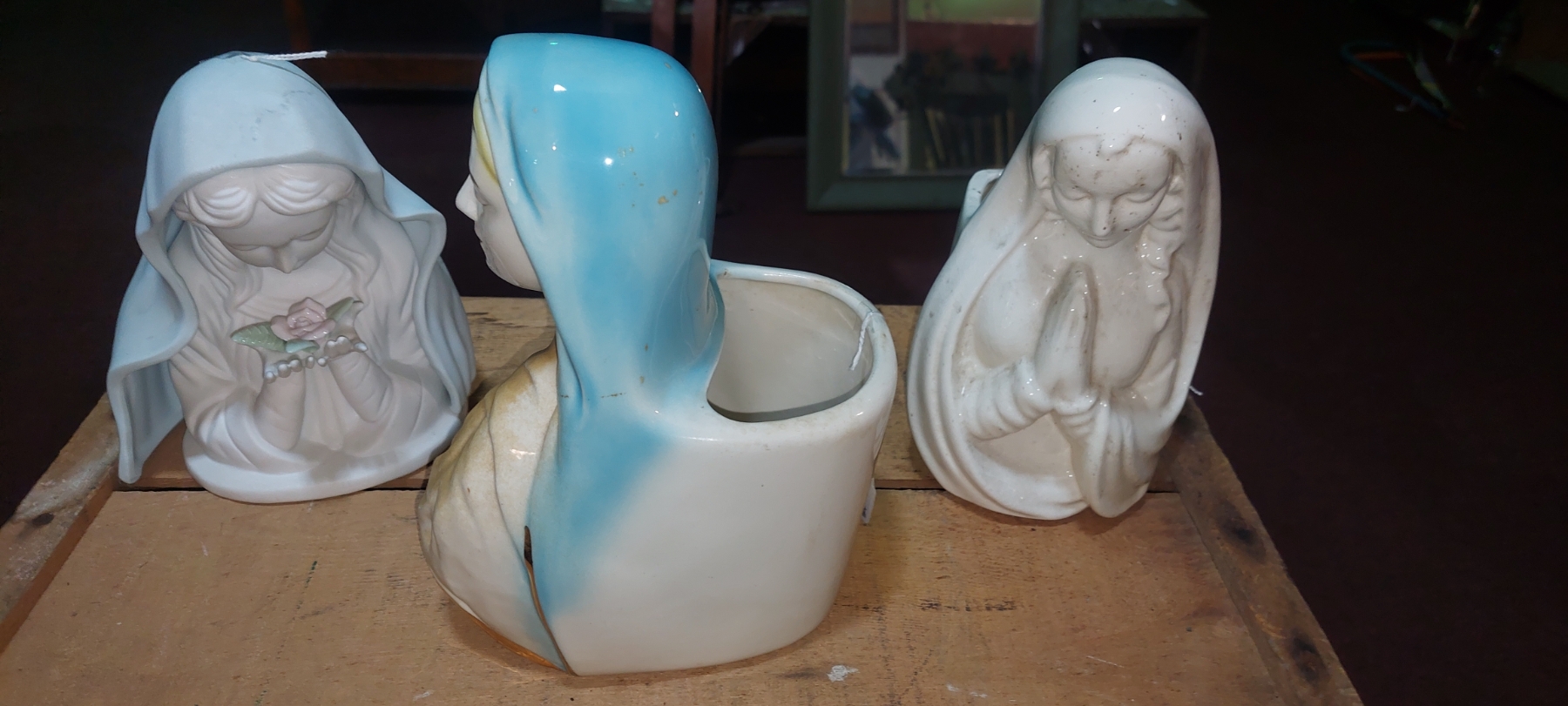 3 Pc Religious Lot - Virgin Mary Figural Collection - Planters As Shown Nice Condition