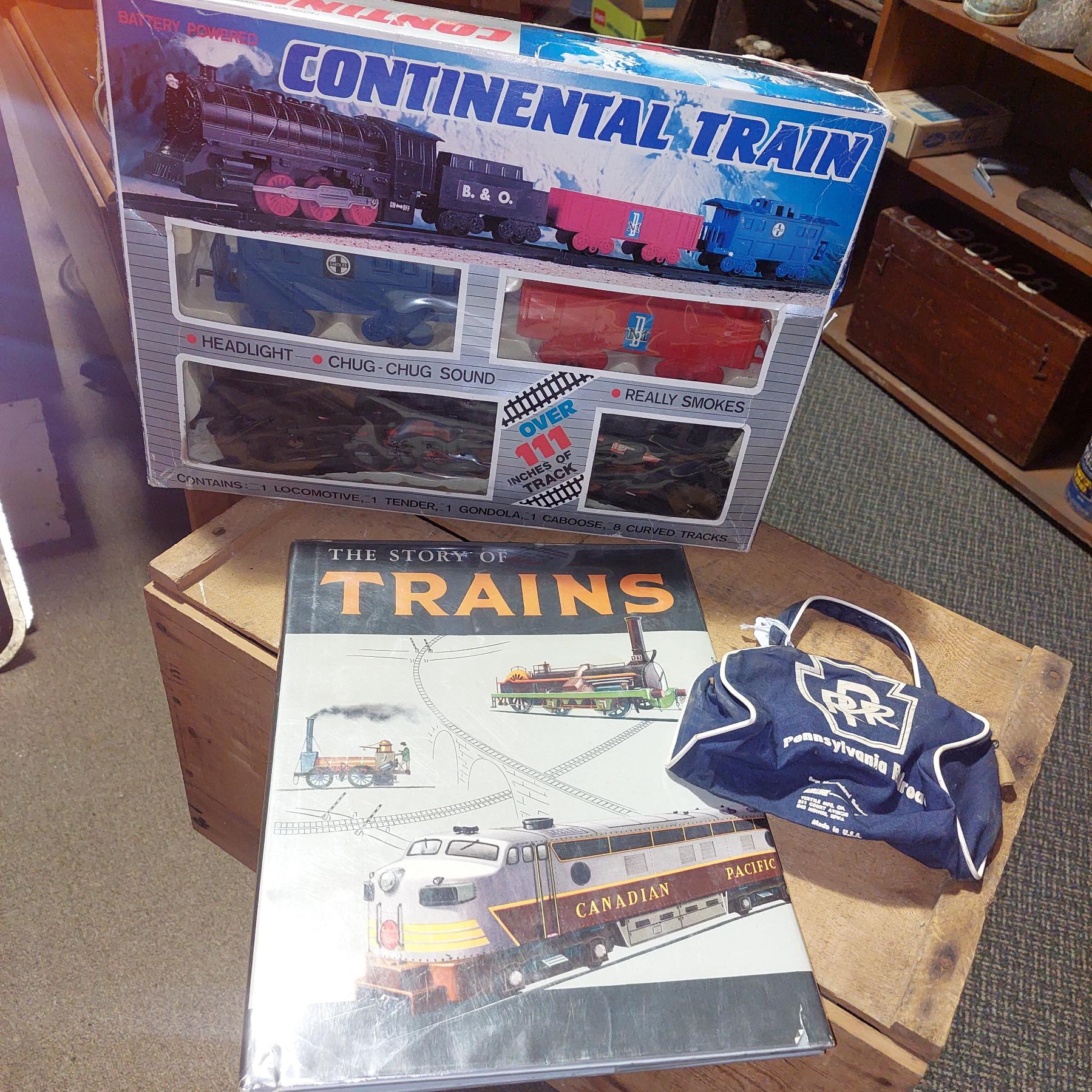3 Pcs As Shown - Continental NOS Train Set & Book & penn R/R Small Tote Bag - Given Out To Riders