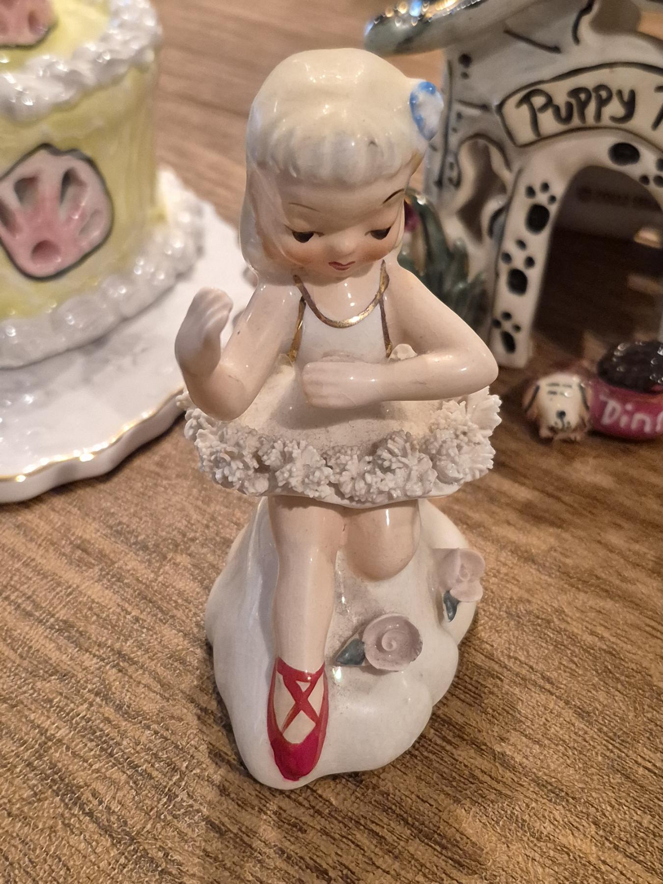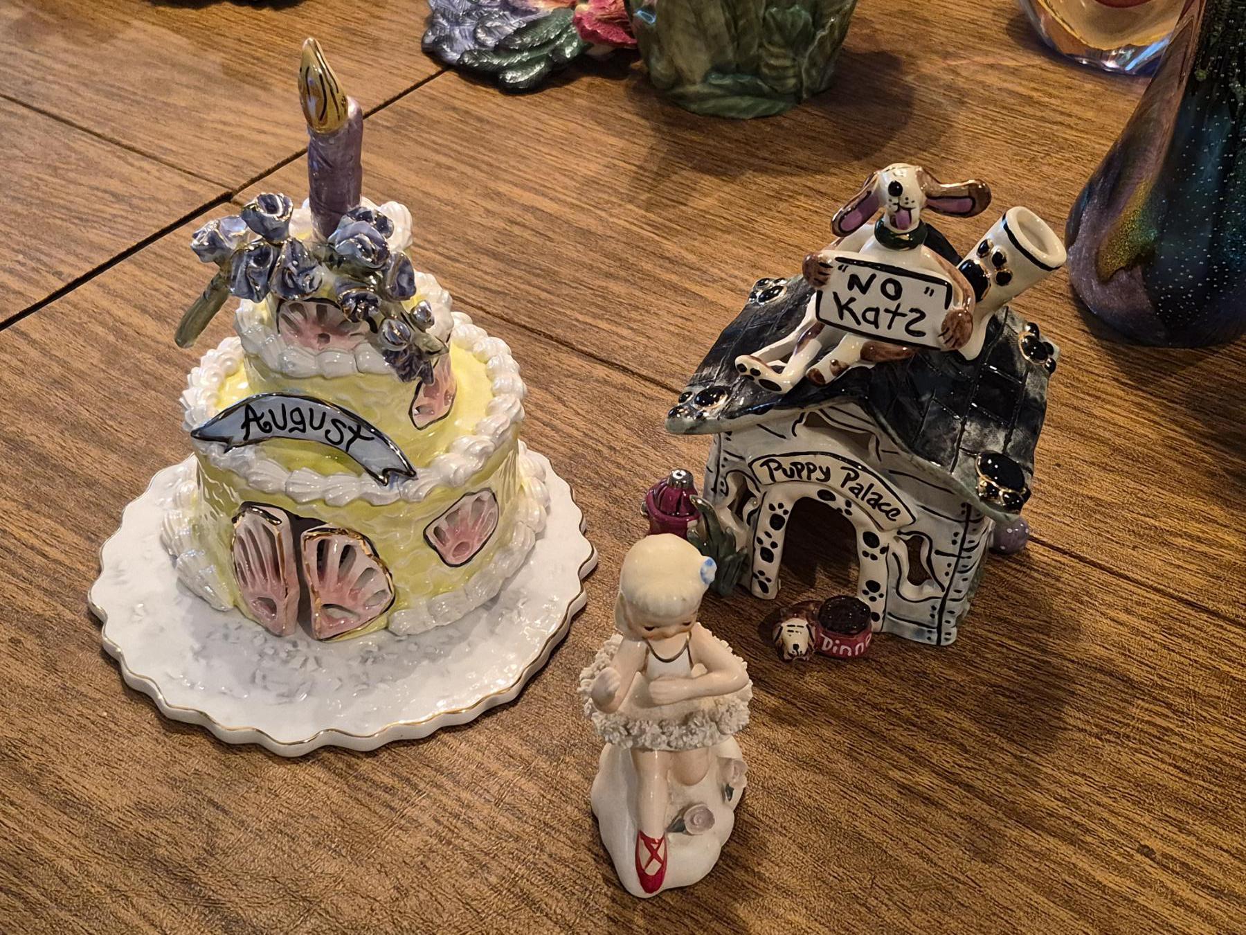 3 Pcs Porcelain Figural Houses & Figurine As Shown - Nice condition