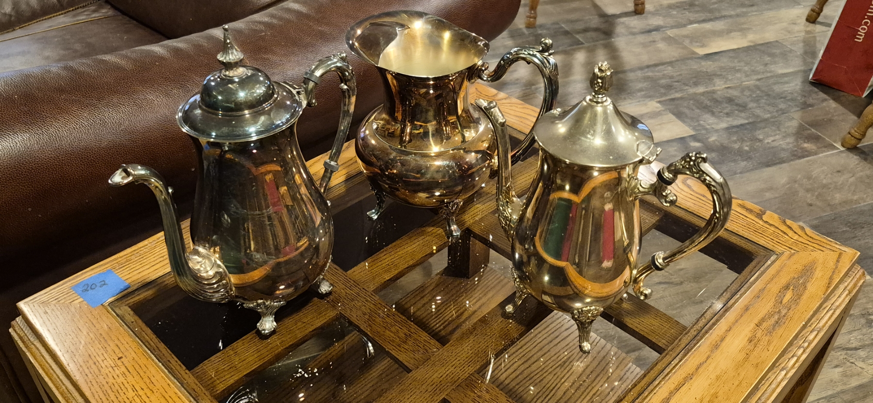3 Piece Silver Plate Coffee / Tea Set With Water Pitcher - Clean