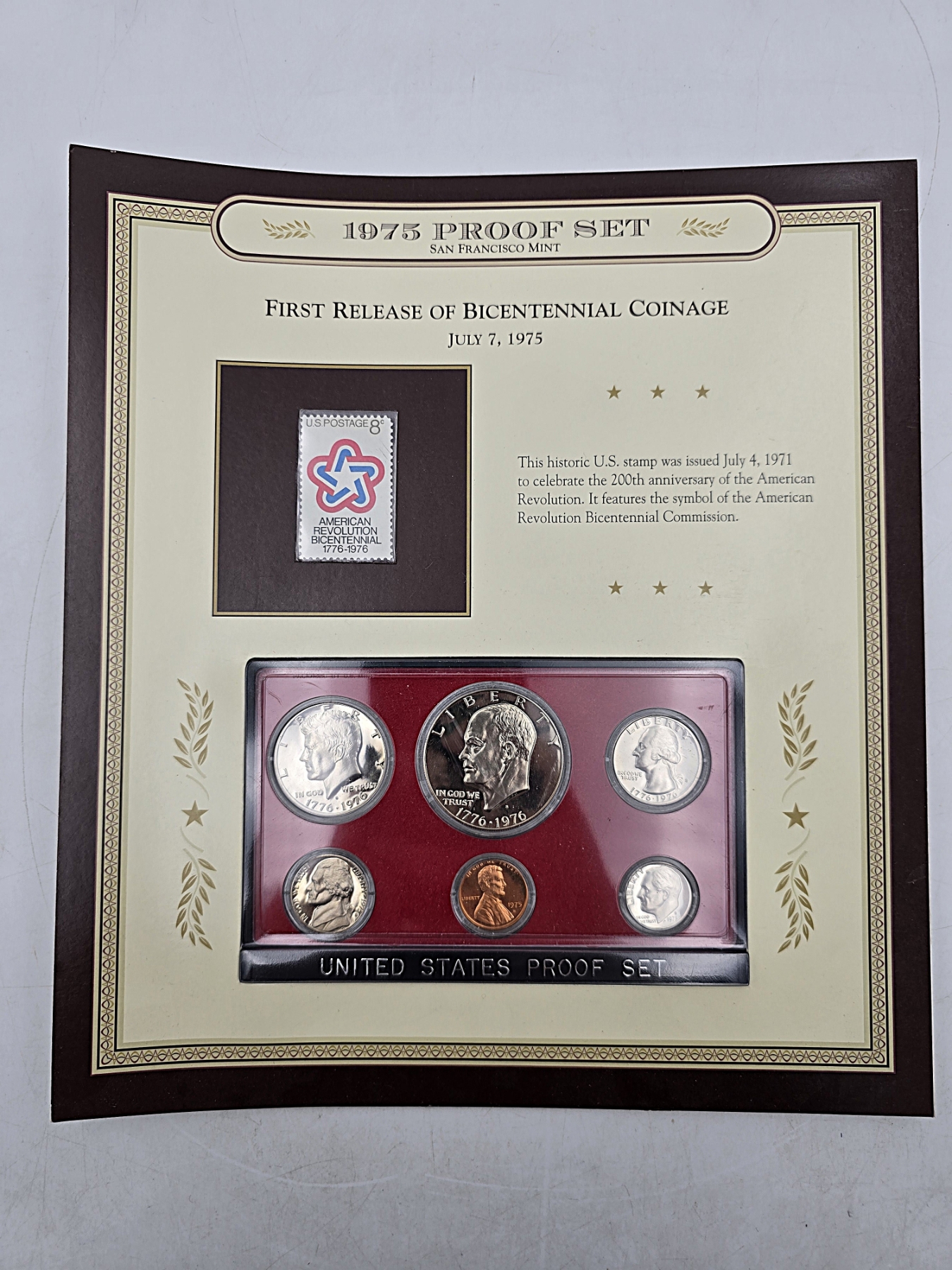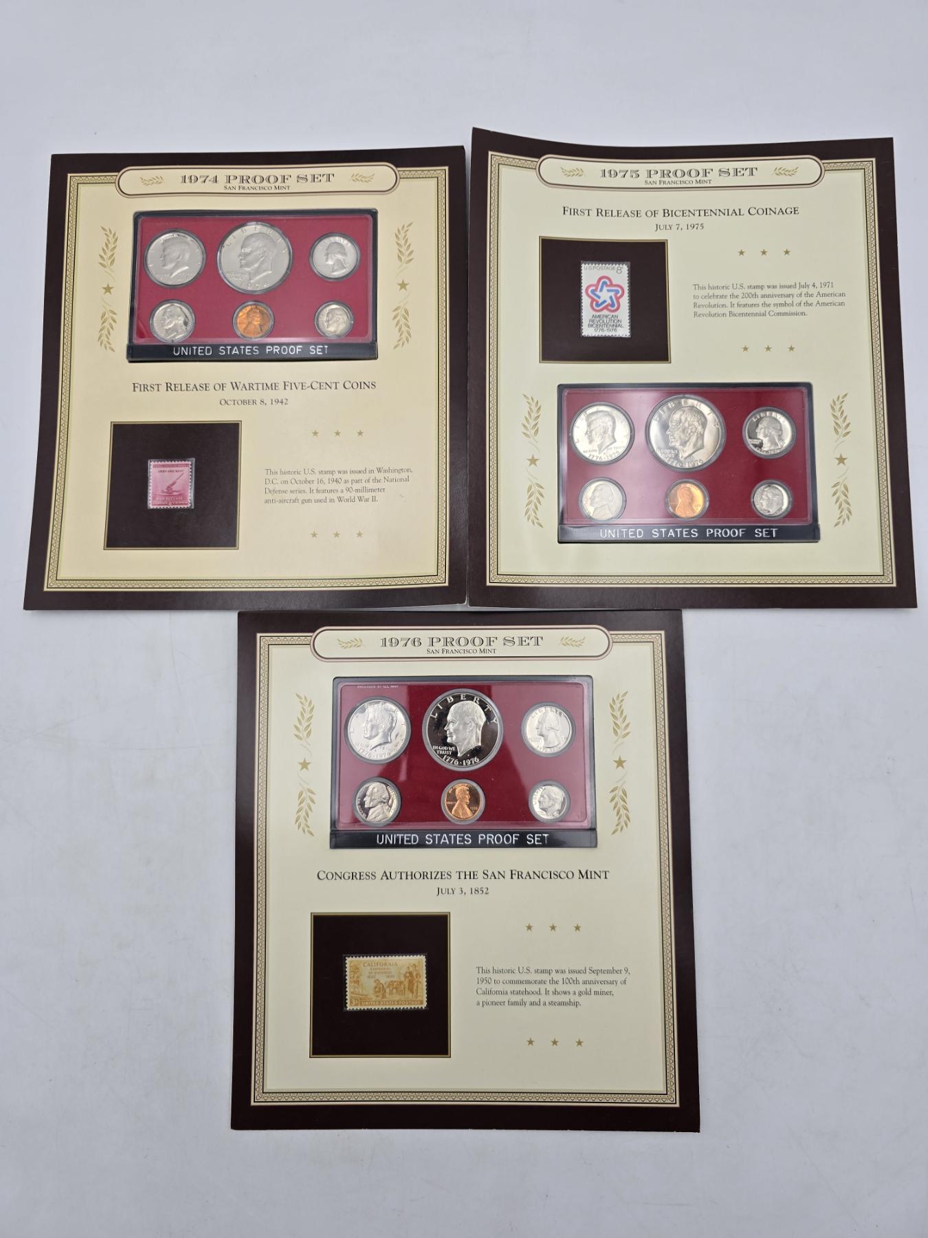 (3) Proof Sets with Stamps - 1974, 1975, 1976