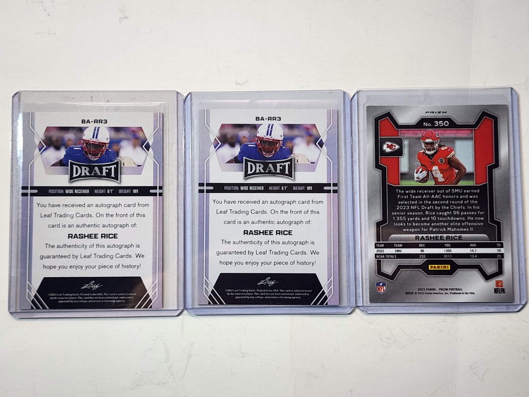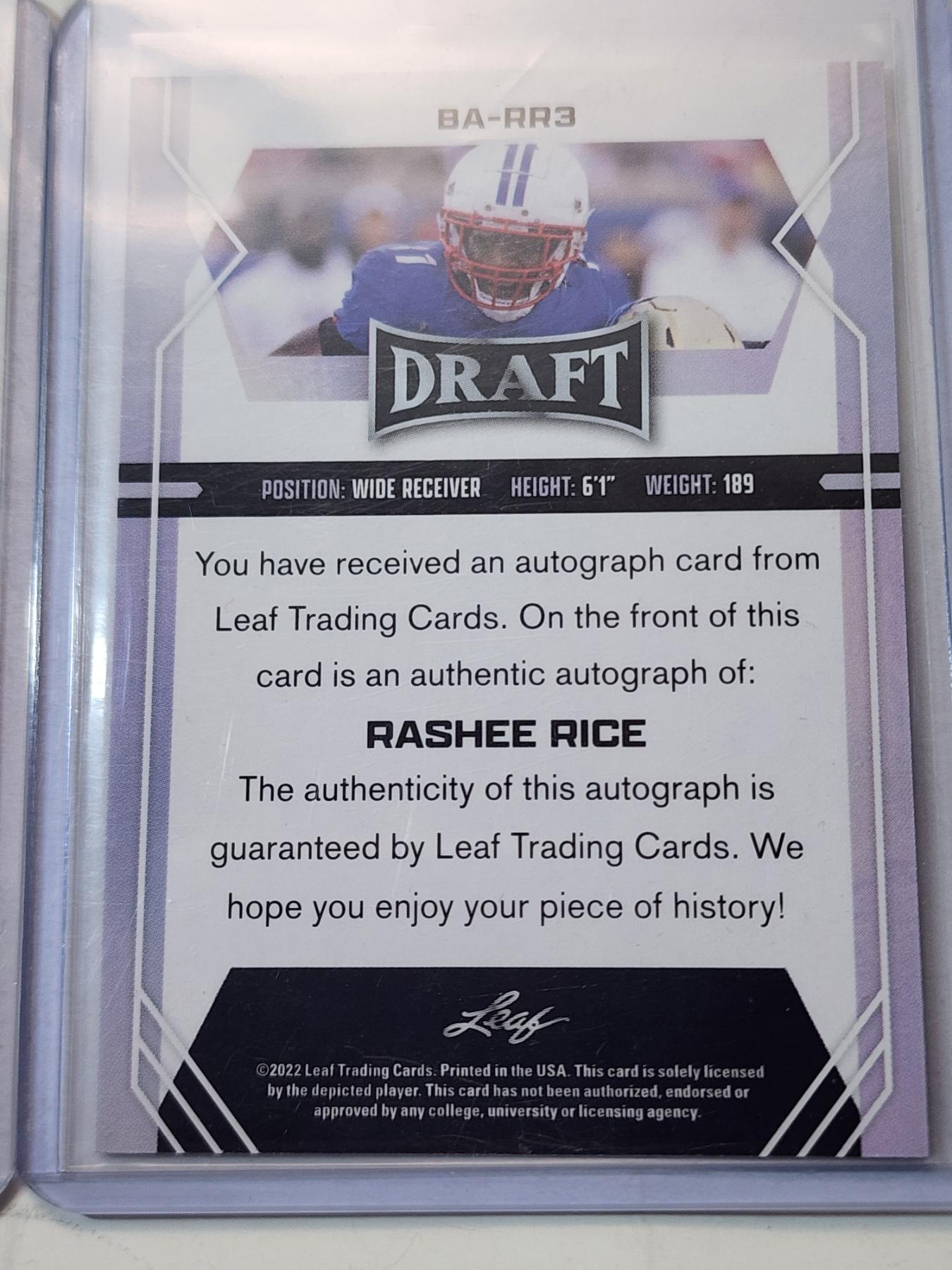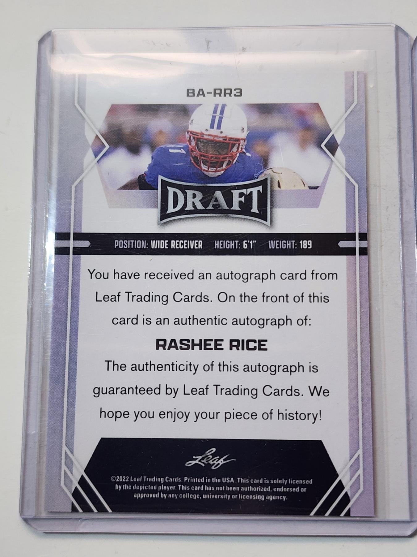 3 Rashee Rice Trading Cards Including 2022 Leaf Autographed & 2023 Panini Prizm