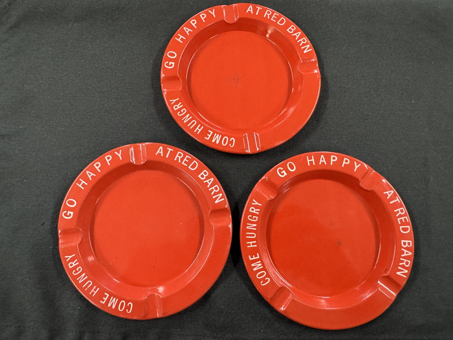 3 - Red Barn Restaurant Metal Ash Trays - 4 1/2" Wide - Out Of Business In The 80's
