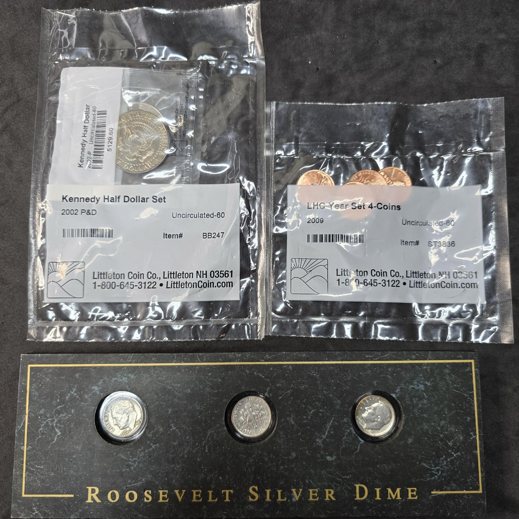 (3) Roosevelt Silver Dimes (90%) & Littleton (2) 2002 Kennedy Halves & (4) 2009 Lincoln Year Pennies