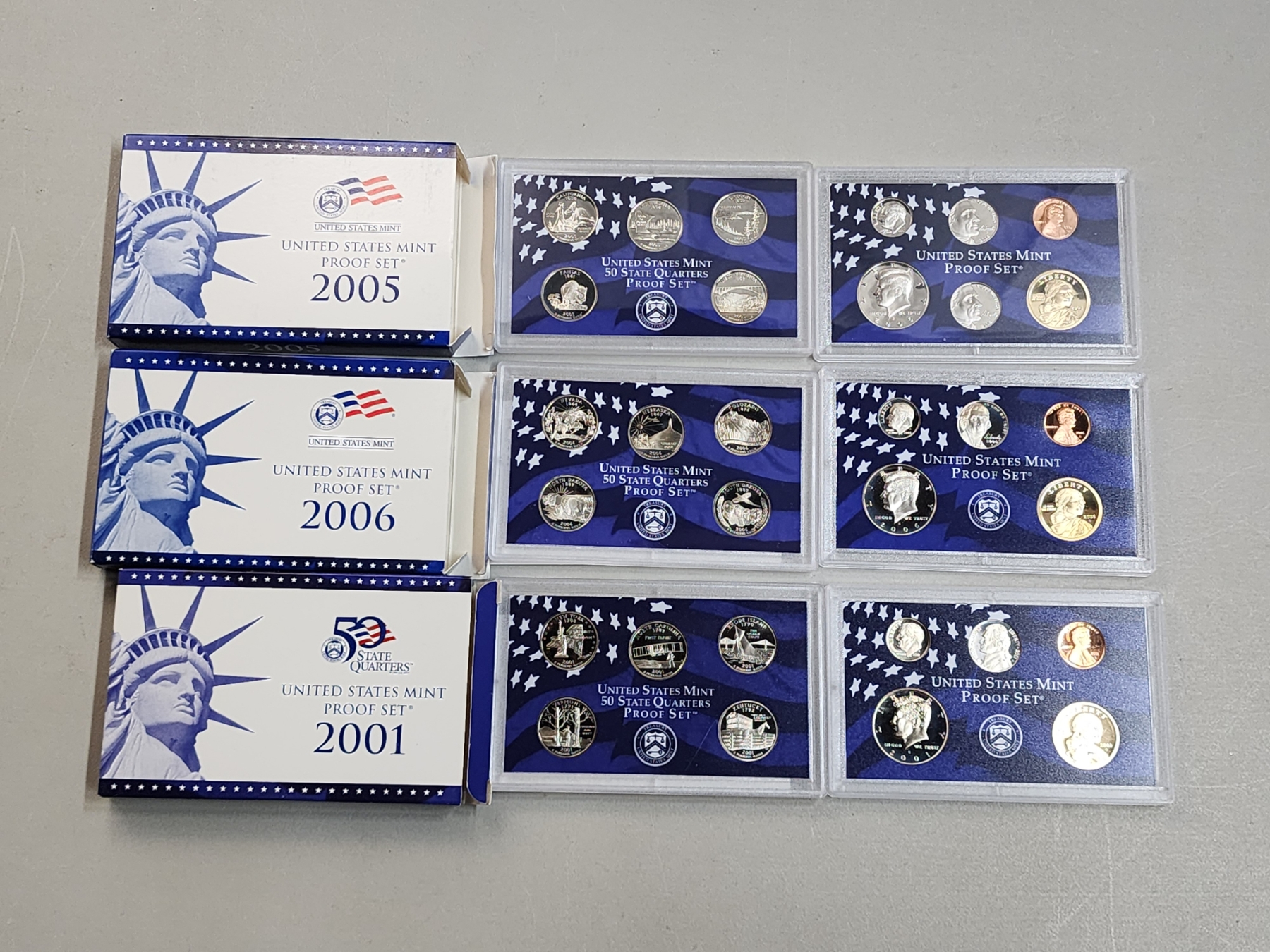 (3) United States Mint Proof Sets: 2005, 2006, 2001