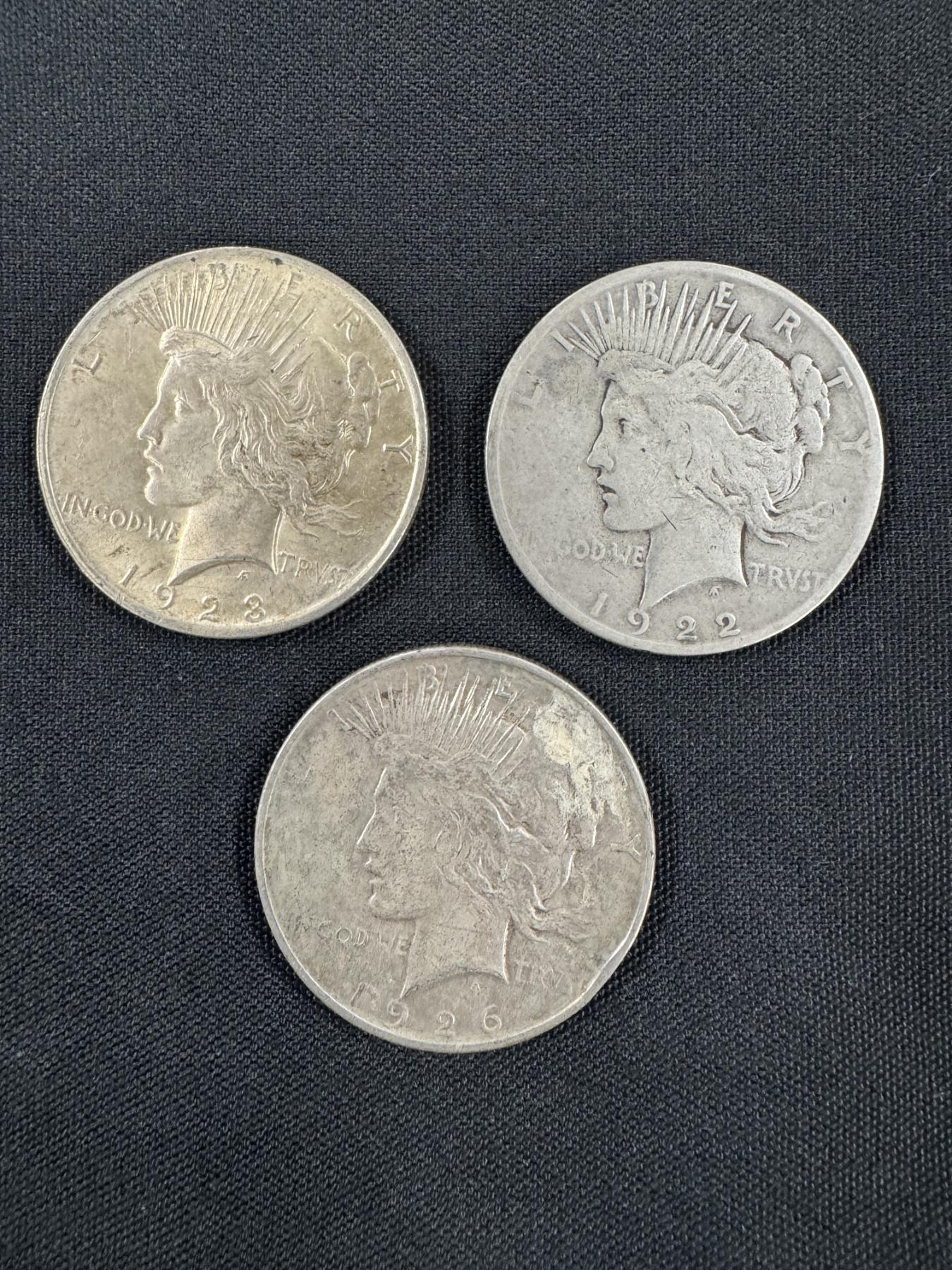 3 United States Silver Dollars - 1922-S, 1923 & 1926-D - Authentic US Silver Dollars