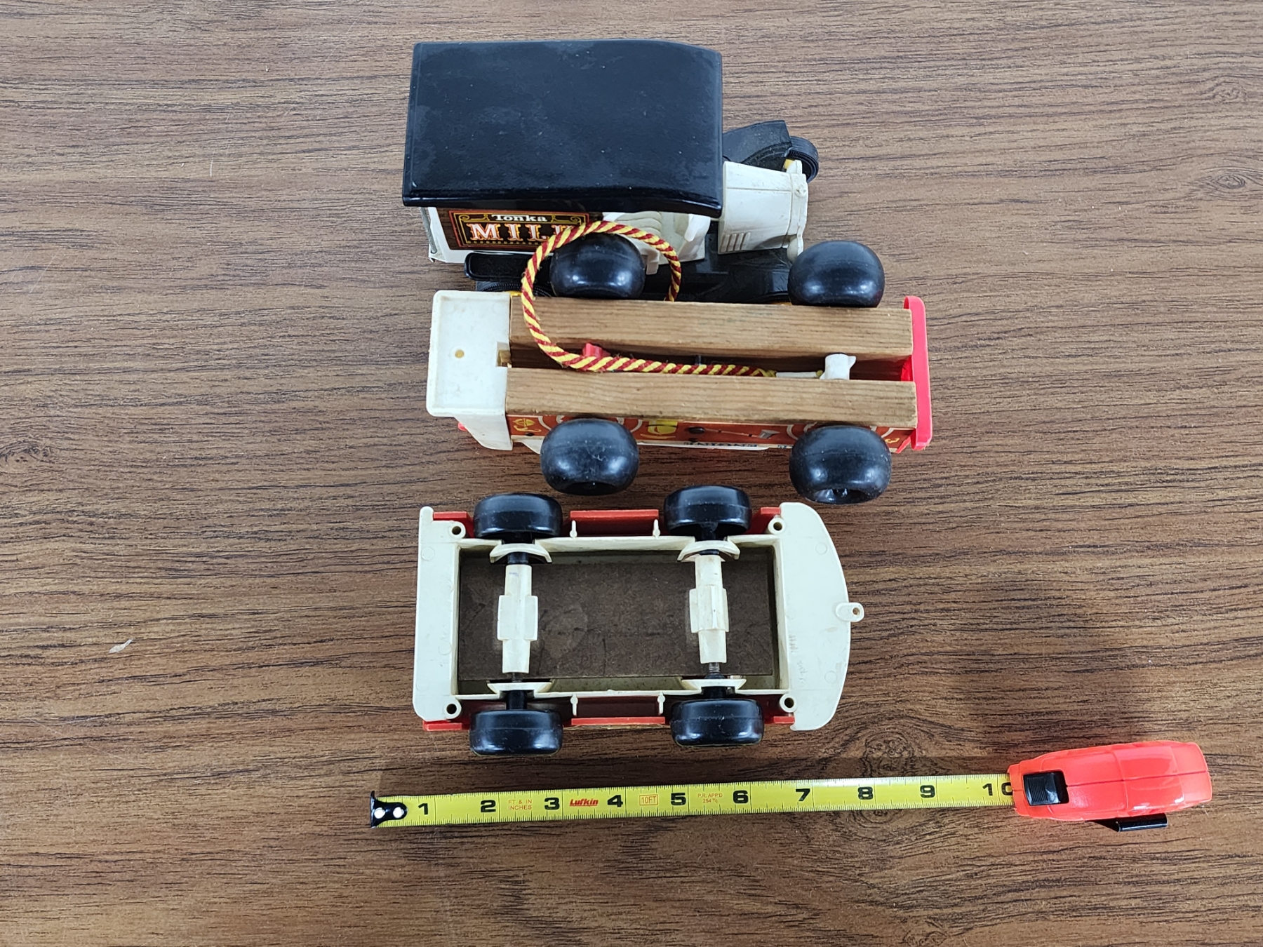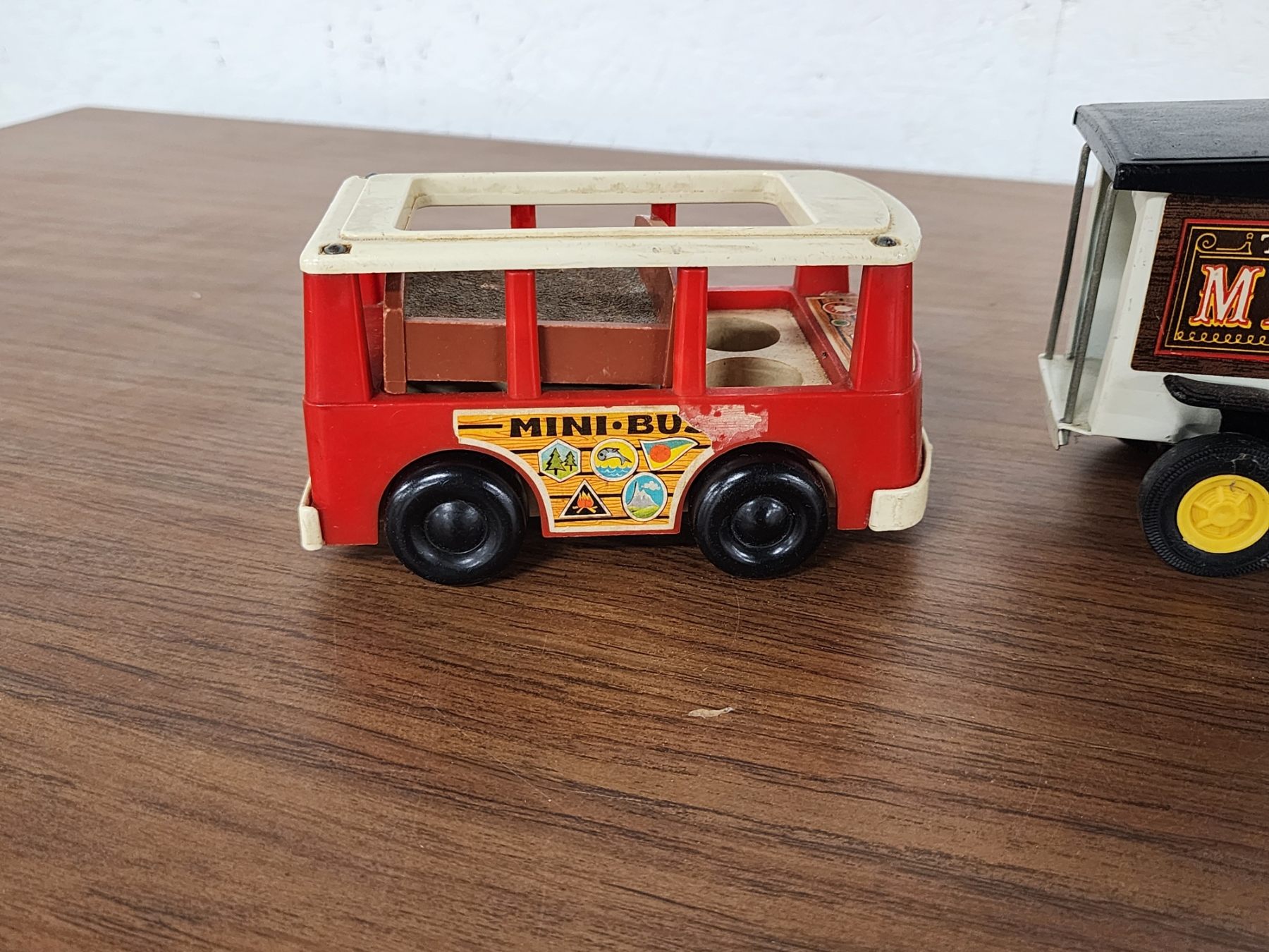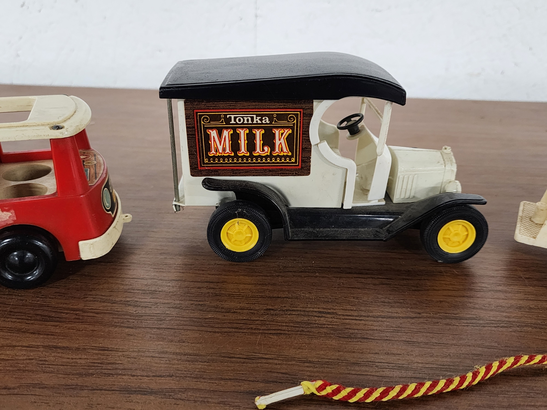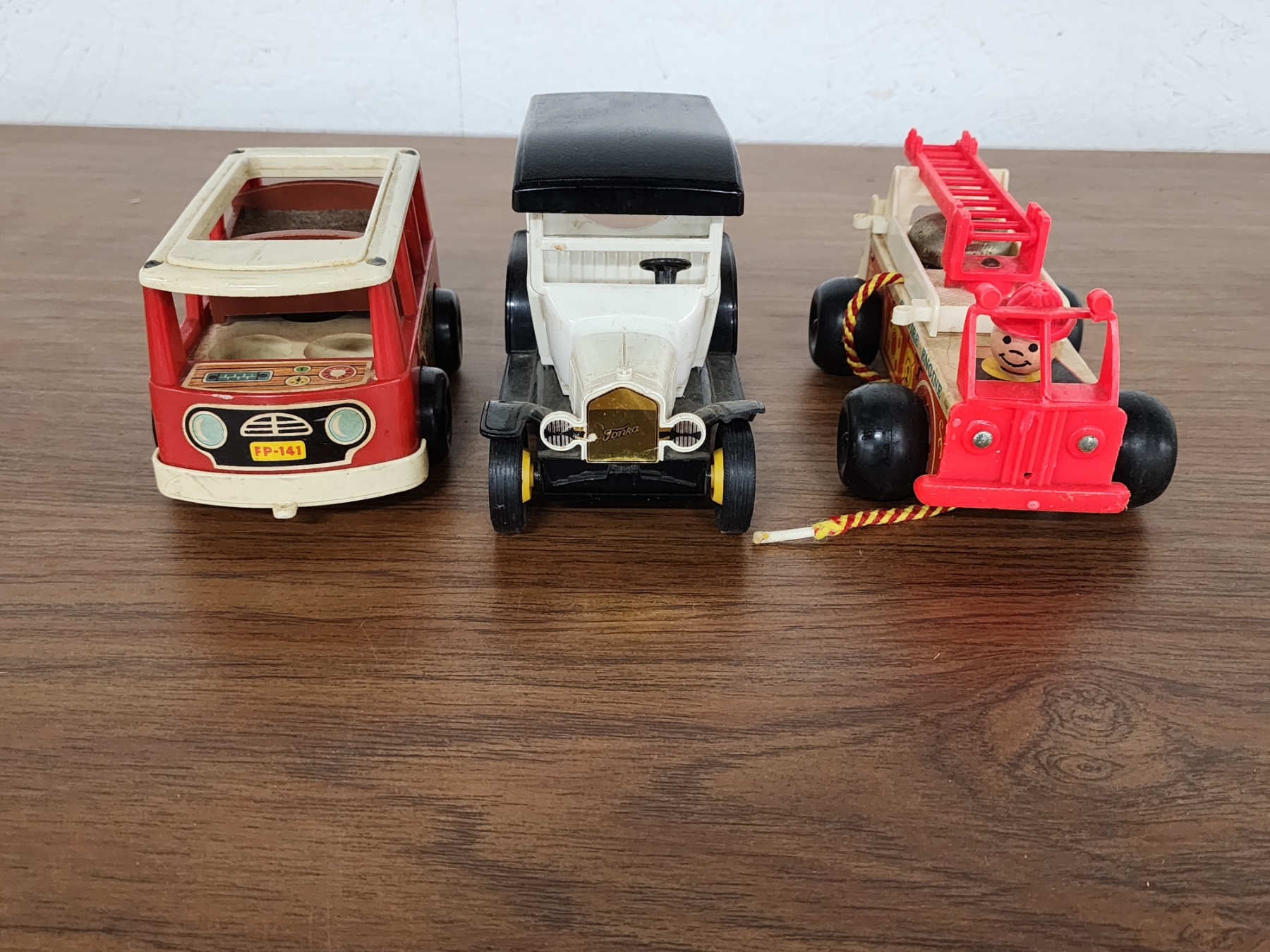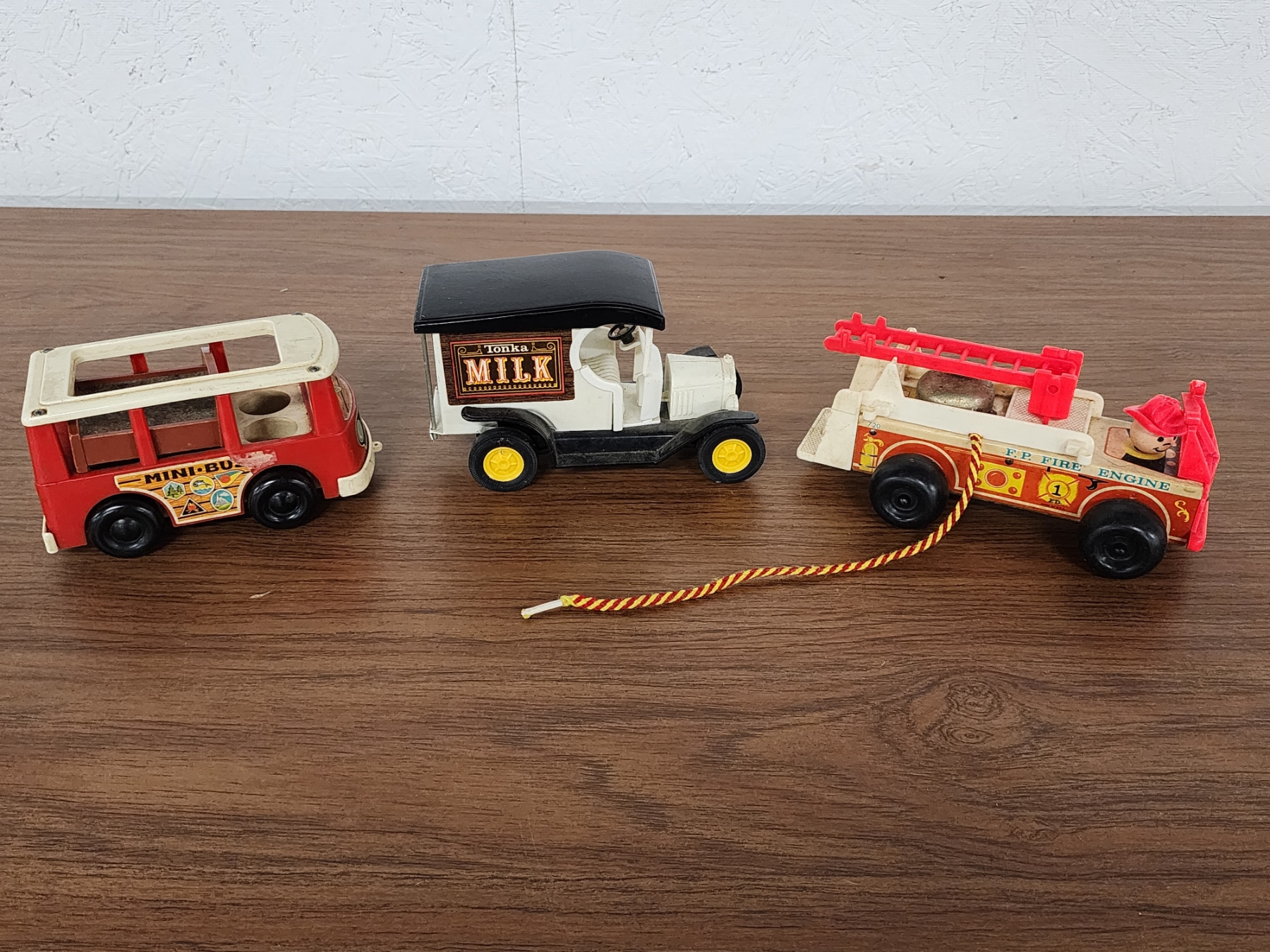 (3) Vintage Toy Vehicles Including Tonka Milk Truck, Fisher Price Fire Truck & Mini Bus