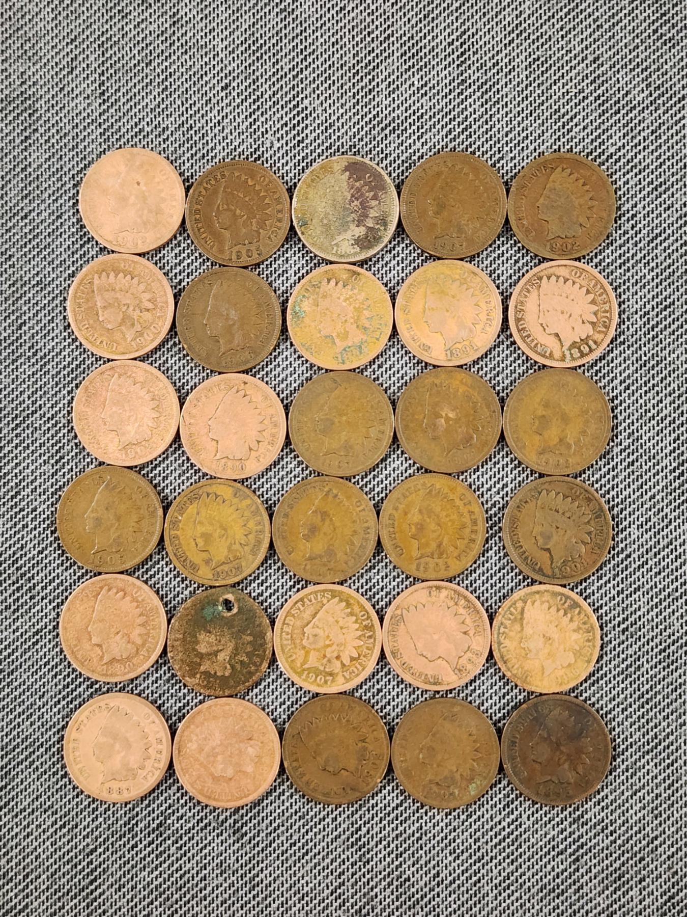 30 Assorted Date & Condition Indian Head Pennies - Face Value $0.30