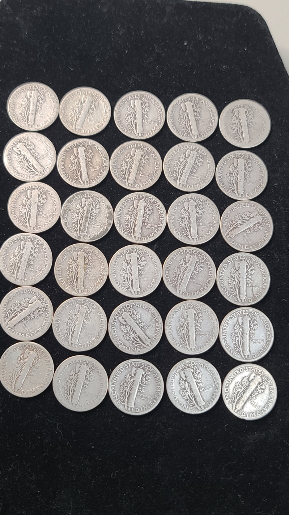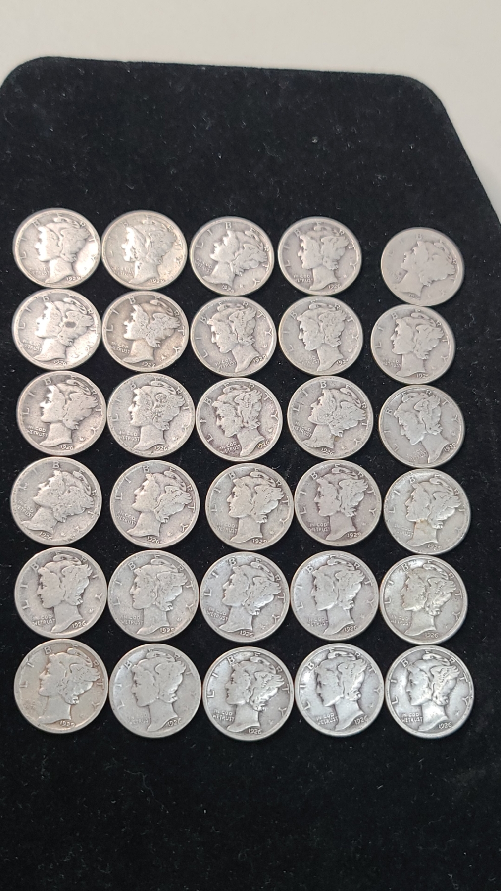 (30) Assorted Years 90% Silver Mercury Dimes Face Value: $3