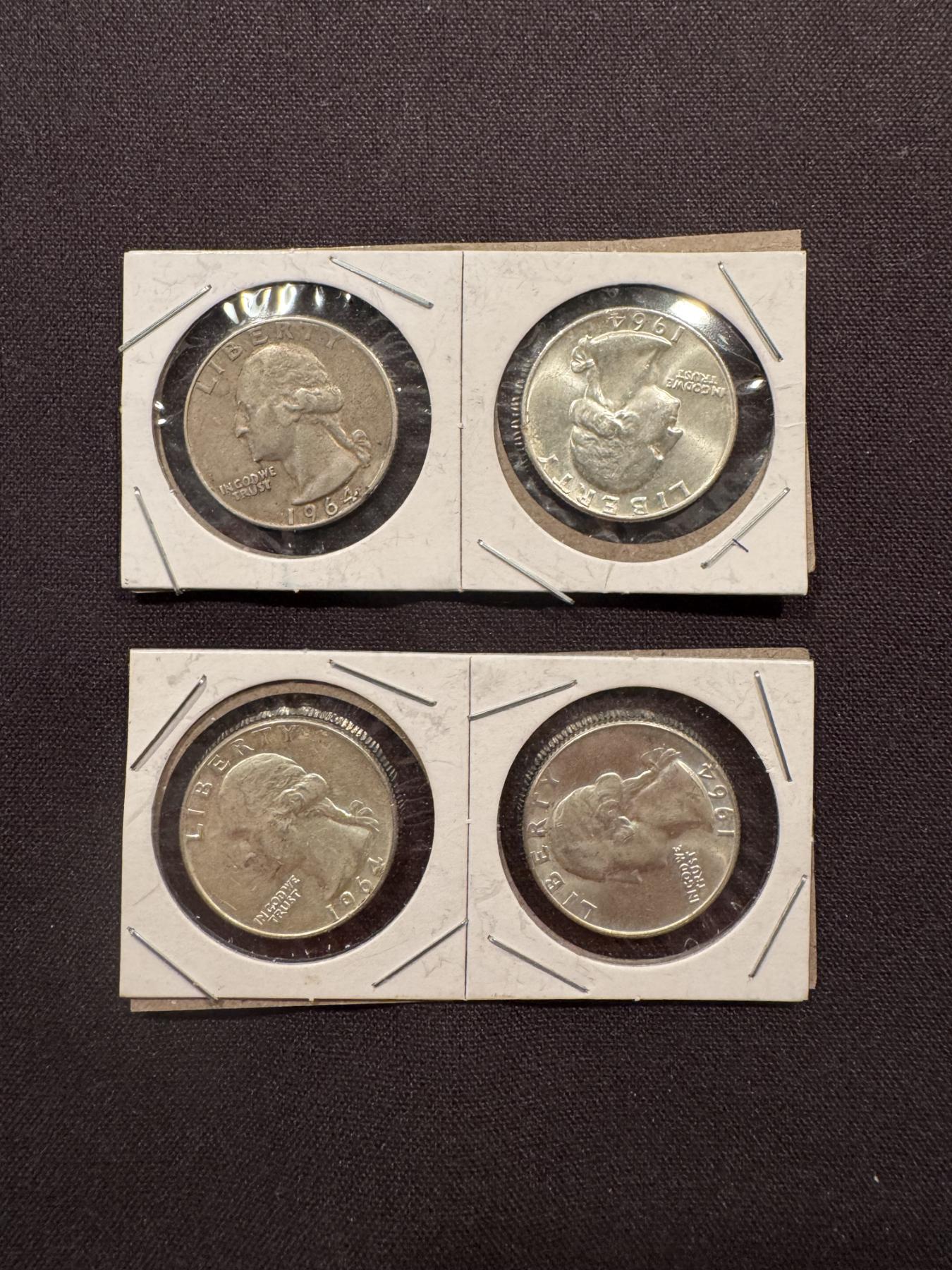 4 - 1964 United States Washington Silver Quarters - Mint Condition - $1.00