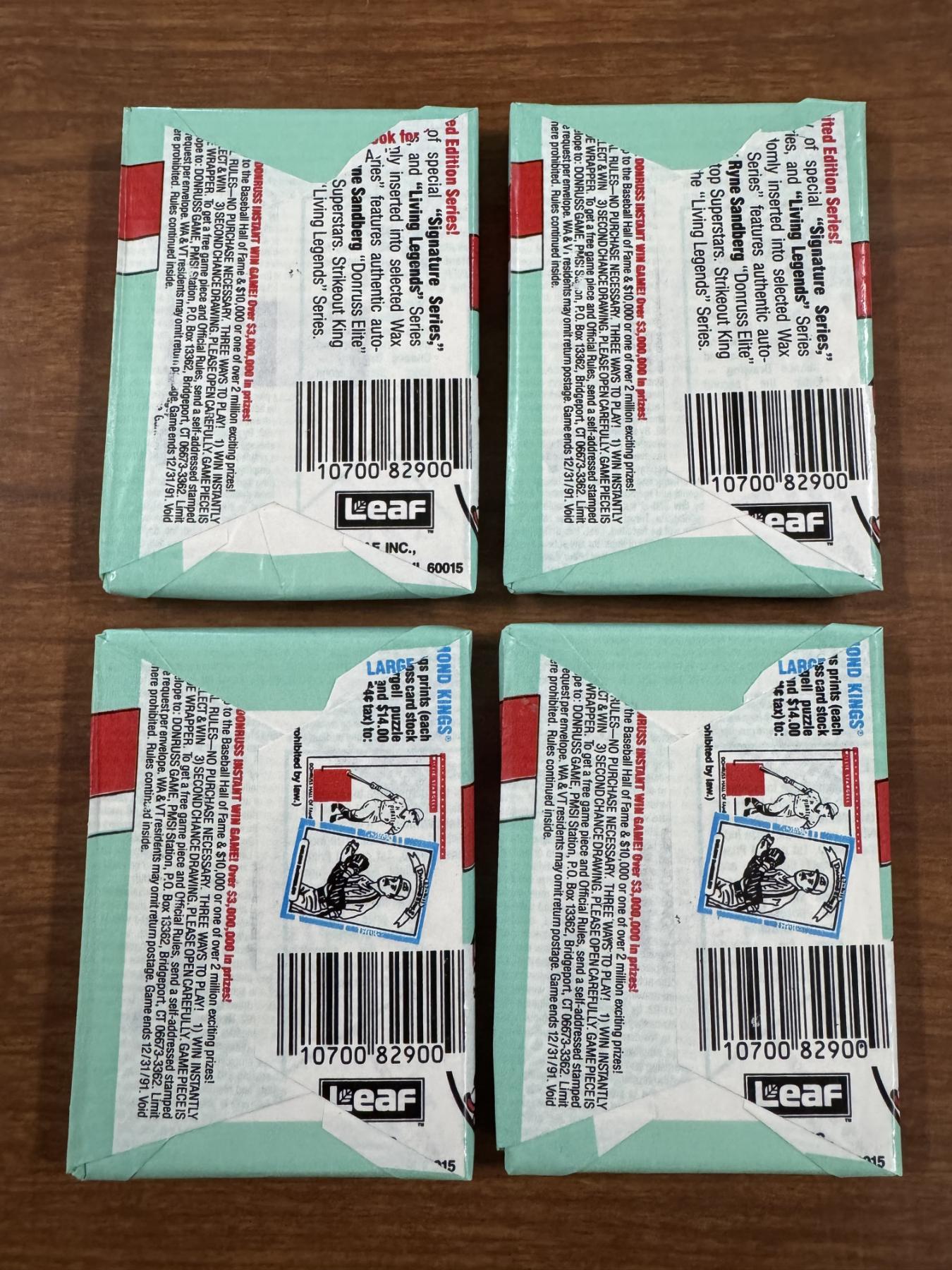 4 - 1991 Donruss Series 2 Unopened Wax Packs Baseball Cards- Mint Condition