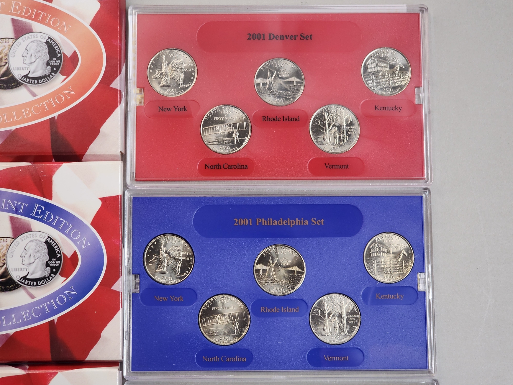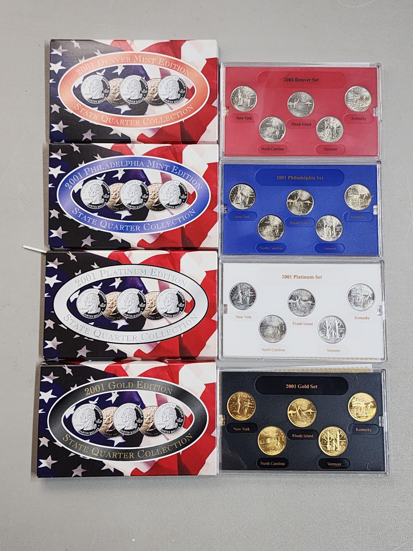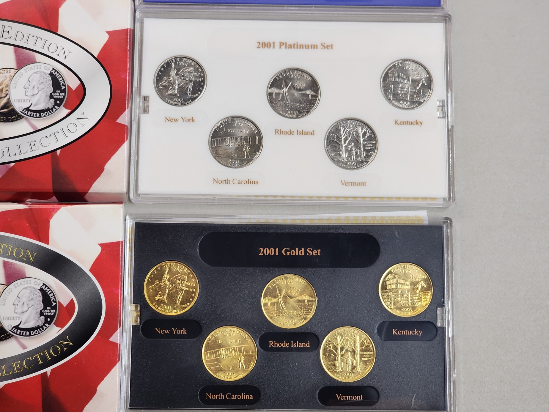 (4) 2001 State Quarter Collection Sets: Gold Edition/Platinum Edition/Philadelphia Mint/Denver Mint